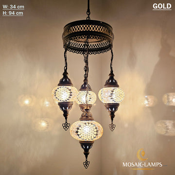 Add a touch of glamour to your home with our selection of single, double, triple, and quad chandeliers. These elegant light fixtures come in various styles and finishes, from traditional brass and crystal to modern stainless steel and glass. Choose a single chandelier for a smaller space or a double, triple, or quad chandelier to make a statement in a larger room. Whether you are looking for Ottoman-style precise glass chandeliers, Turkish mosaic styles, or Moroccan, Byzantine, and Syrian metal chandeliers, we have chandeliers in every style. We manufacture unique lamps with CE, TÜV International Electrical Certificate quality.