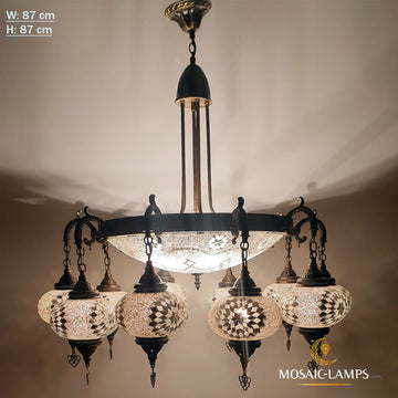 Our numerous globe chandeliers are a unique type of lighting fixture. The number of orbs can vary from 10 to 15 spheres, depending on your preference. While 10-11 globe chandeliers offer a more tidy and simple look, our 15 globe chandeliers provide a much more glamorous and dramatic look. We make each chandelier from various materials such as crystal, metal, mosaic, and more. To add light and visual interest to your space, you can use our handmade chandeliers in multiple settings, including dining rooms, living rooms, and entryways. Also, We manufacture unique lamps with CE, TΓV International Electrical Certificate quality.