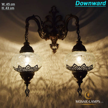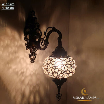 Elevate your home decor with our stunning wall sconce collections inspired by the rich cultural heritage of Turkish, Ottoman, Moroccan, Byzantine, and Syrian art. Admire intricate designs featuring Ottoman-style embroidered glass, Turkish mosaic patterns, and traditional metalwork, each crafted to the highest quality standards and certified by CE and TÜV International Electrical standards. Discover a wide range of styles and sizes to find the perfect wall sconce collections to beautify the mood of your home. Shop now and add a touch of elegance to your space with one of our unique lamps.