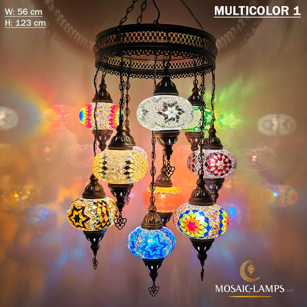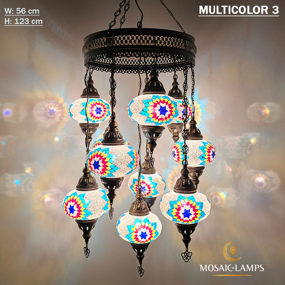 10 Globe gemischter türkischer Kronleuchter, handgefertigte marokkanische Hängeleuchten, Sultan-Sets, Wohnzimmer-Kronleuchter, Restaurant-Flur-Kronleuchter