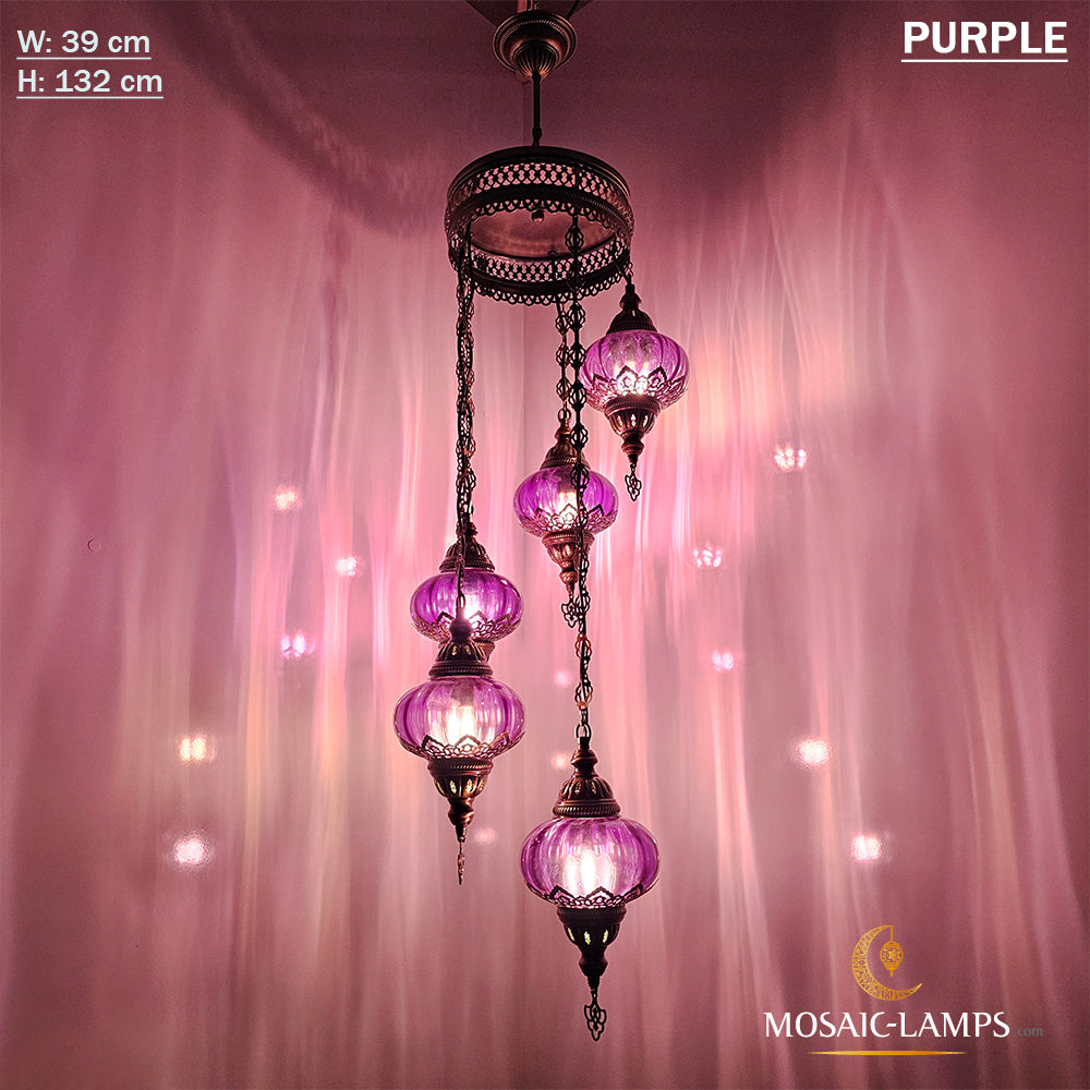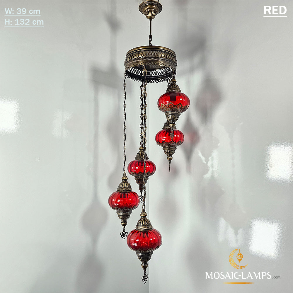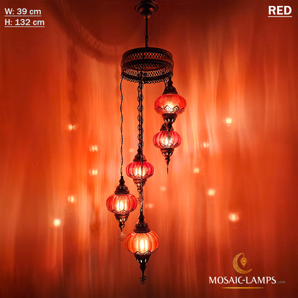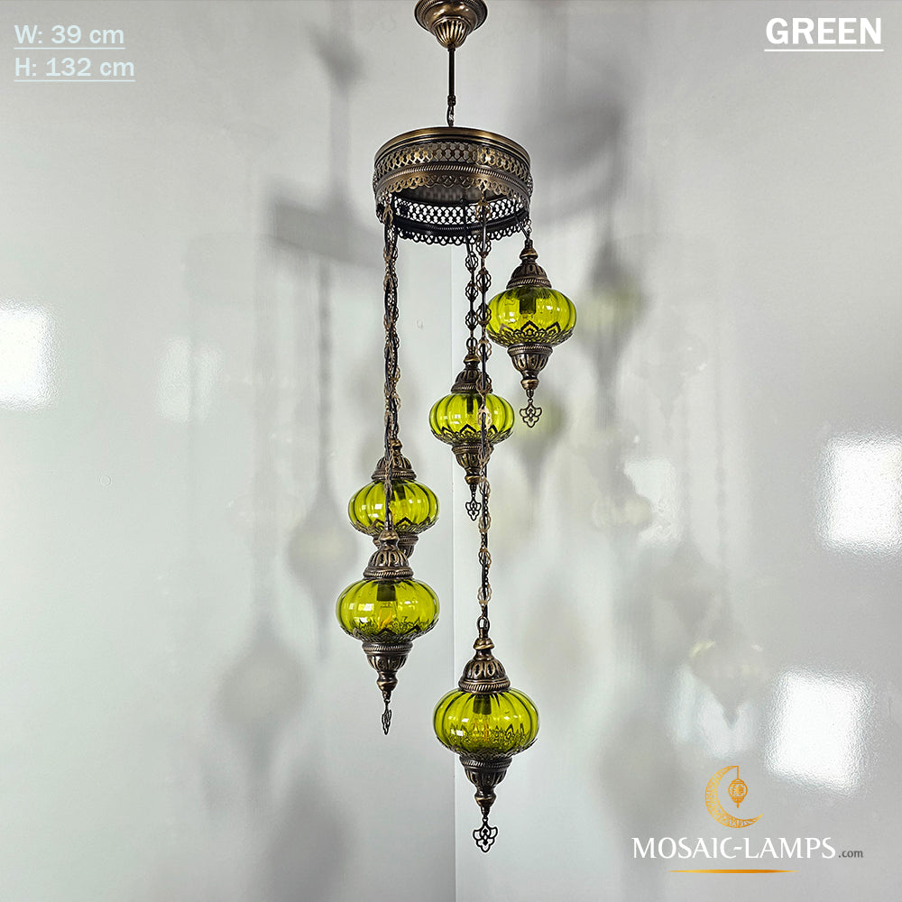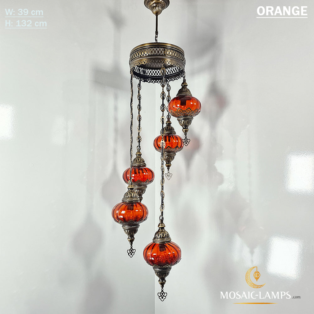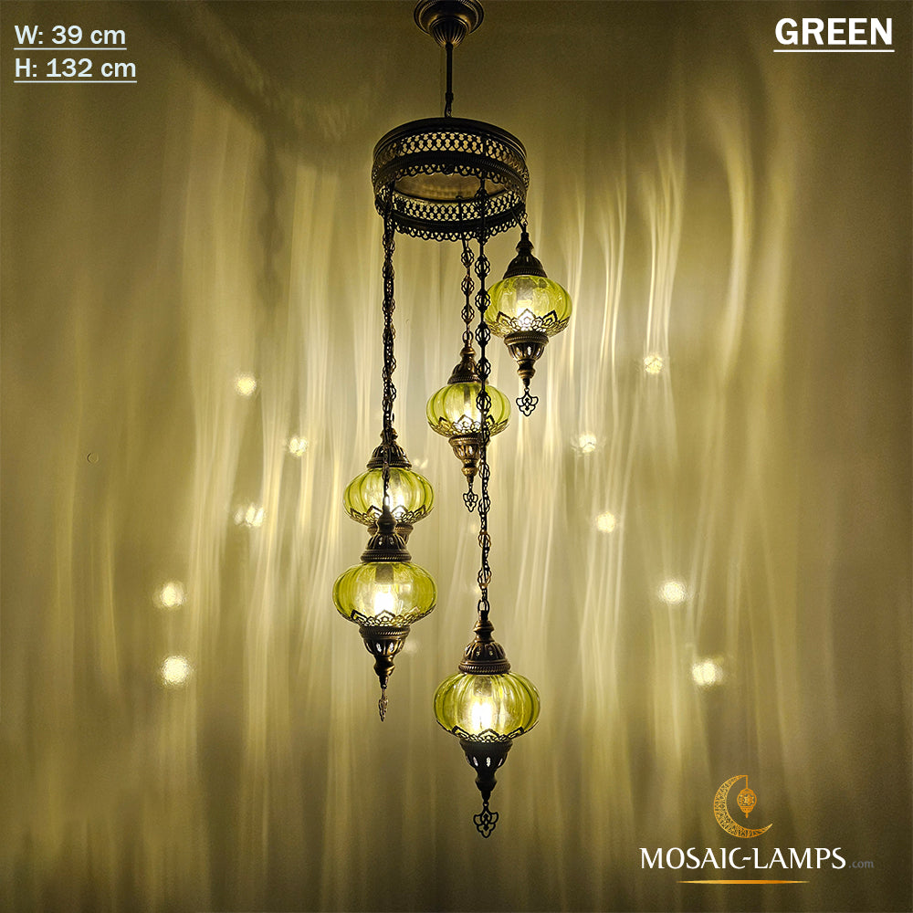 5 Globe Lights with Blown Glass Optic, Spiral Design Clear Ottoman Chandelier, Moroccan Spiral Chandelier, Stair Lights, Cafe, Restaurant.
