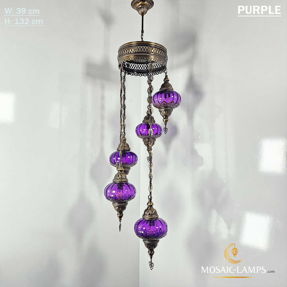5 Globe Lights with Blown Glass Optic, Spiral Design Clear Ottoman Chandelier, Moroccan Spiral Chandelier, Stair Lights, Cafe, Restaurant