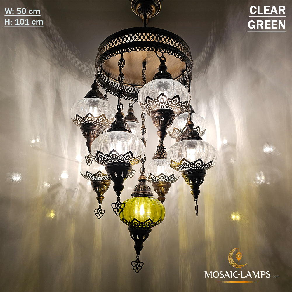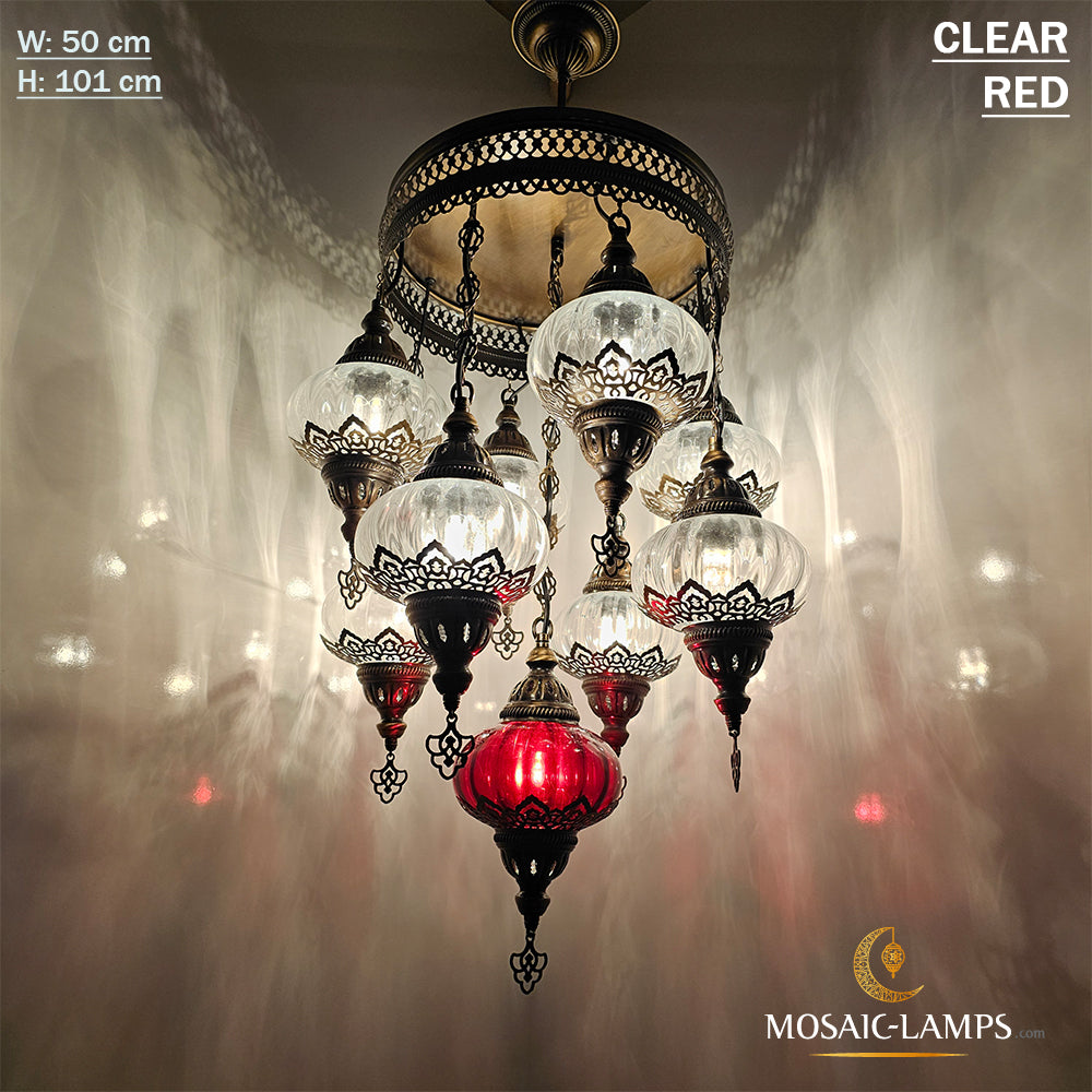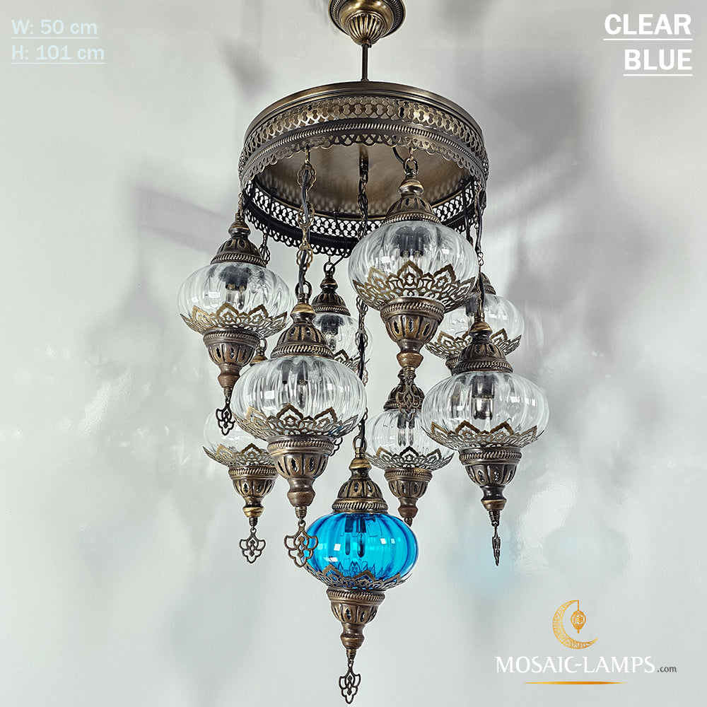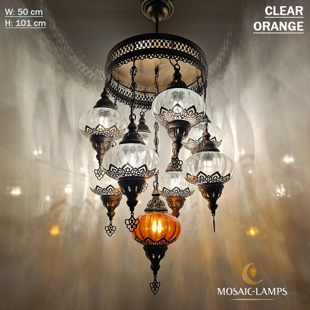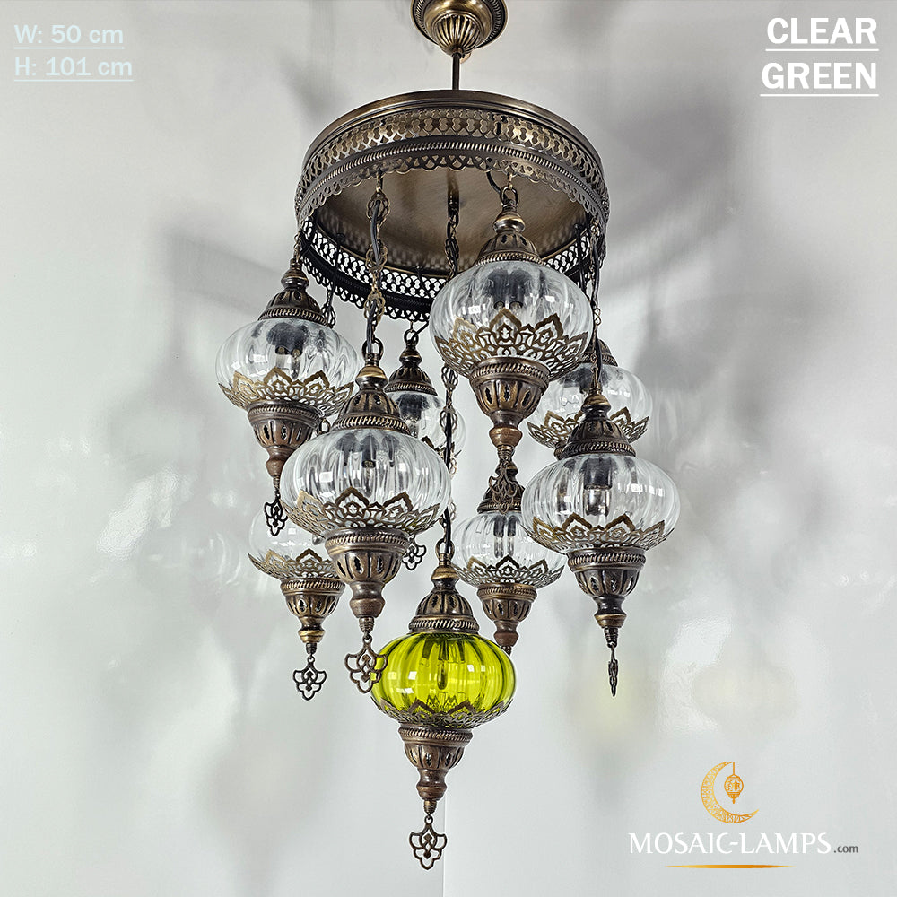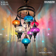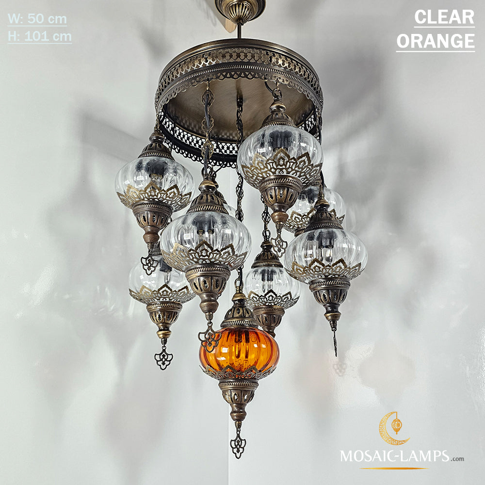 9 Mixed Optical Globe Ottoman Chandelier, Clear and Painted Living Room Lamp, Restaurant, Cafe, Bar, Office, Moroccan Lights, Blown Glass