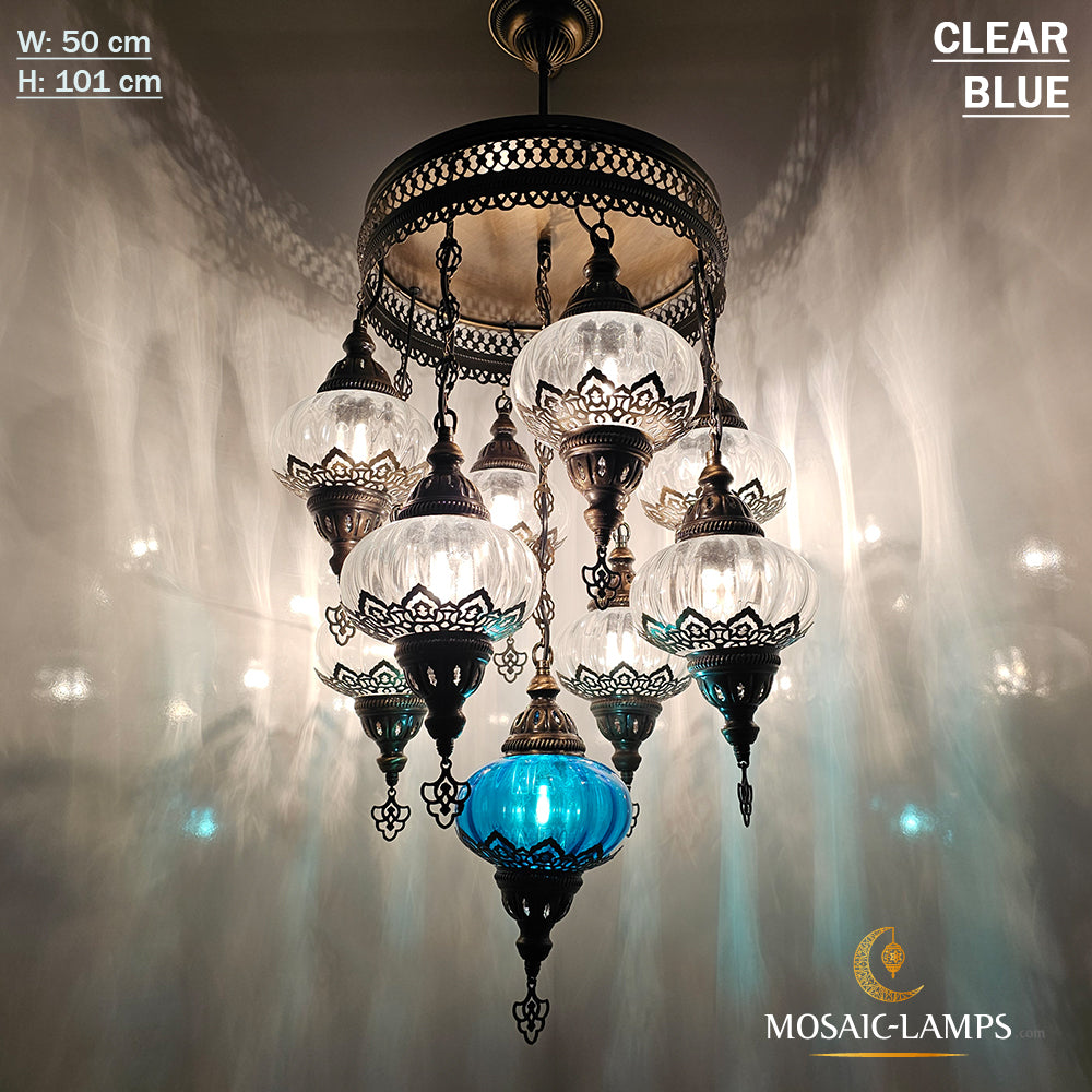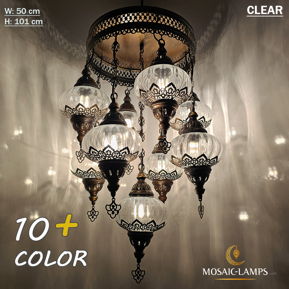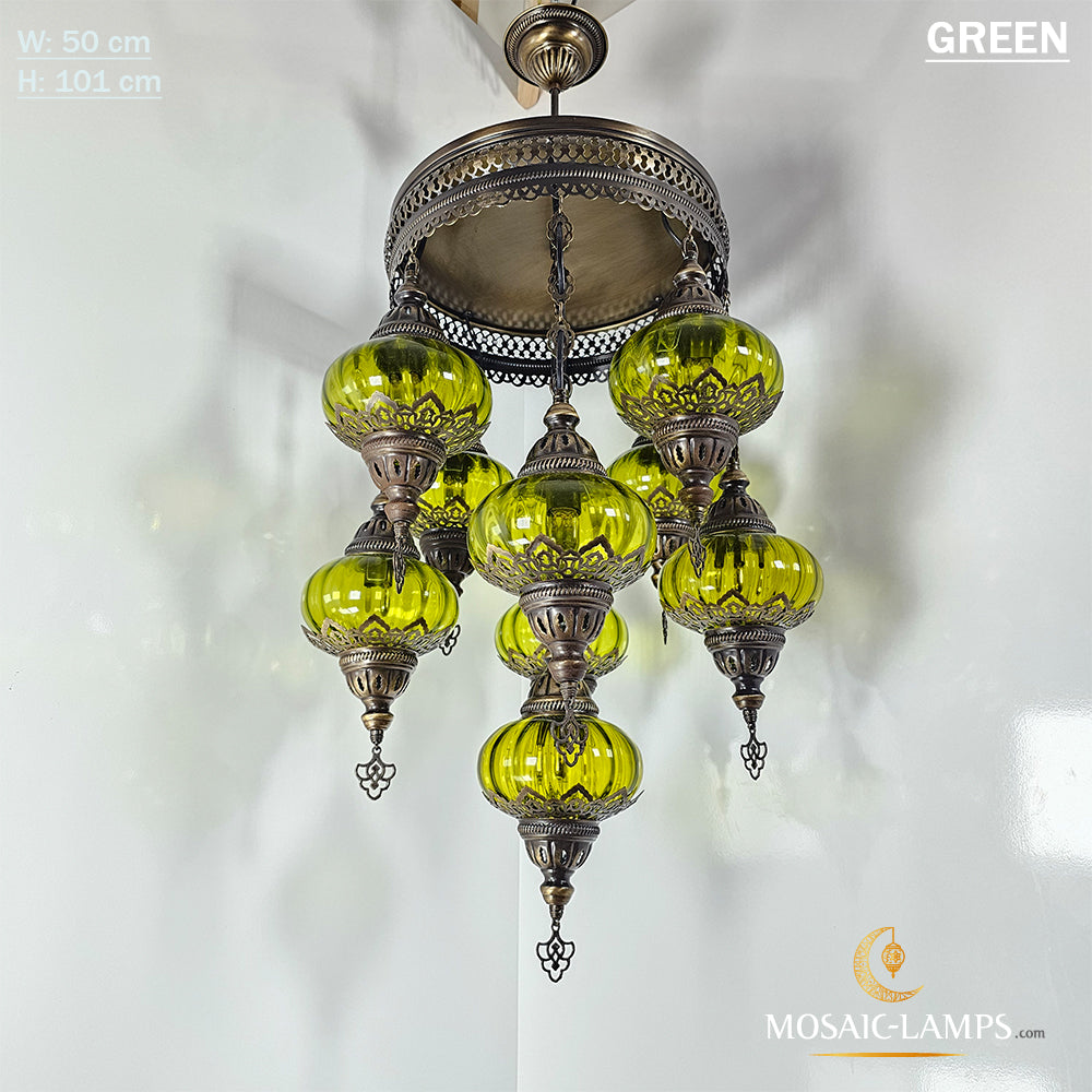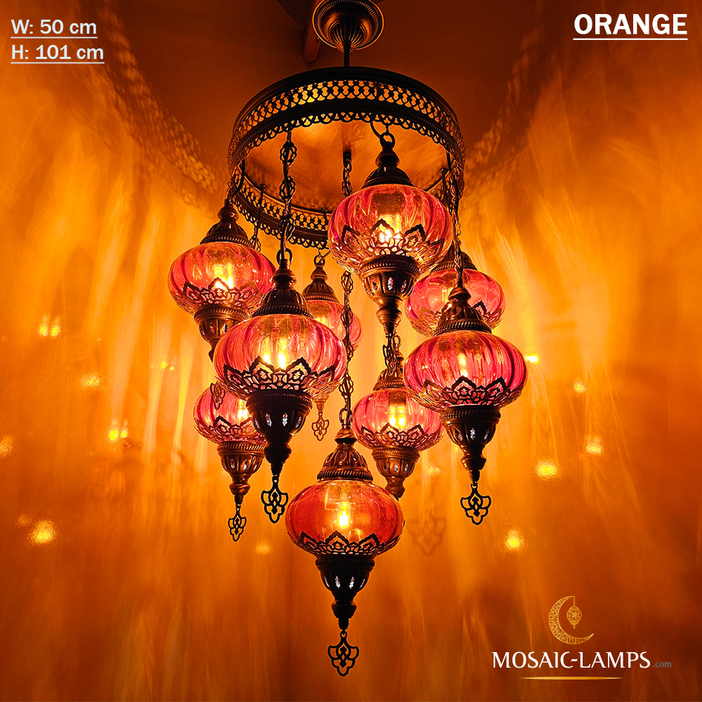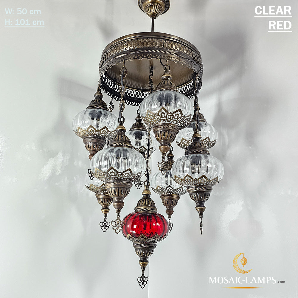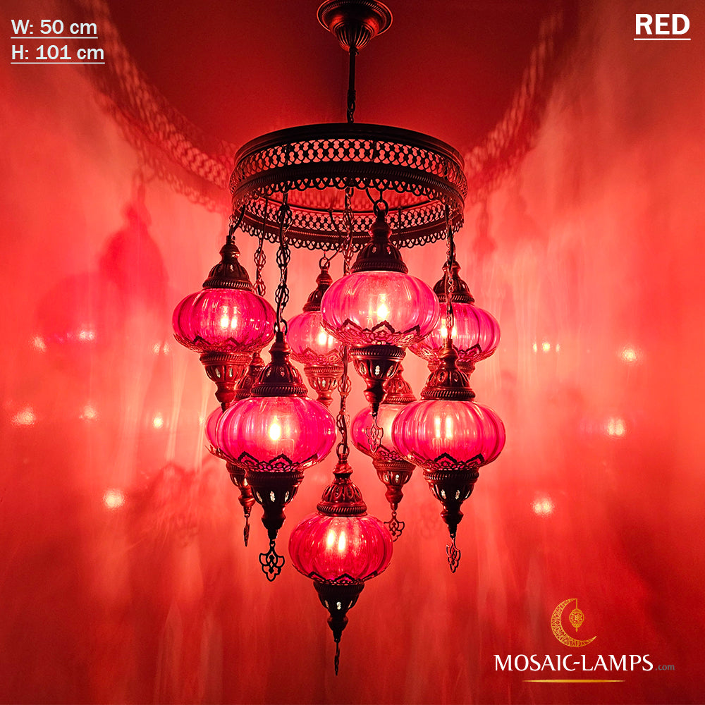 9 Mixed Optical Globe Ottoman Chandelier, Clear and Painted Living Room Lamp, Restaurant, Cafe, Bar, Office, Moroccan Lights, Blown Glass