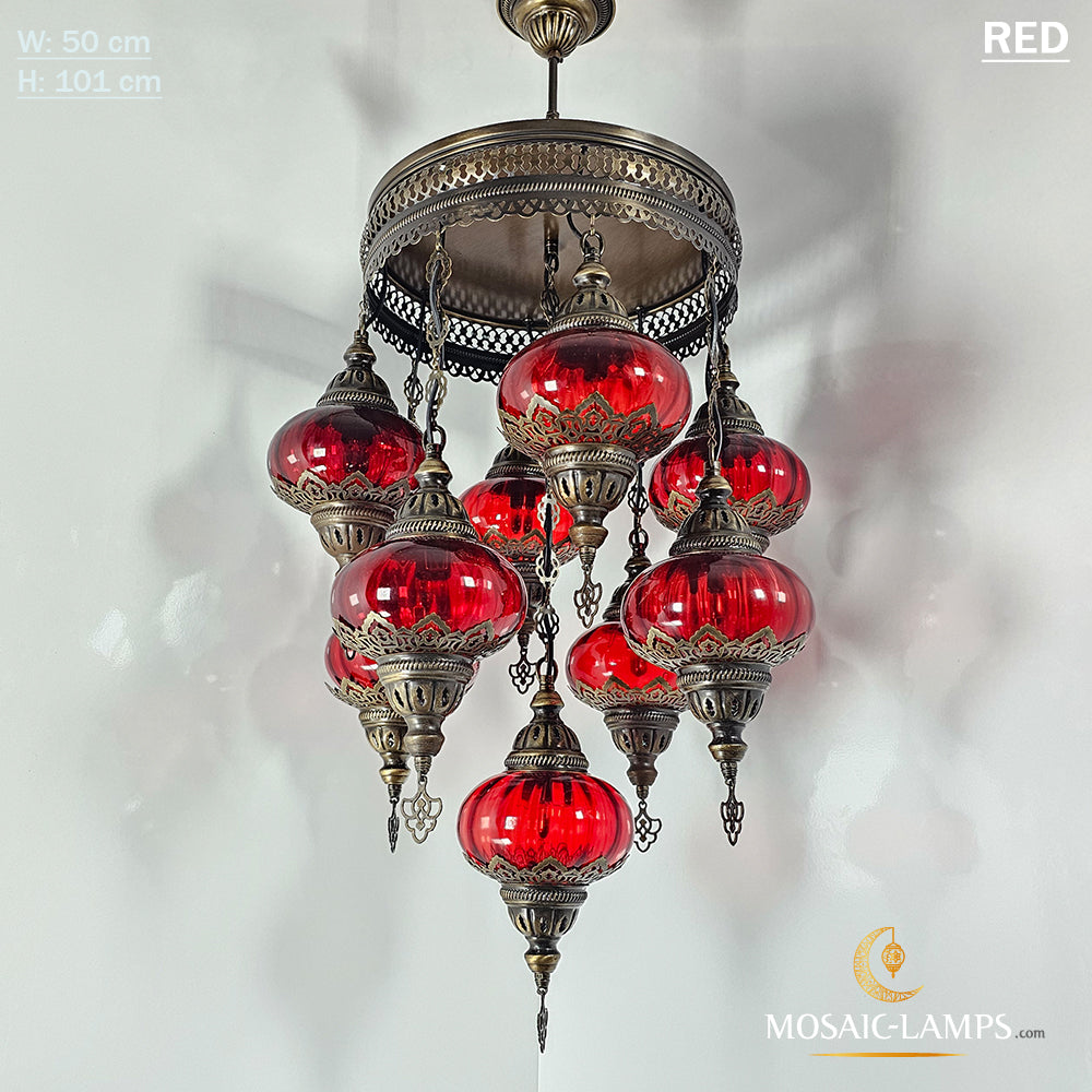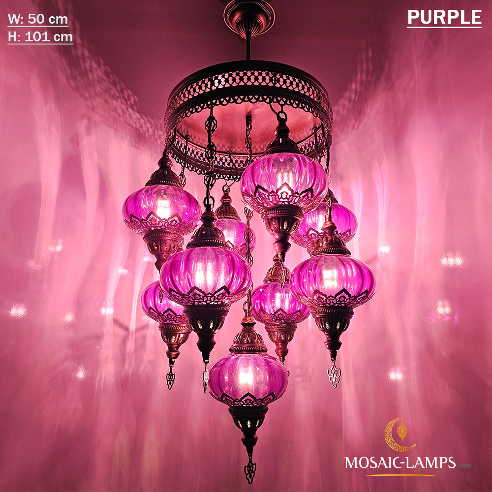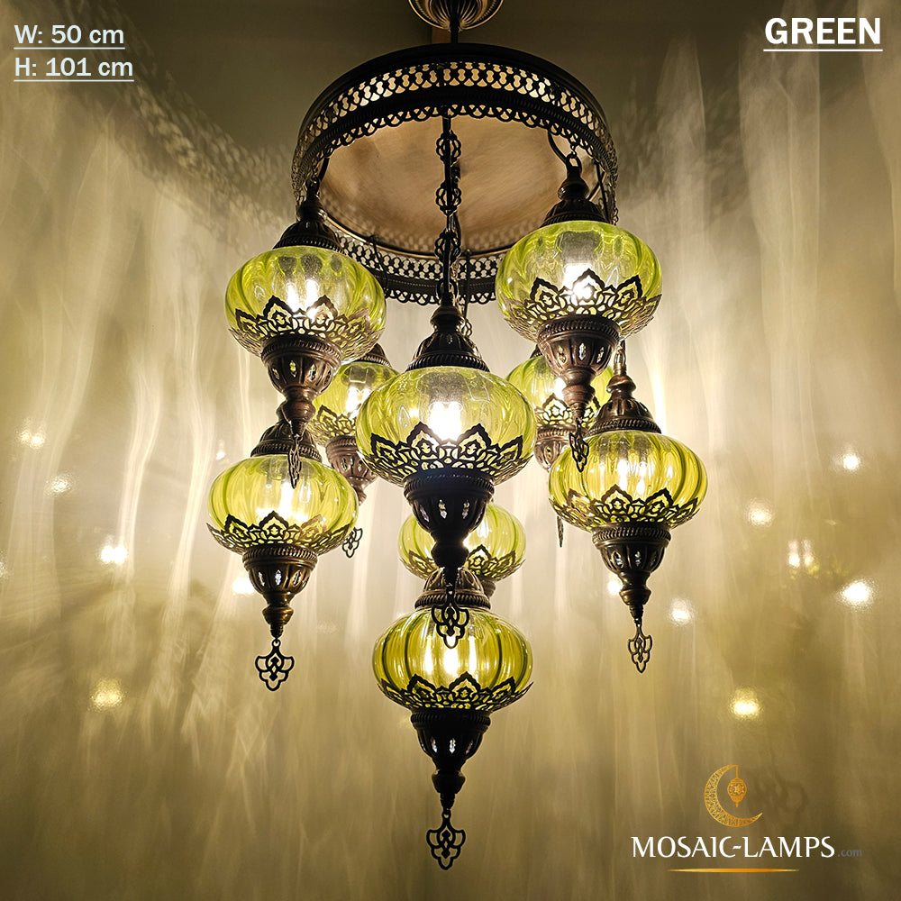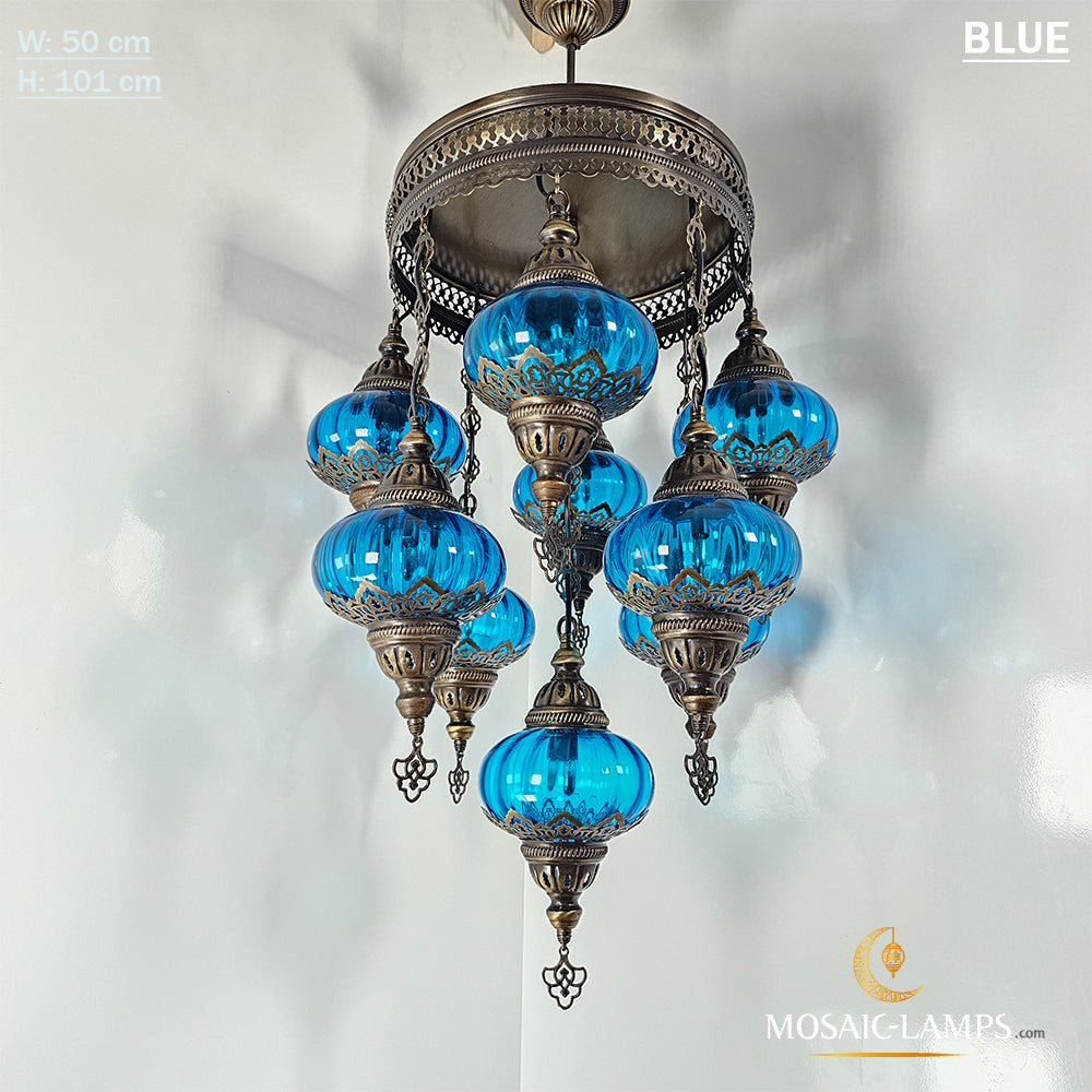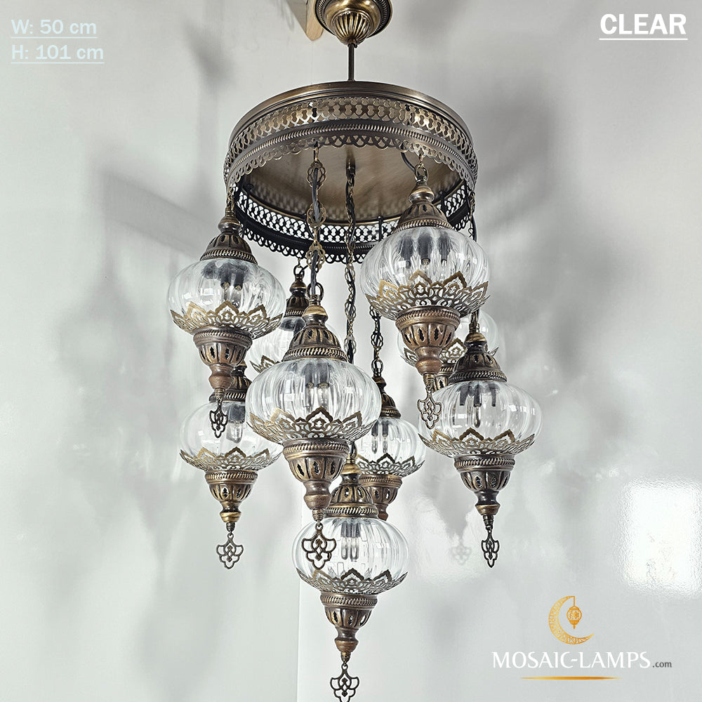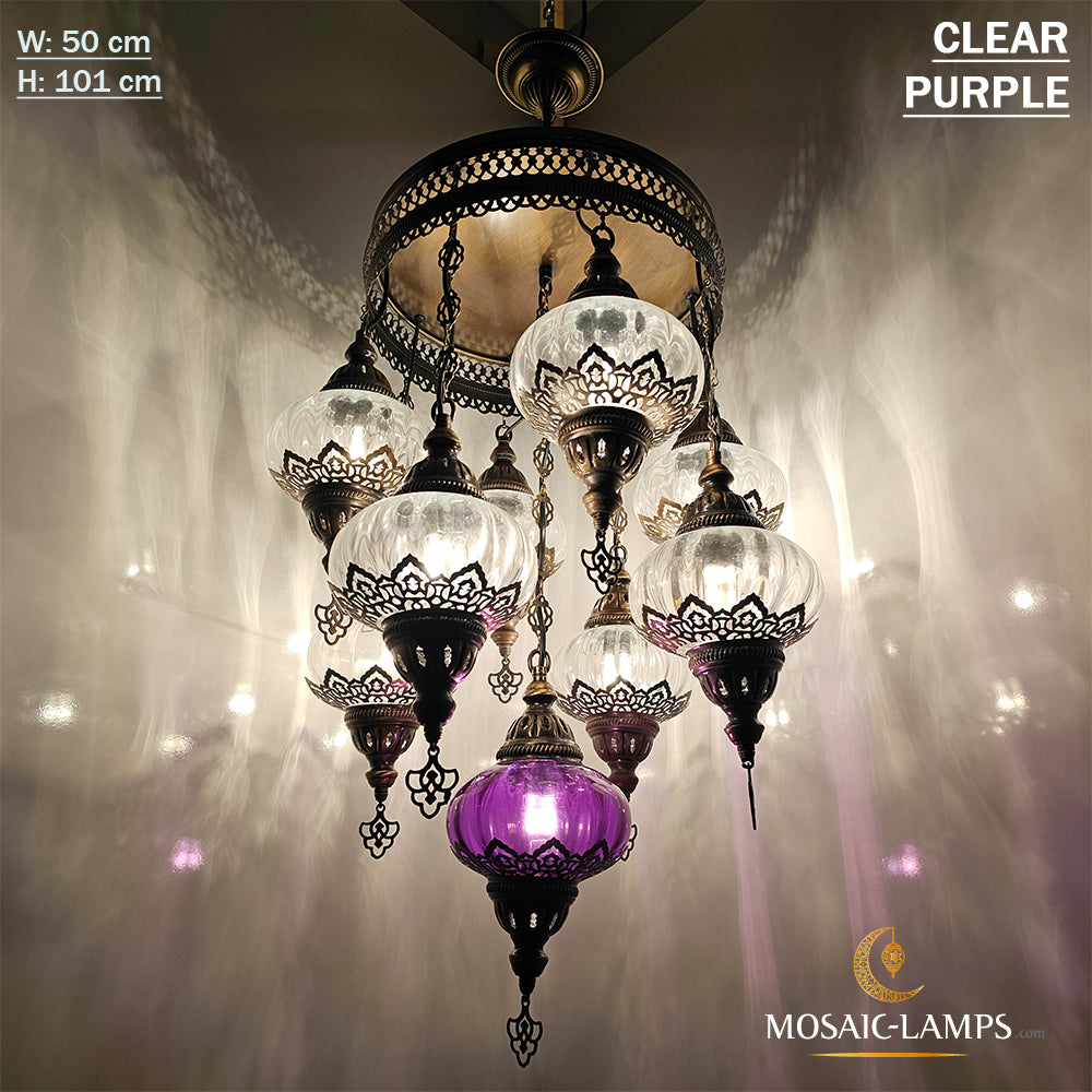 9 Mixed Optical Globe Ottoman Chandelier, Clear and Painted Living Room Lamp, Restaurant, Cafe, Bar, Office, Moroccan Lights, Blown Glass