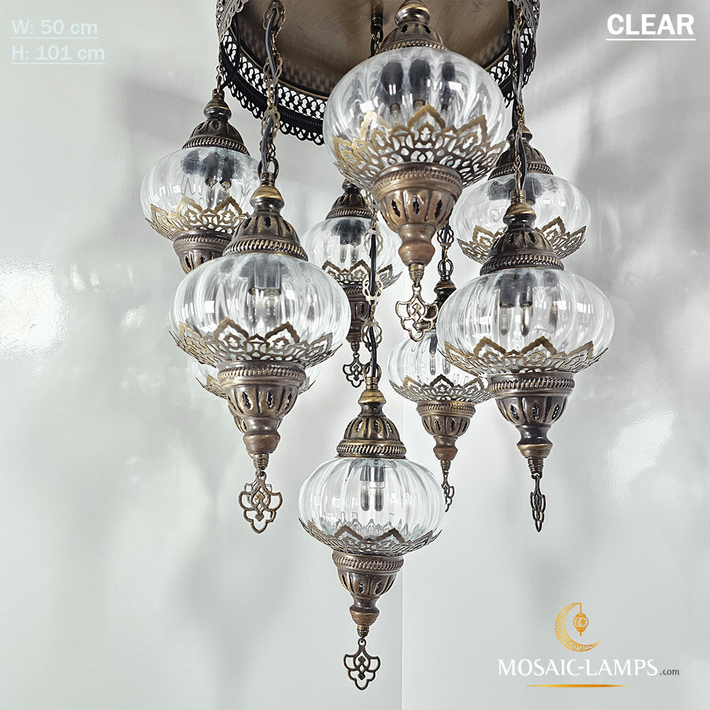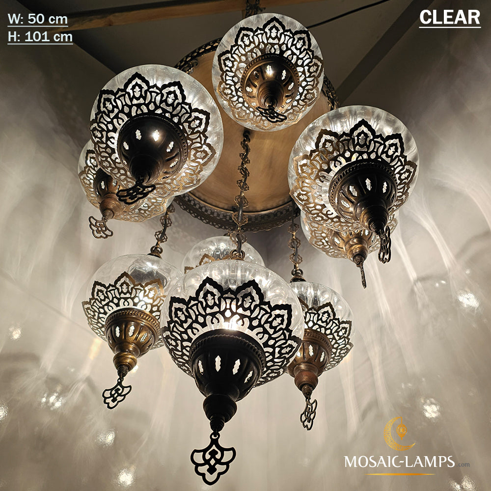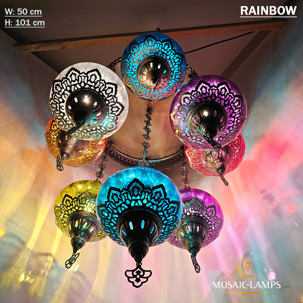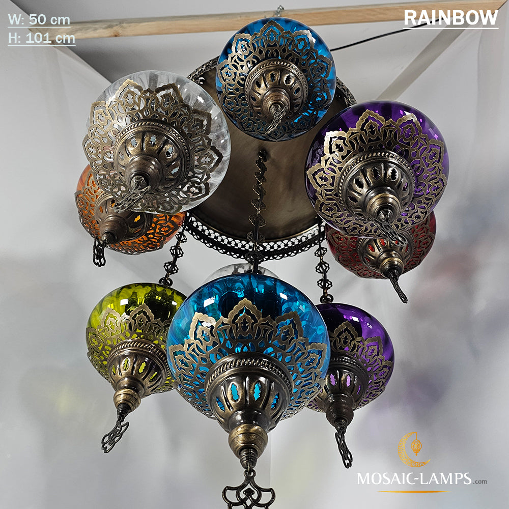 9 Mixed Optical Globe Ottoman Chandelier, Clear and Painted Living Room Lamp, Restaurant, Cafe, Bar, Office, Moroccan Lights, Blown Glass.