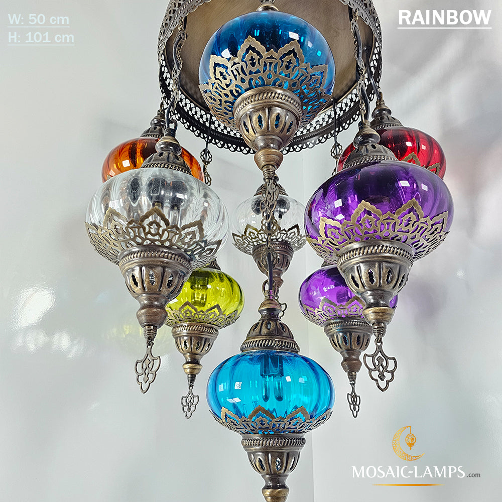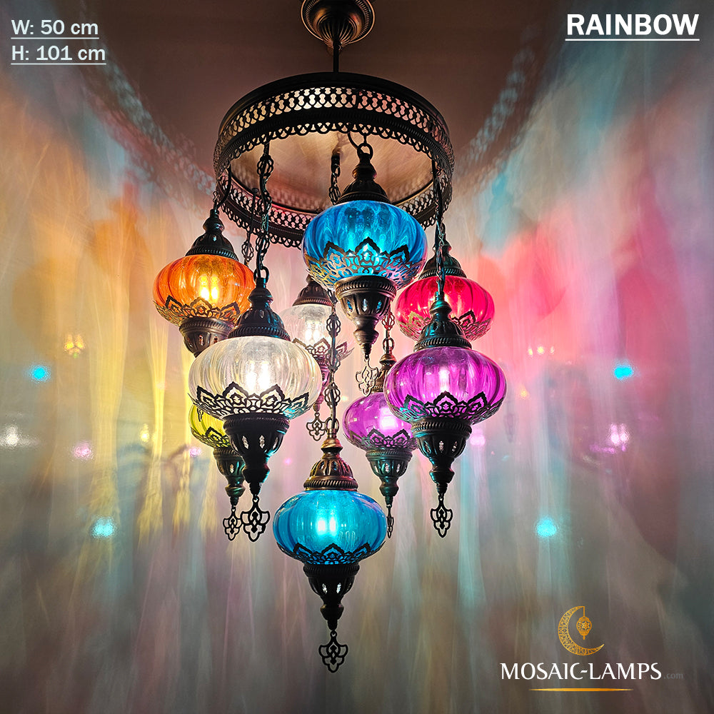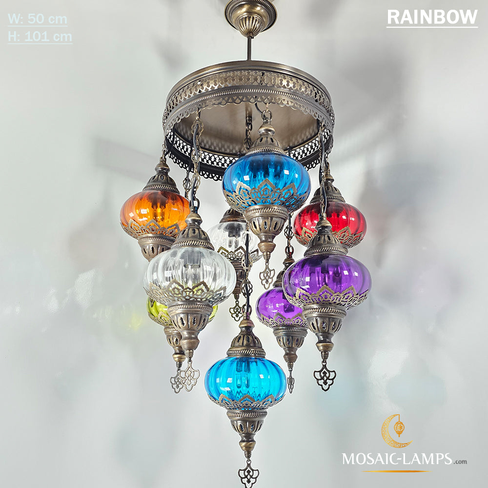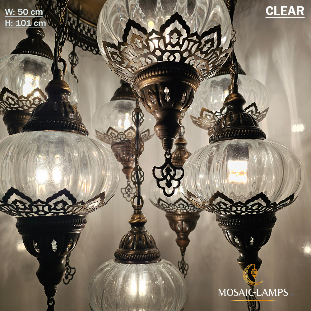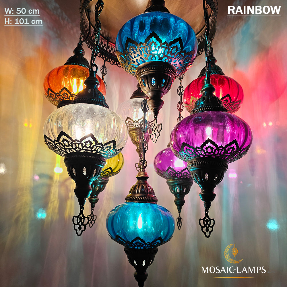 9 Mixed Optical Globe Ottoman Chandelier, Clear and Painted Living Room Lamp, Restaurant, Cafe, Bar, Office, Moroccan Lights, Blown Glass.
