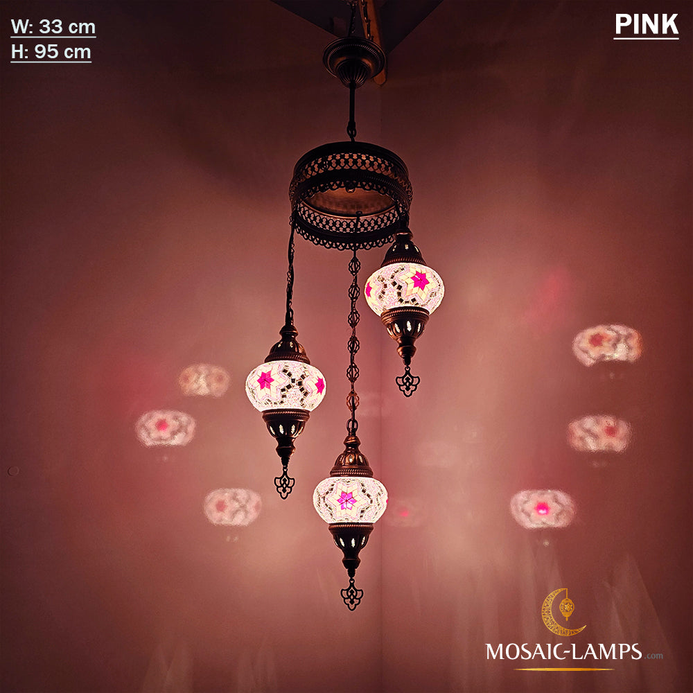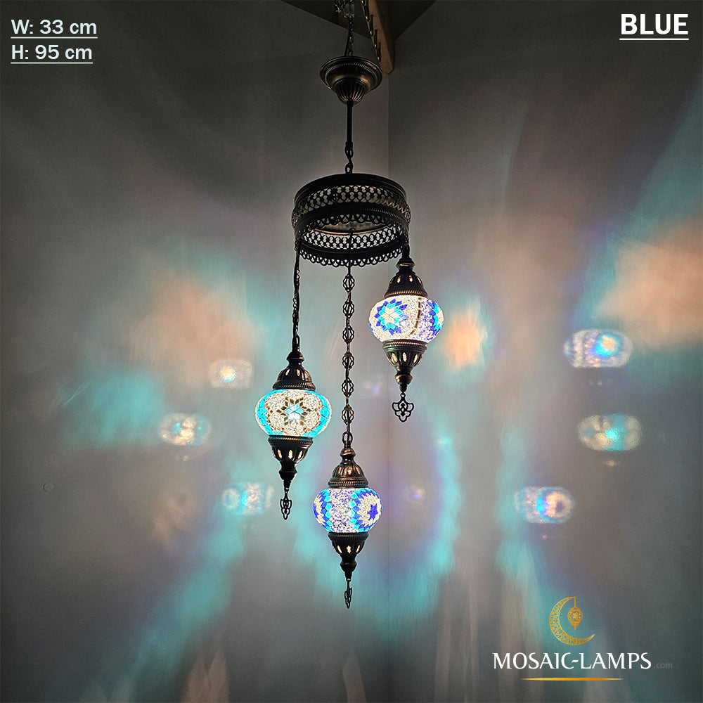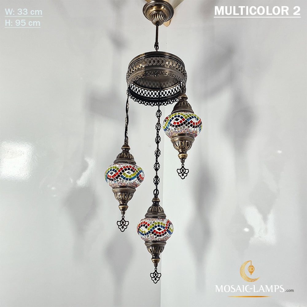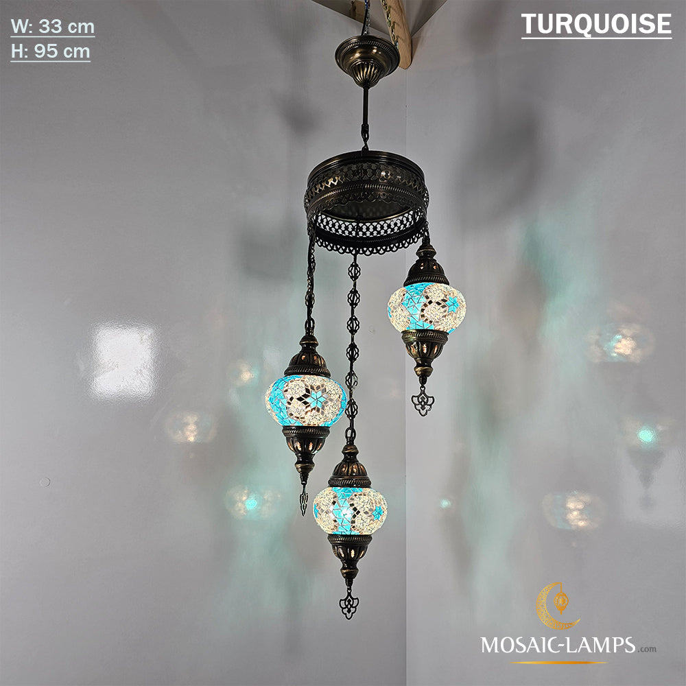 Candelabro en espiral marroquí de 3 globos medianos, juego de lámparas de mosaico turco para sala de estar de tres bolas, luces colgantes otomanas, lámparas de restaurante