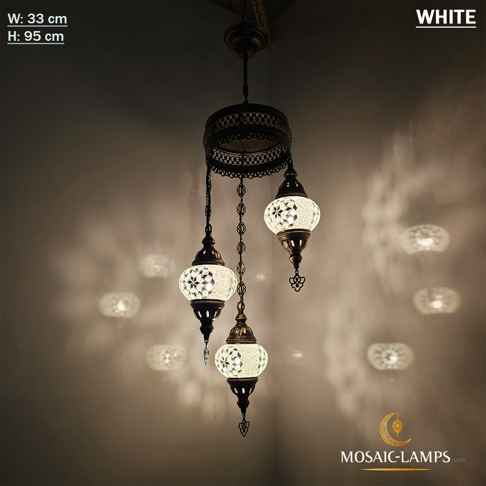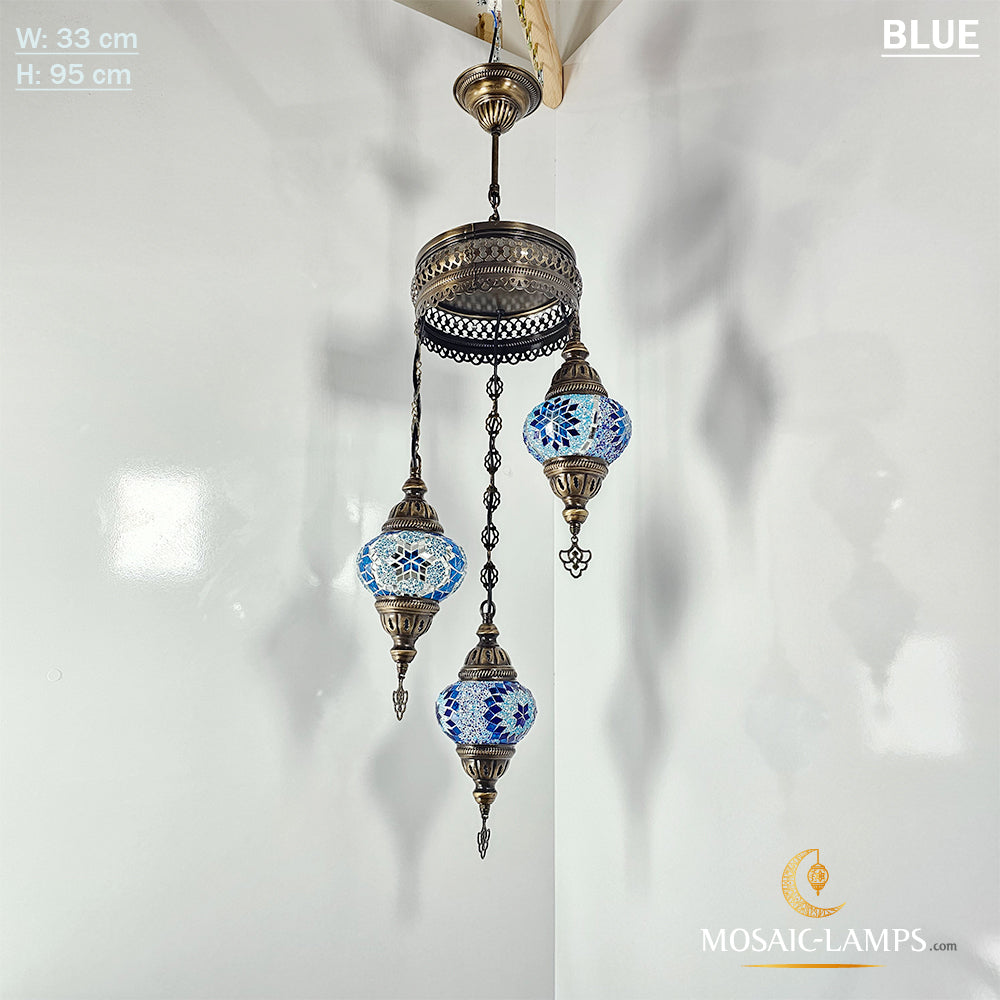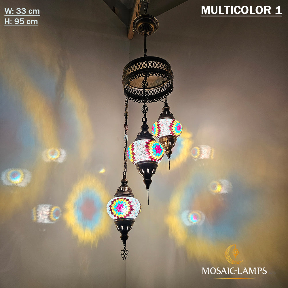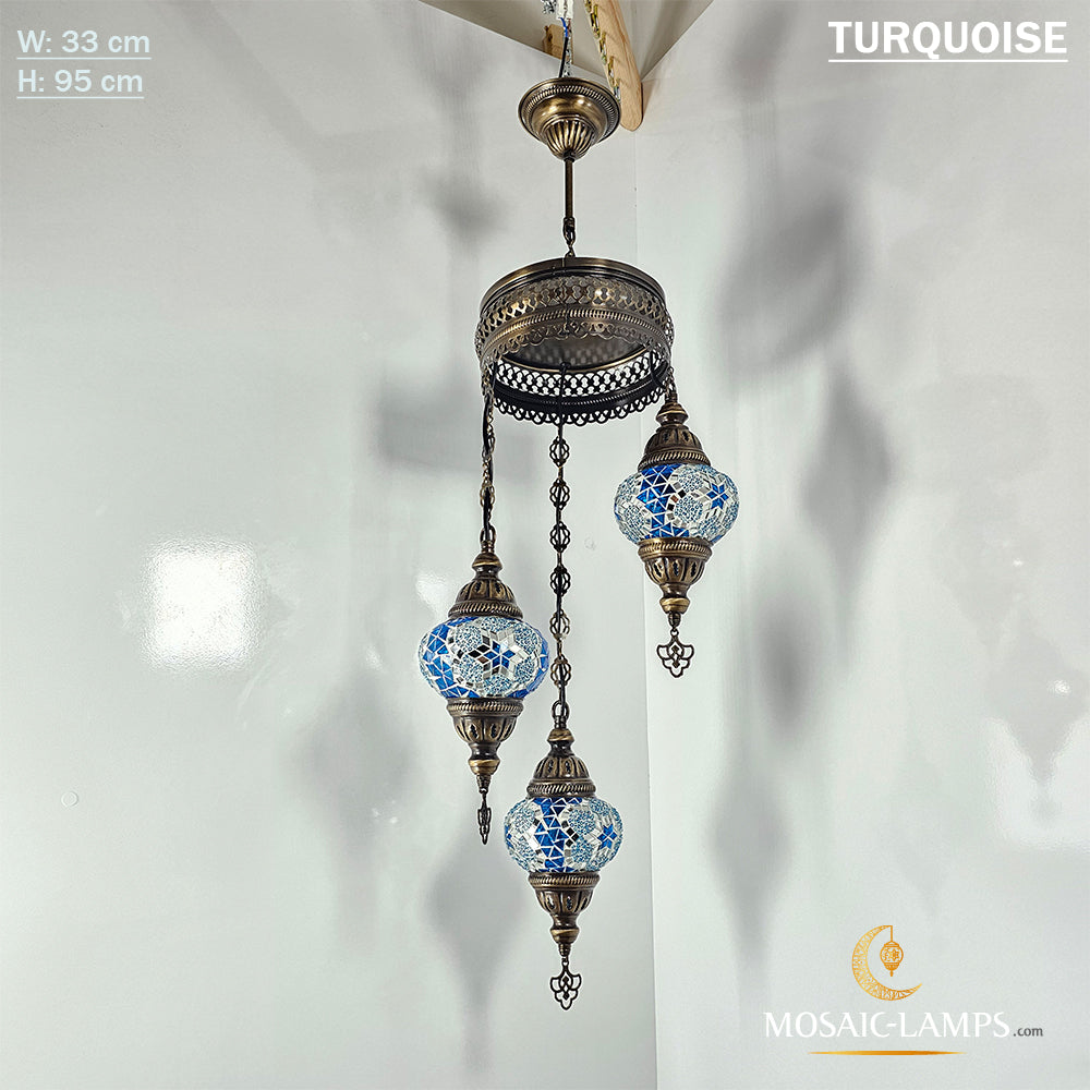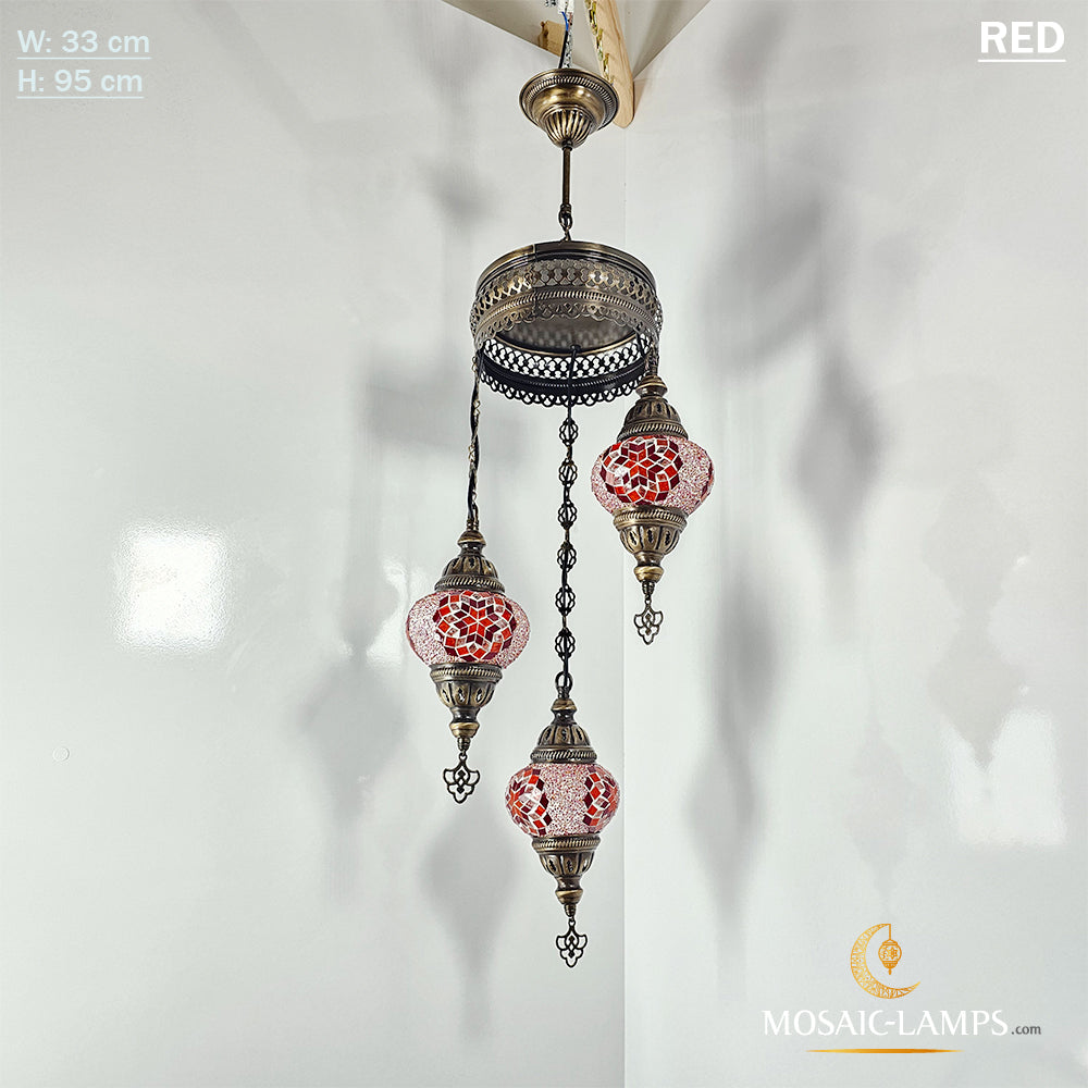 Candelabro en espiral marroquí de 3 globos medianos, juego de lámparas de mosaico turco para sala de estar de tres bolas, luces colgantes otomanas, lámparas de restaurante