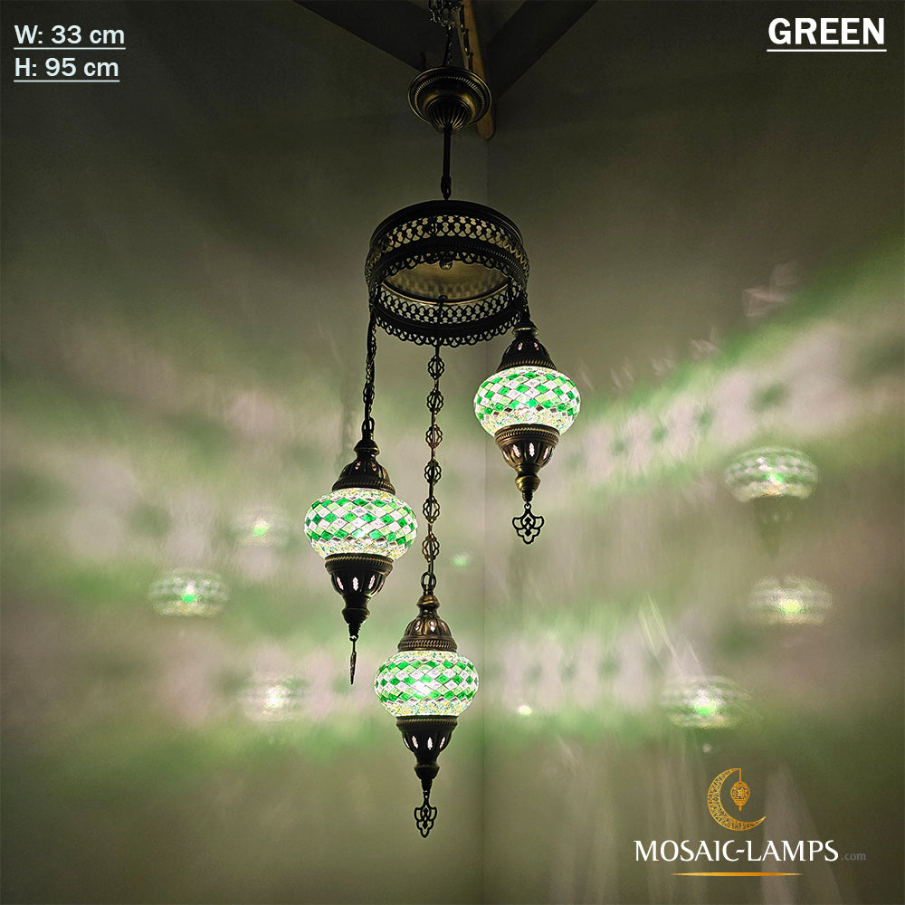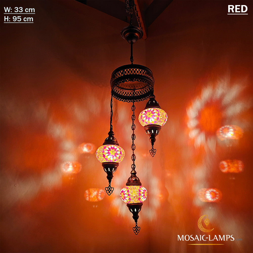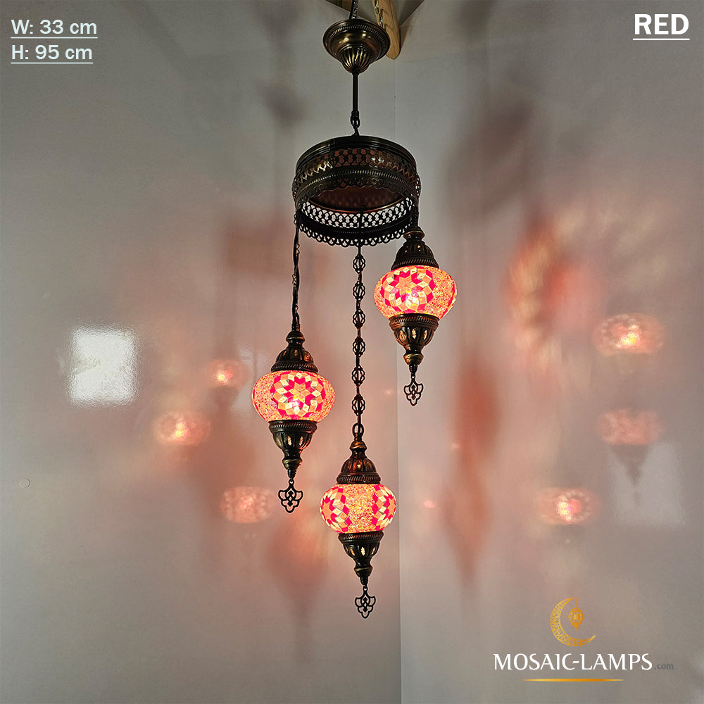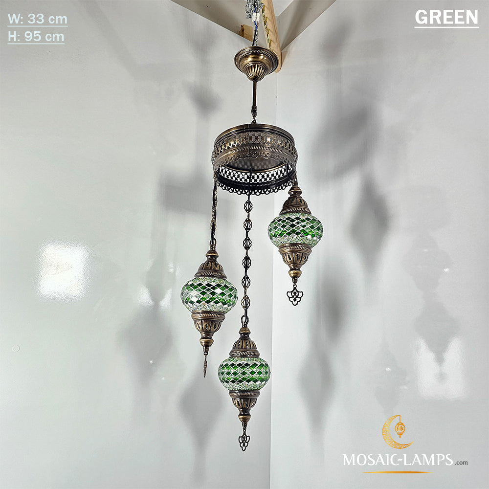 Candelabro en espiral marroquí de 3 globos medianos, juego de lámparas de mosaico turco para sala de estar de tres bolas, luces colgantes otomanas, lámparas de restaurante