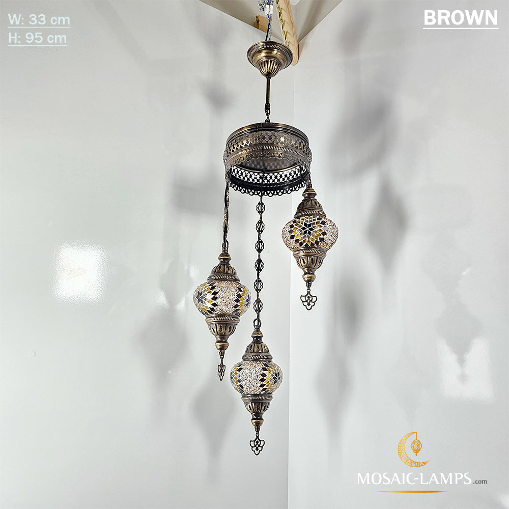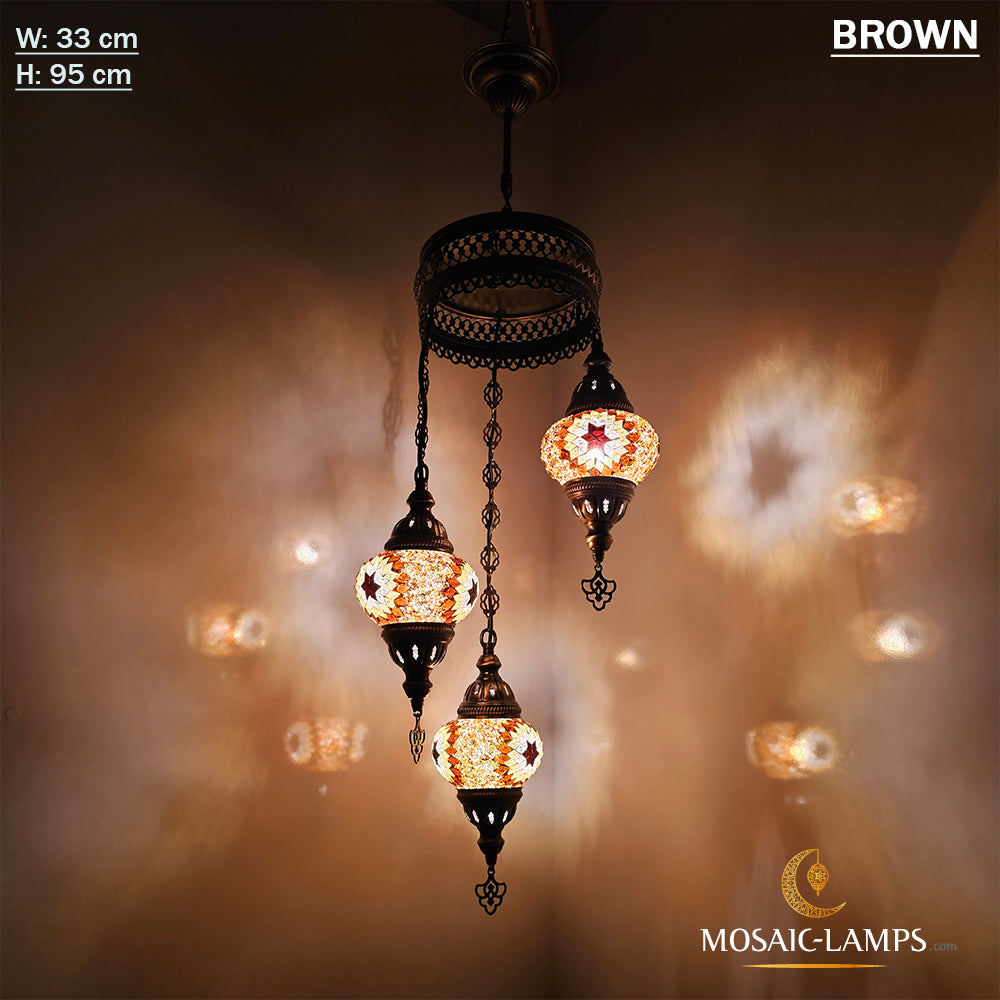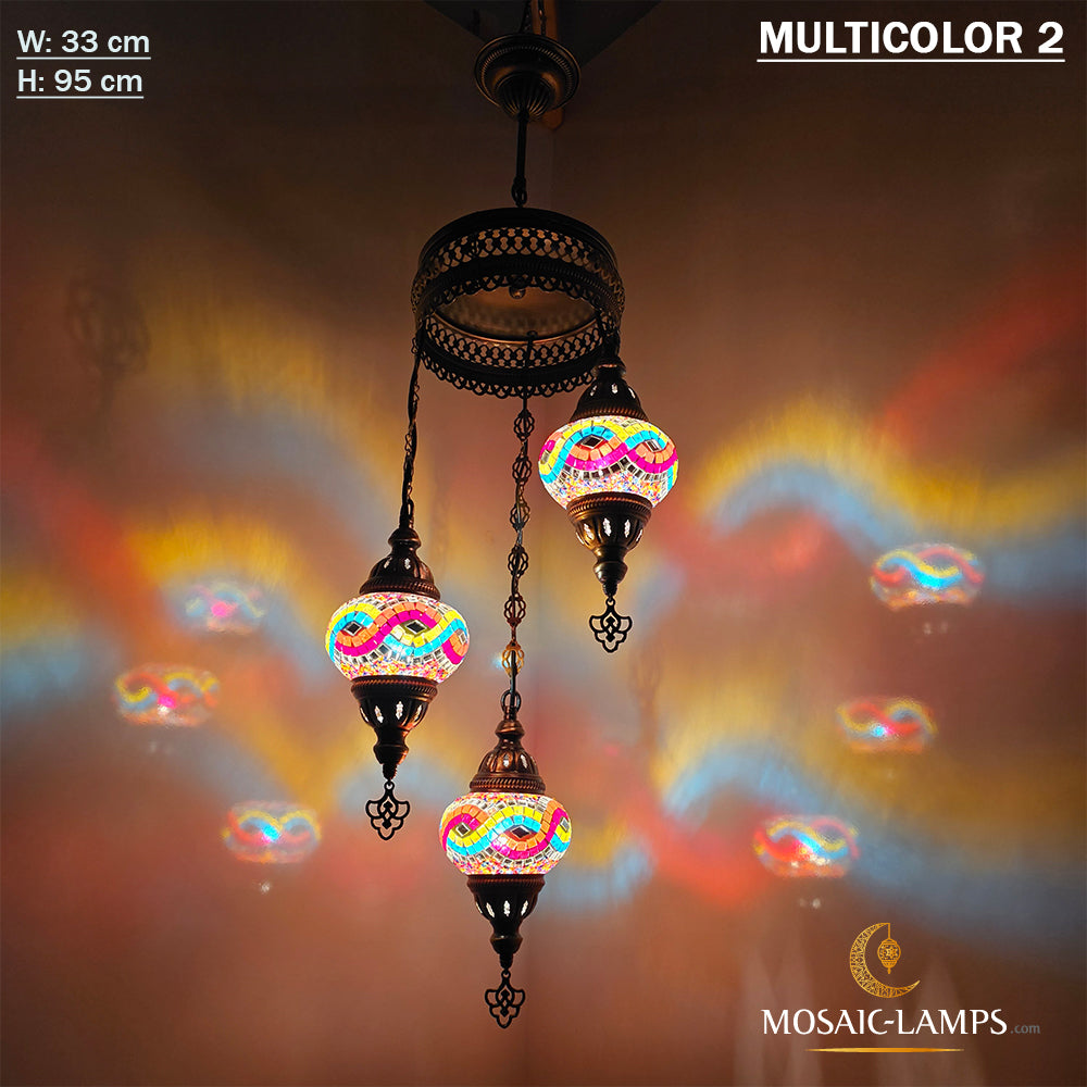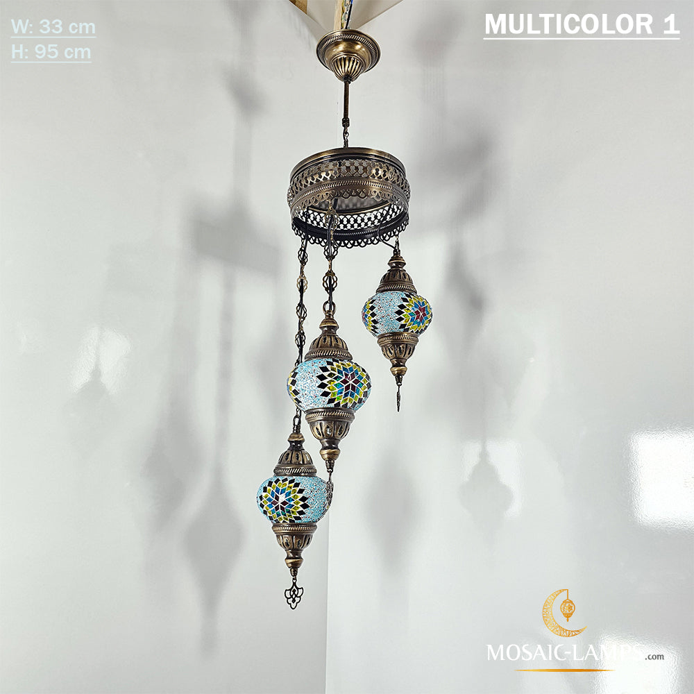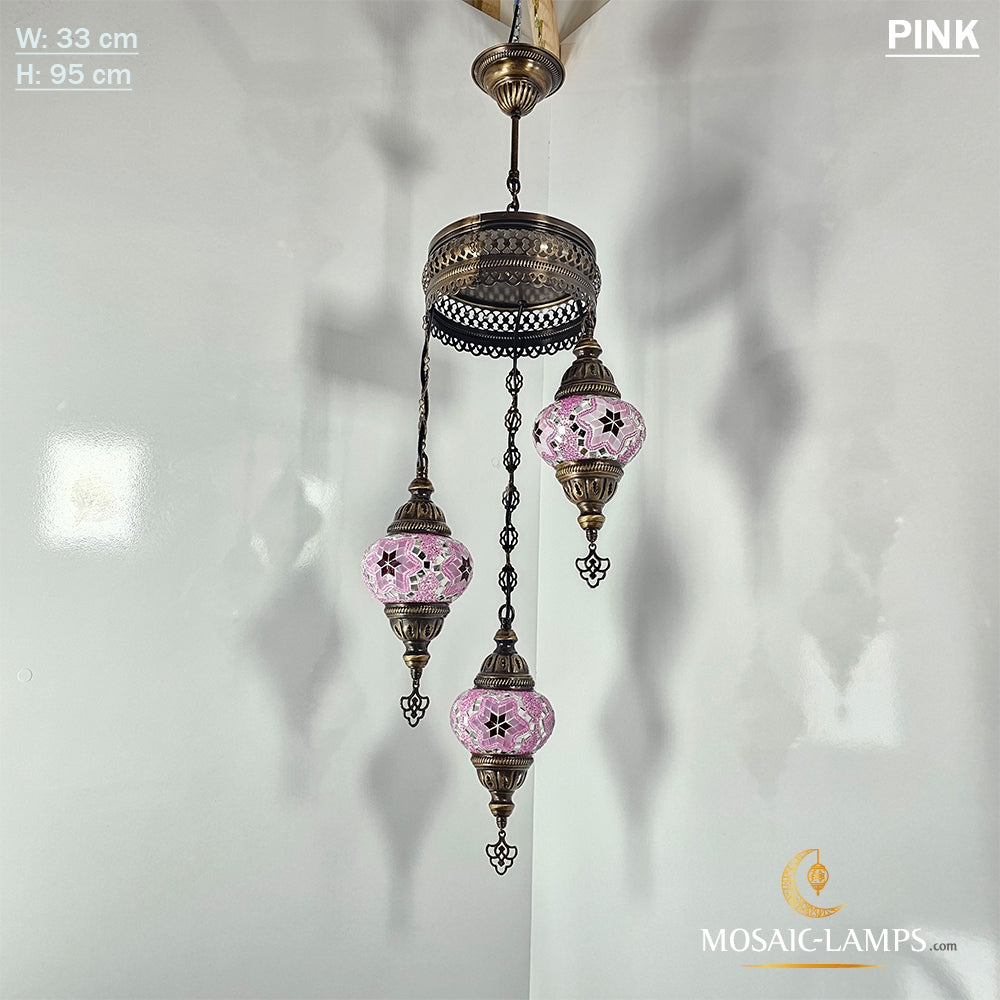 Candelabro en espiral marroquí de 3 globos medianos, juego de lámparas de mosaico turco para sala de estar de tres bolas, luces colgantes otomanas, lámparas de restaurante.