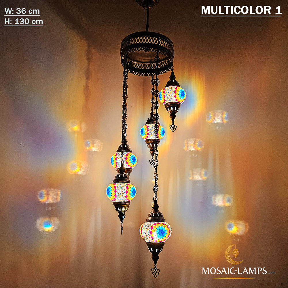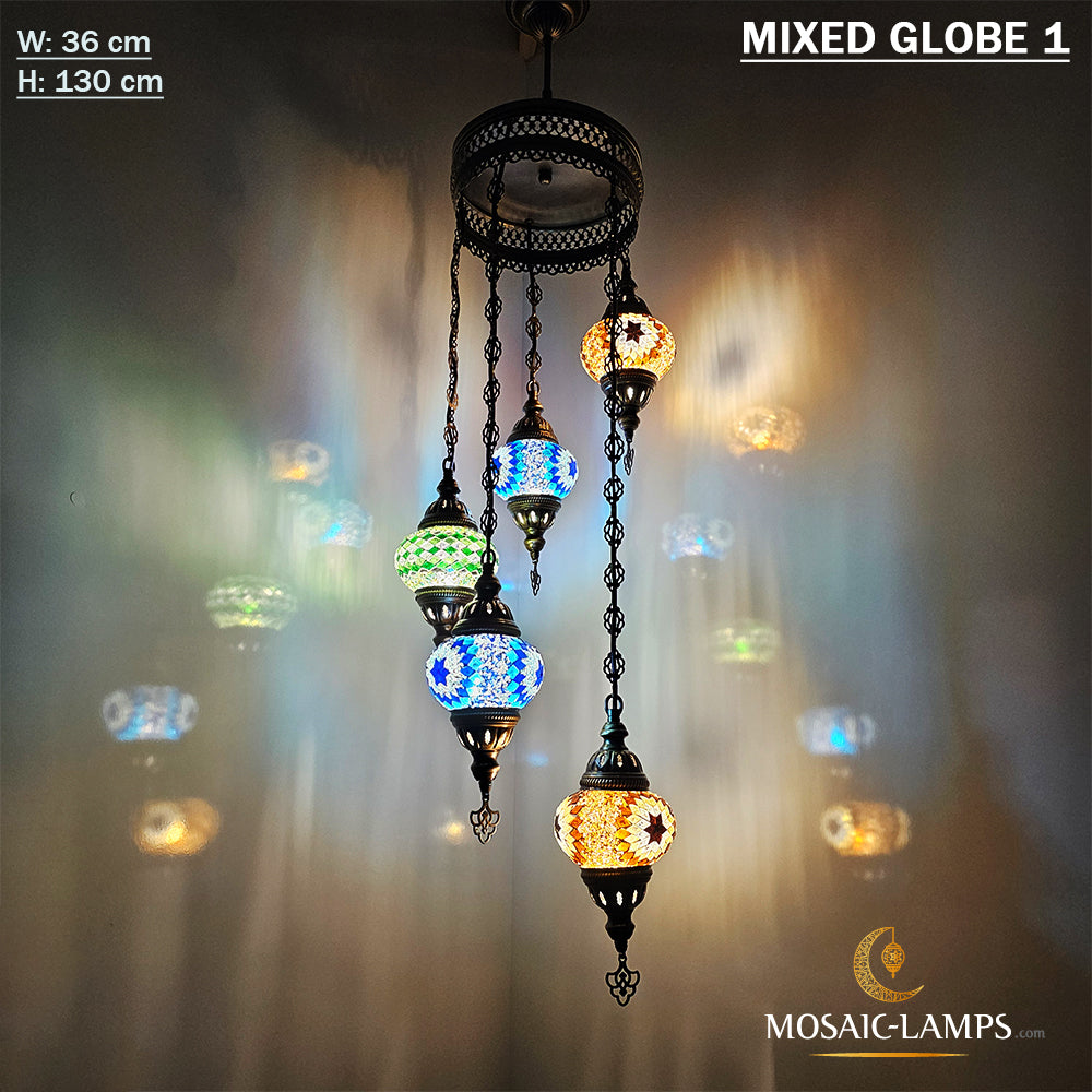 5 candelabro turco en espiral de globo mediano, conjuntos de techo de mosaico hecho a mano marroquí, luz de mosaico colgante de sala de estar, luces de restaurante, lámpara de pasillo.