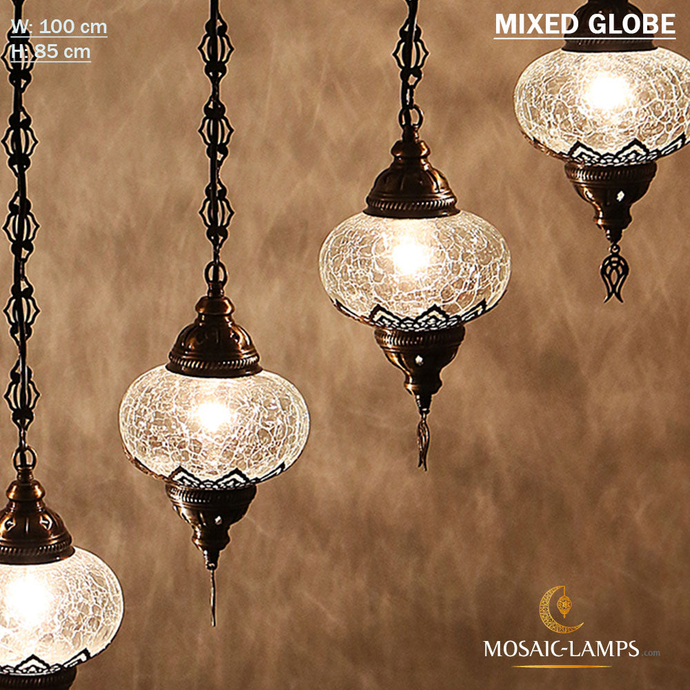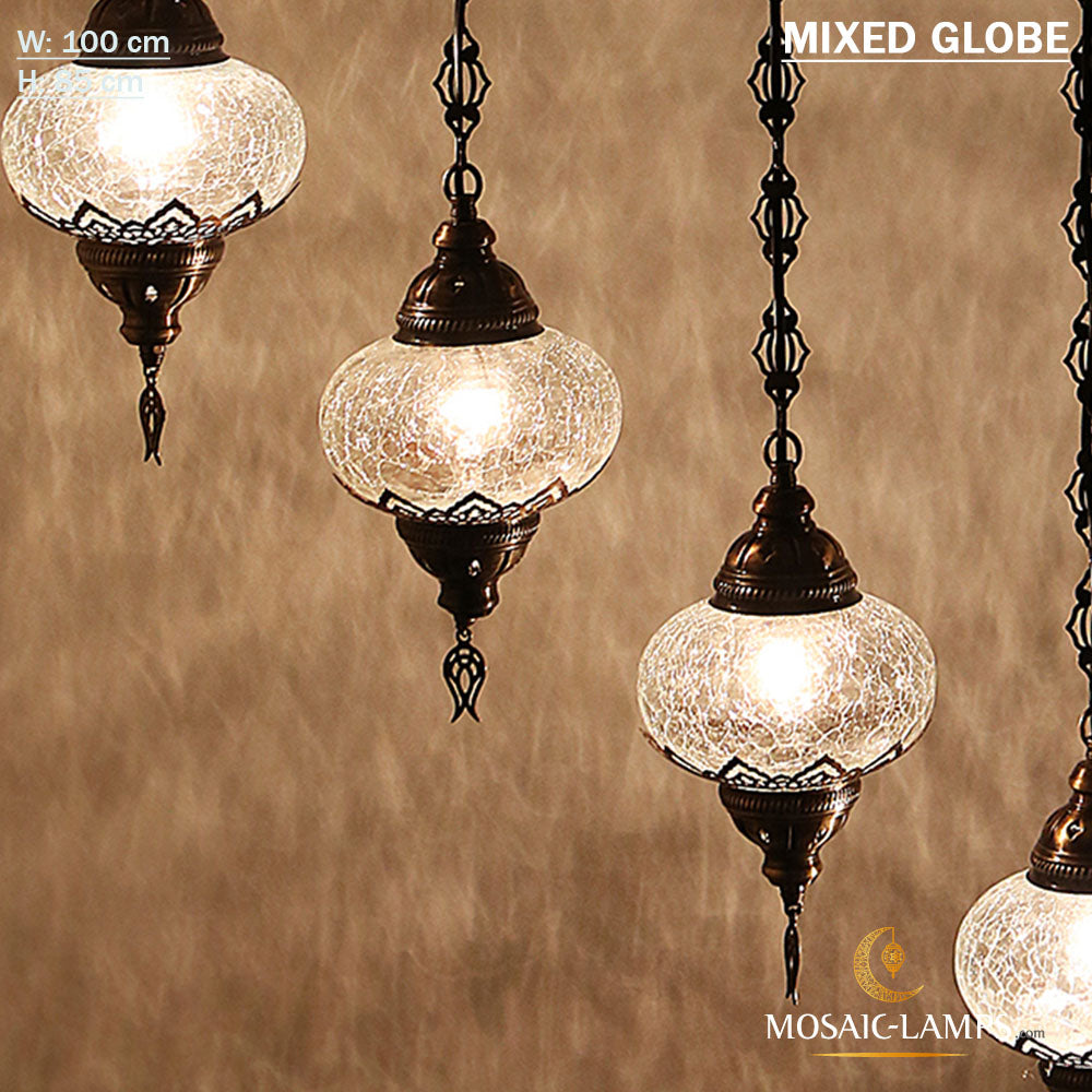 7 Lámpara de araña de isla de cocina otomana con barra de globo transparente, lámpara de luz de mesa de comedor marroquí agrietada, lámparas de barra de restaurante, lámpara de cafetería, lámpara de hotel.