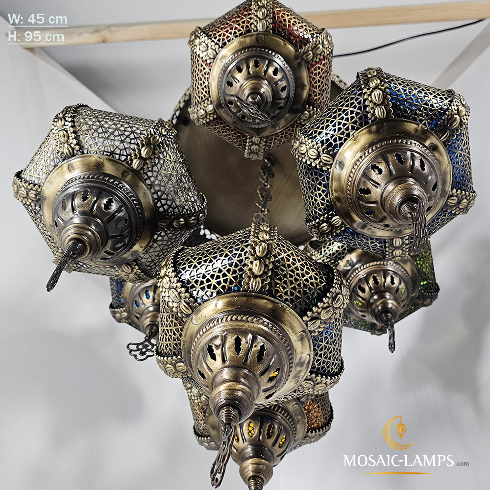 7 Lattice Byzantine Lights, Byzantine Mixed Sphere Chandeliers, Syrian Restaurant Chandelier, Shop, Cafe, Bar, Bedroom, Living Room, Gazebo