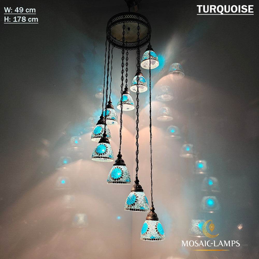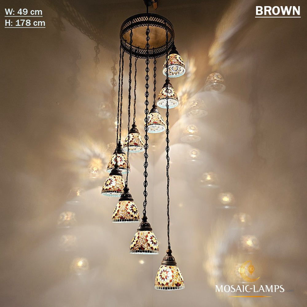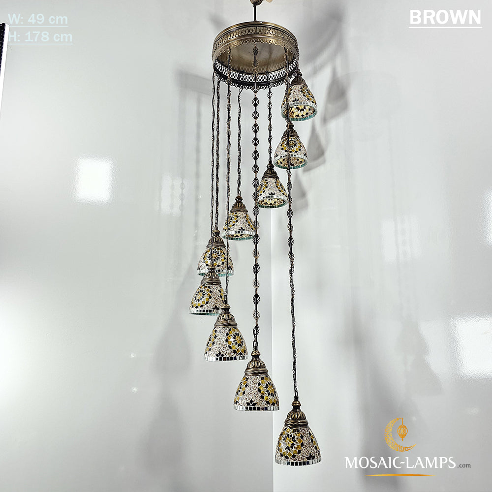 9 Sphere Shadow Spiral Chandelier, Funnel Globe Mosaic Home Lights, Living Room Moroccan Pendant Mosaic Light, Cafe, Restaturant Lights.