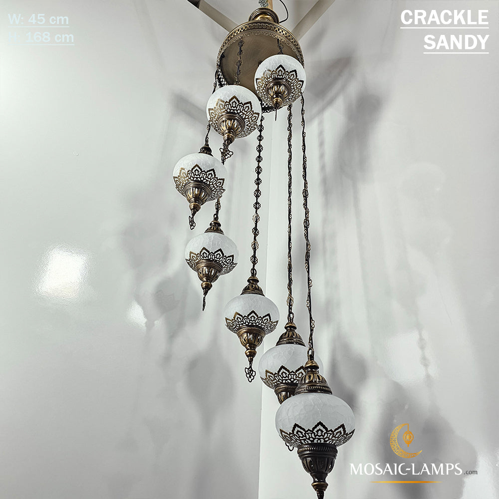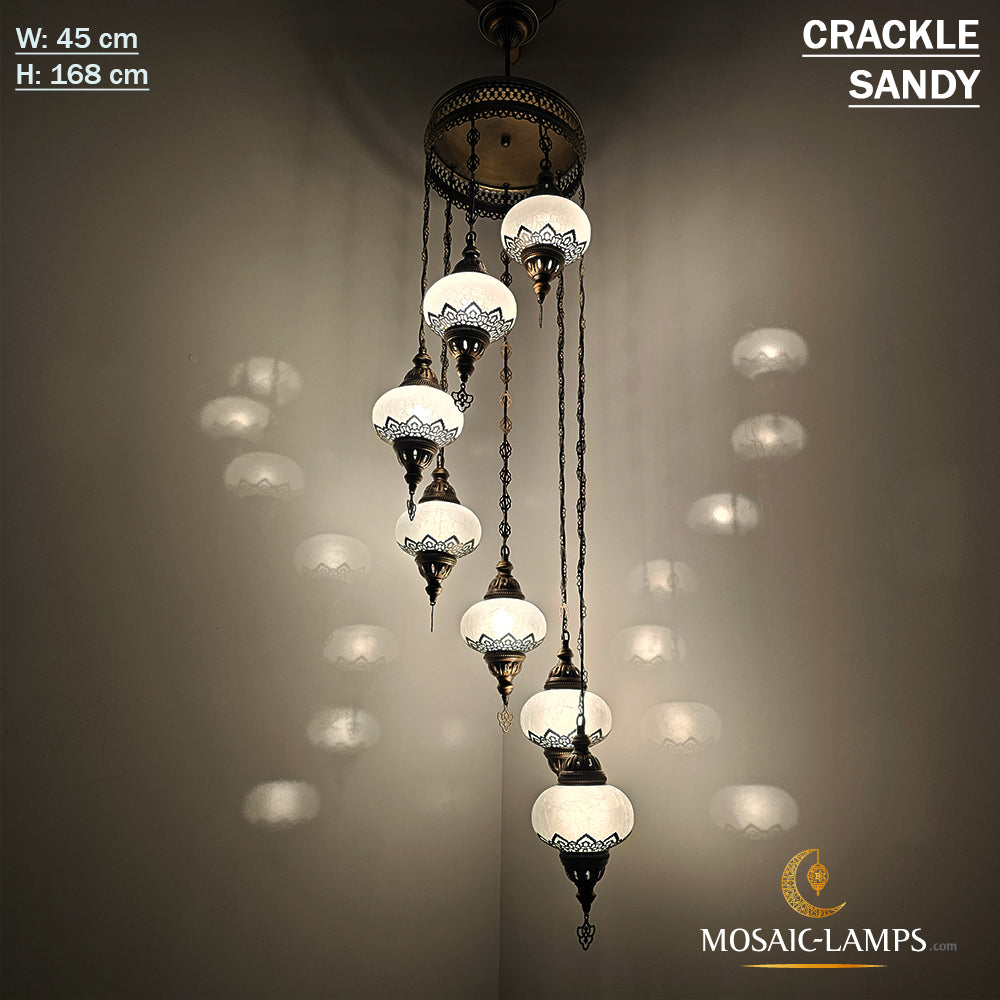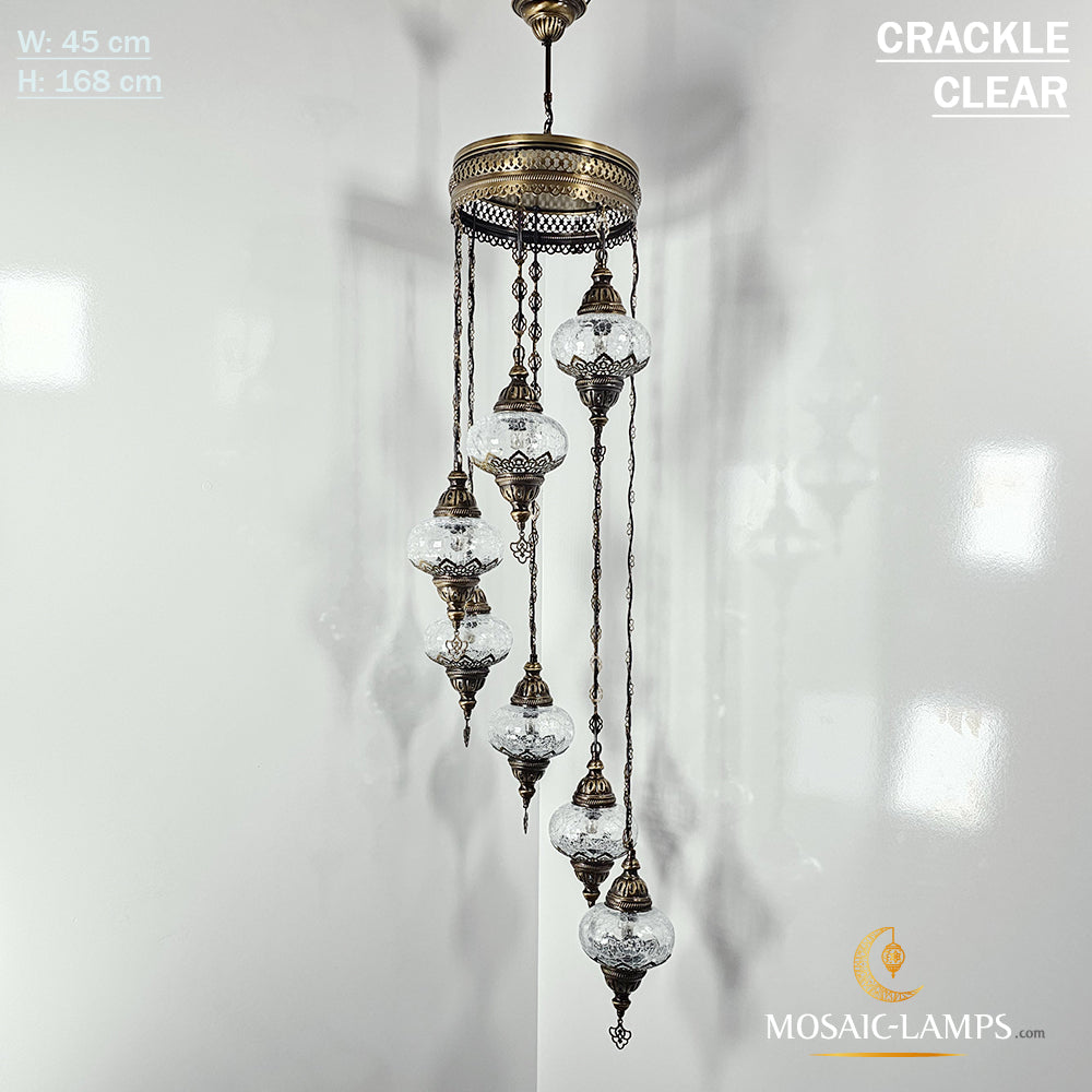 Candelabro de 7 globos transparente, conjunto de globo craquelado de 7 candelabros en espiral, candelabro de sala de estar, candelabro de cocina, candelabro de escalera marroquí