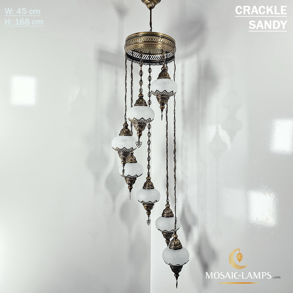 Candelabro transparente de 7 globos, conjunto de globo craquelado de 7 candelabros en espiral, candelabro de sala de estar, candelabro de cocina, candelabro de escalera marroquí.