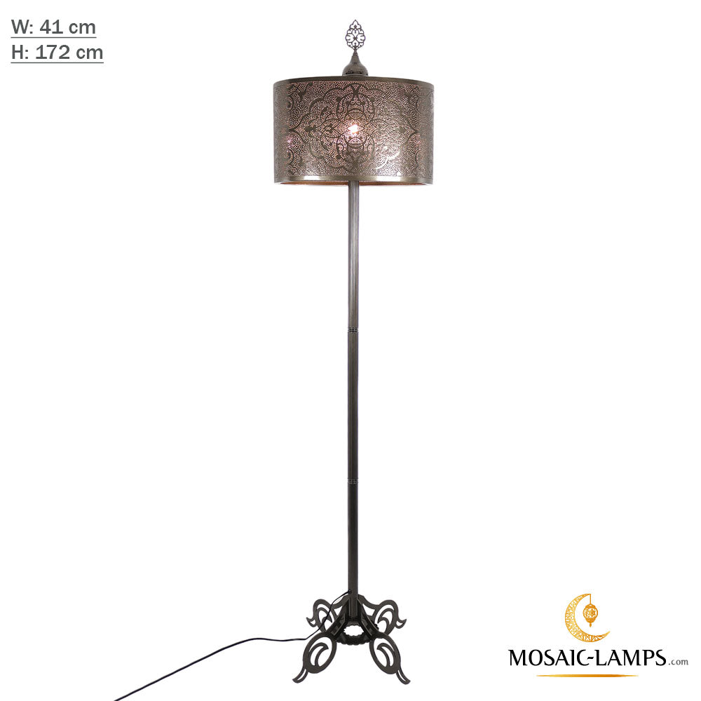 Pantalla lámpara de pie grande, luces de base de metal perforadas hechas a mano marroquíes, luces de sala de estar tradicionales, lámparas de pie auténticas de restaurante