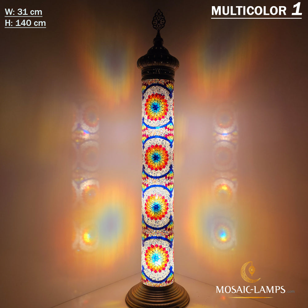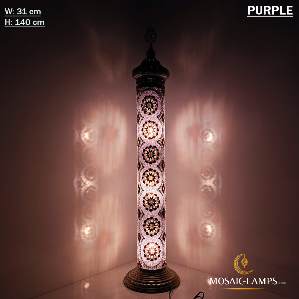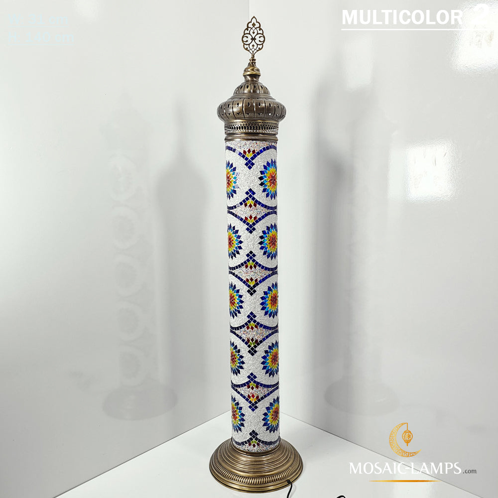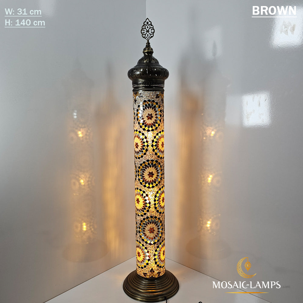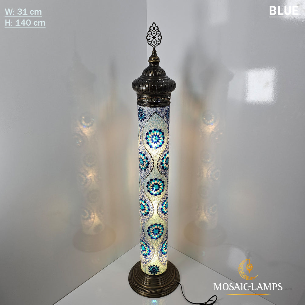 W 15 cm x 100 cm Cylinder Mosaic Floor Lamp, Turkish, Moroccan Authentic, Restaurant Corner Lamps, Entrance Door Lamp, Magnificent Cylinder Floor Lamp.