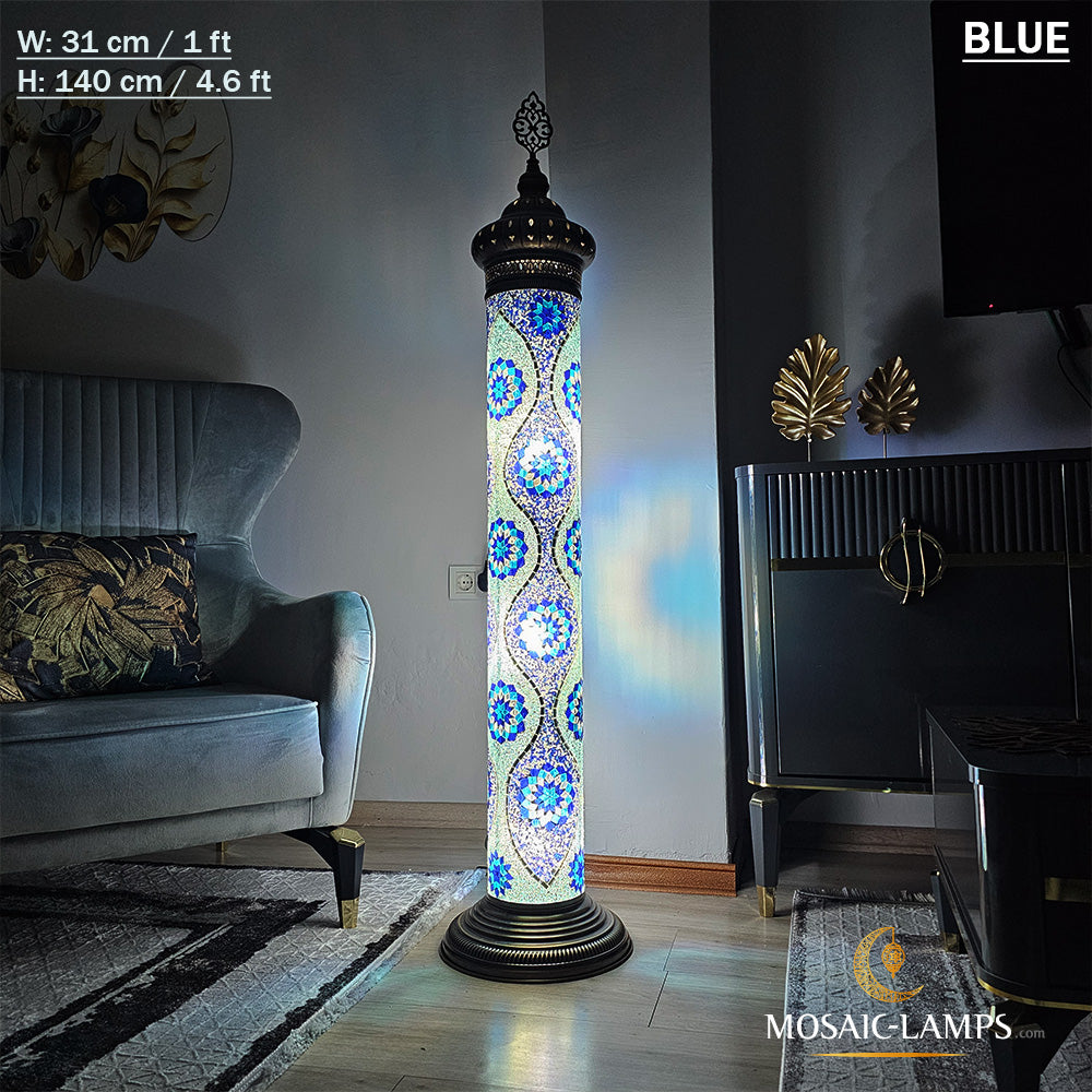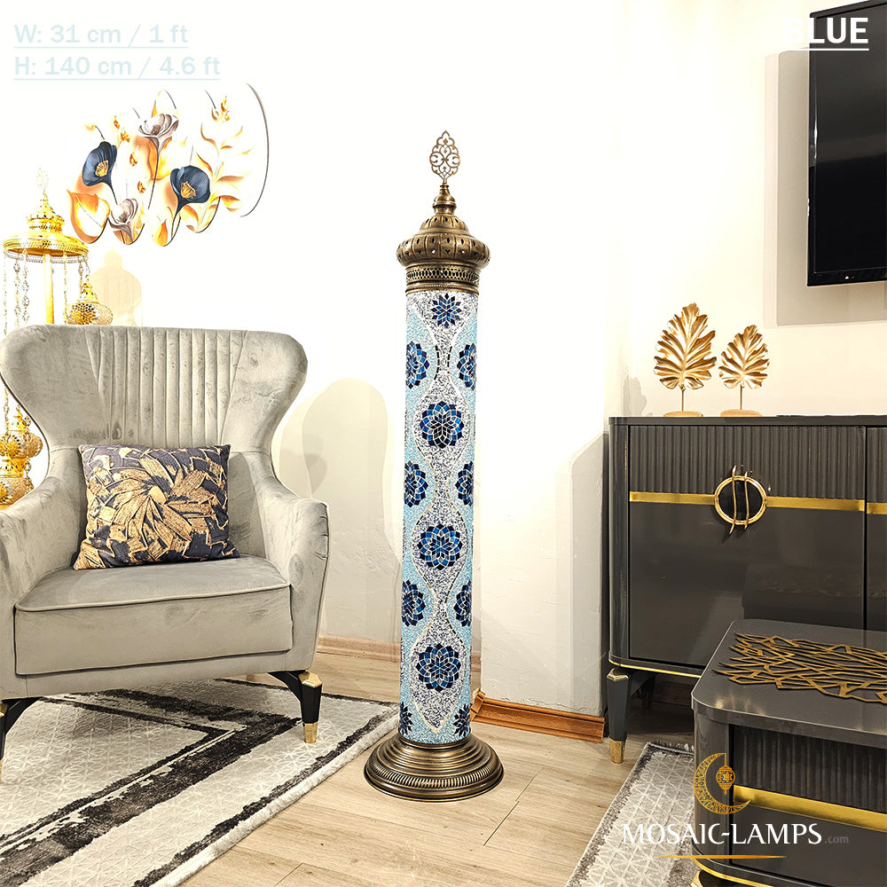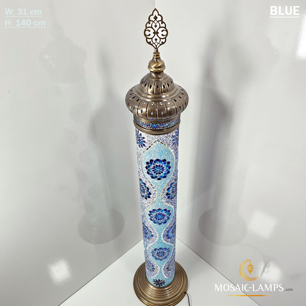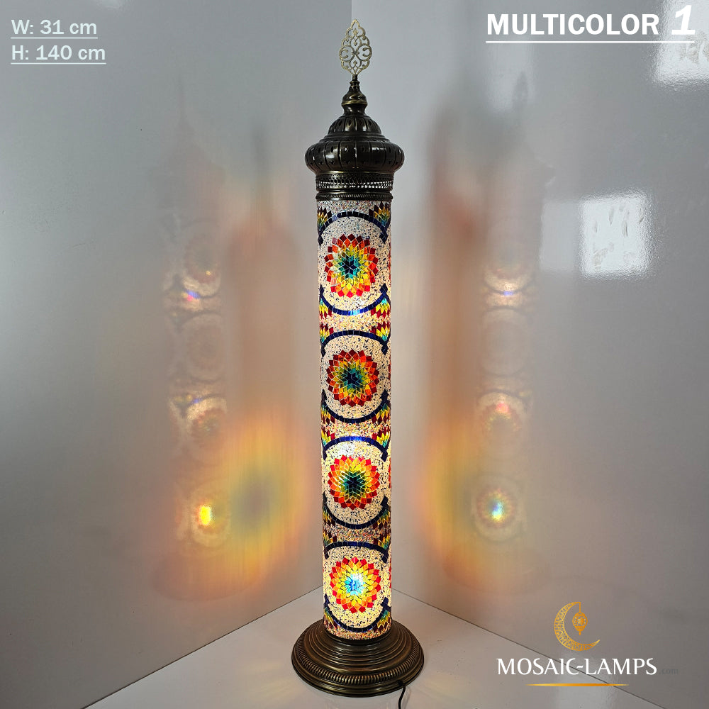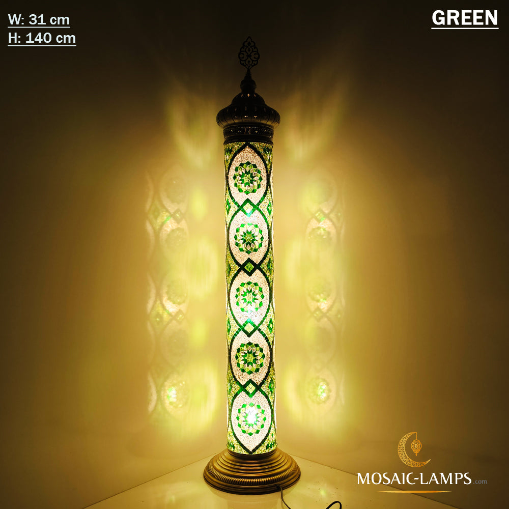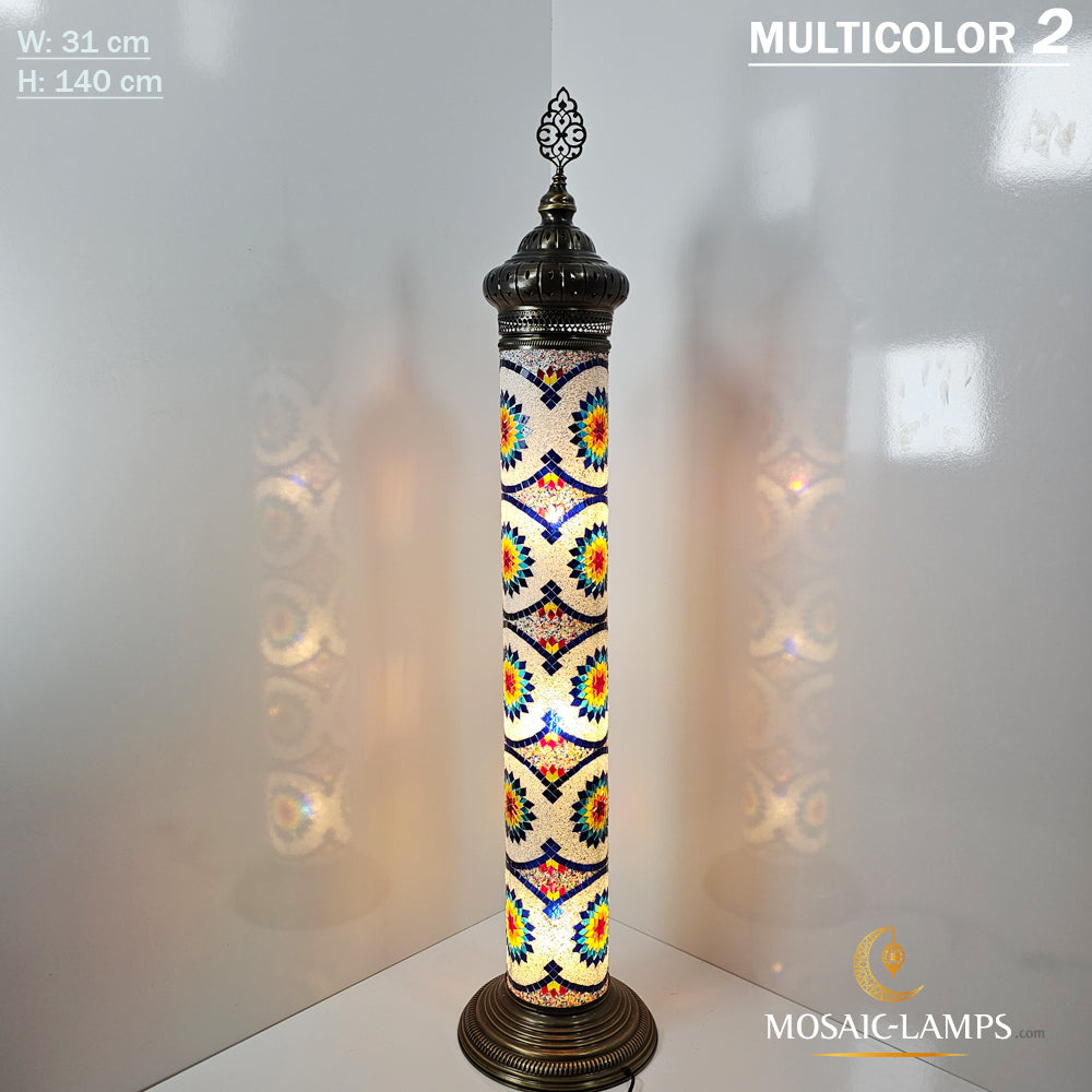 W 15 cm x 100 cm Cylinder Mosaic Floor Lamp, Turkish, Moroccan Authentic, Restaurant Corner Lamps, Entrance Door Lamp, Magnificent Cylinder Floor Lamp.