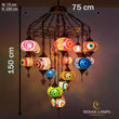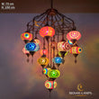 17 Globe Moroccan Big Chandelier Set, Laser Metal Turkish Mosaic Multicolor Globe Lamps, Living Room Huge Lights, Entrance Hanging Lamp