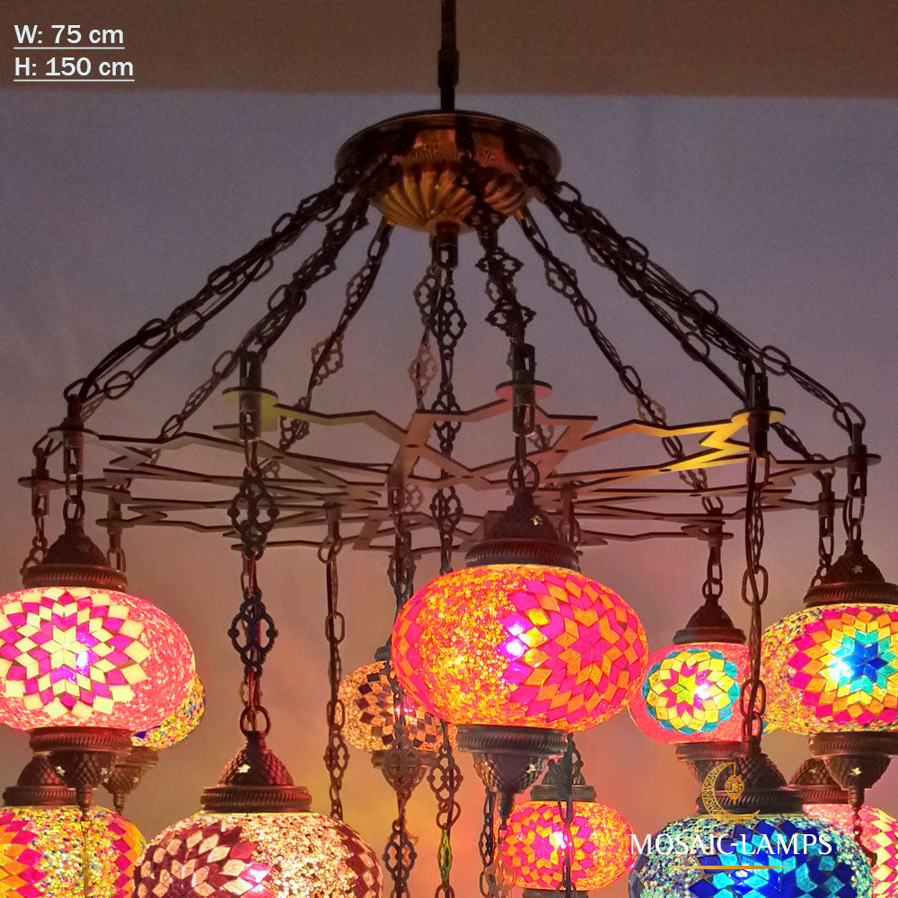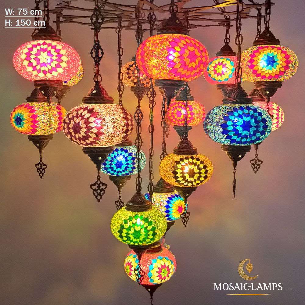 17 Globe Moroccan Big Chandelier Set, Laser Metal Turkish Mosaic Multicolor Globe Lamps, Living Room Huge Lights, Entrance Hanging Lamp.