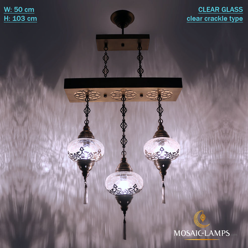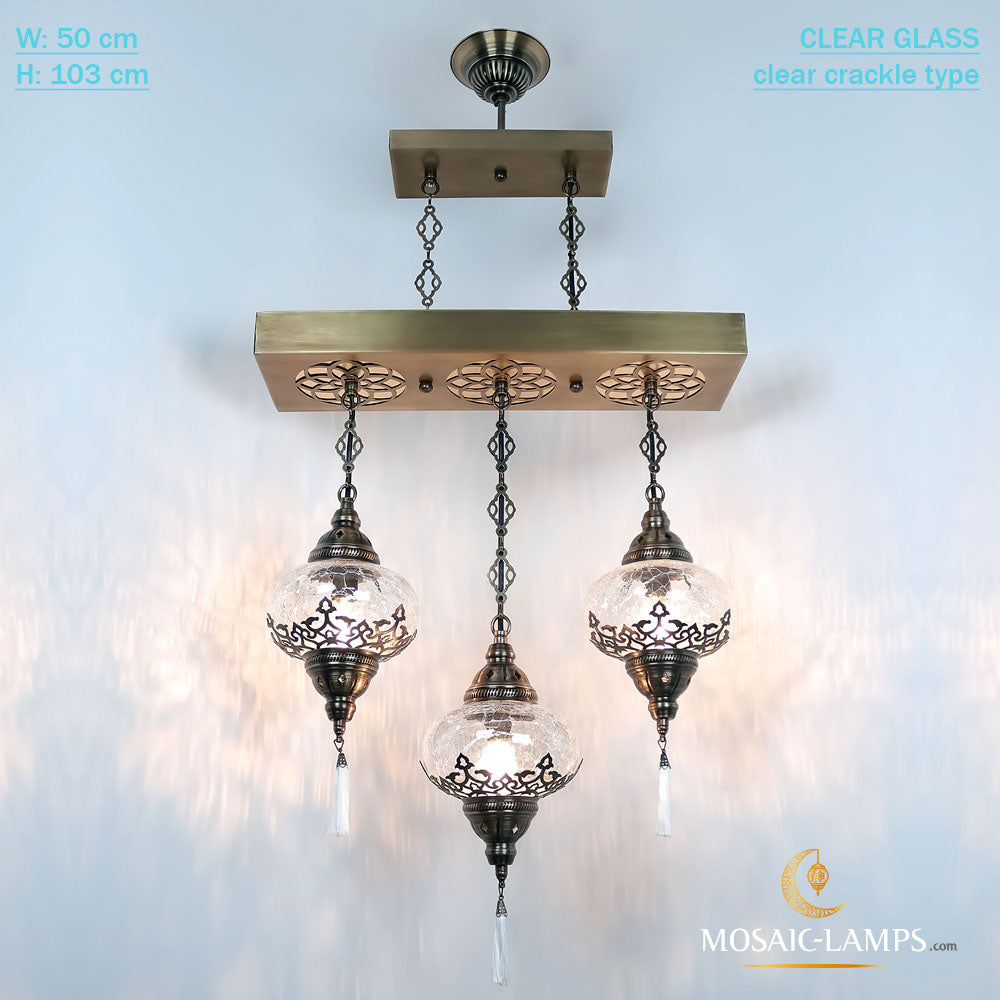 3 Globe Clear Crackle Moroccan Chandelier, kitchen & dining room Lamps, living room, Track Lighting, Kitchen Island Lighting