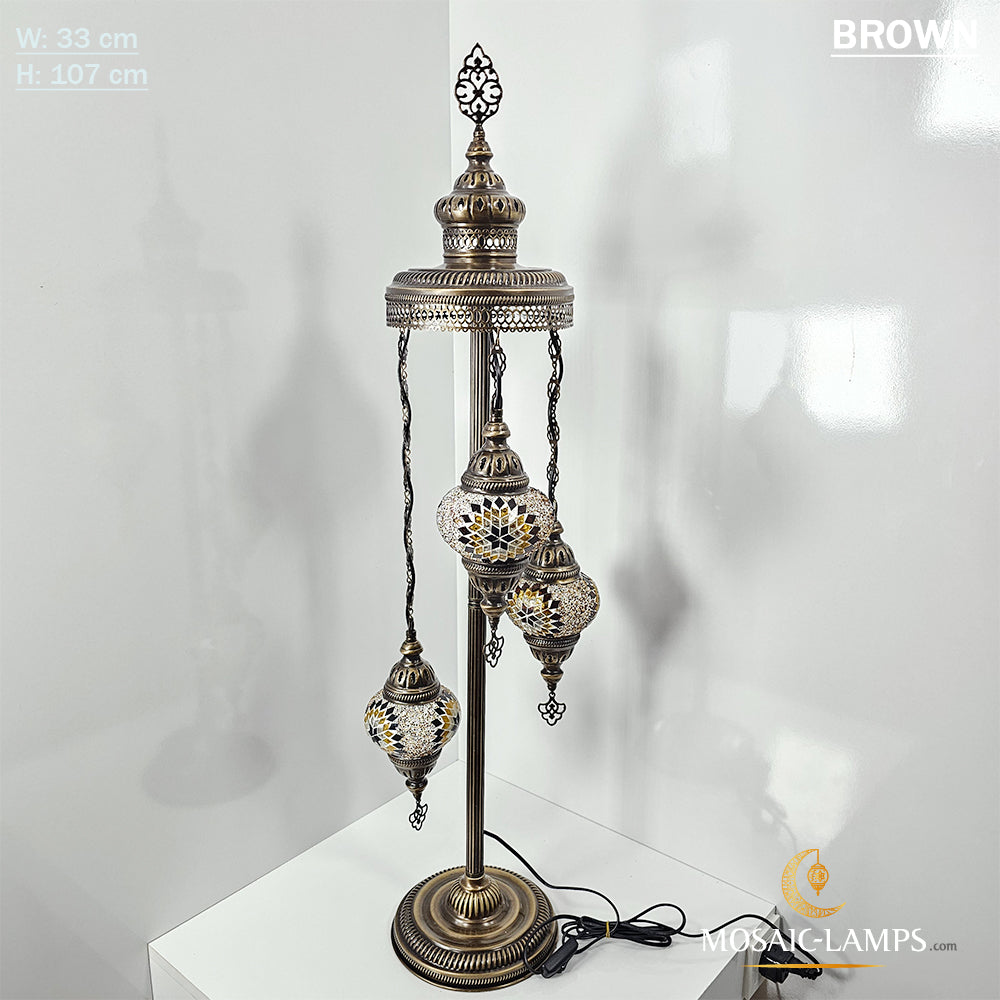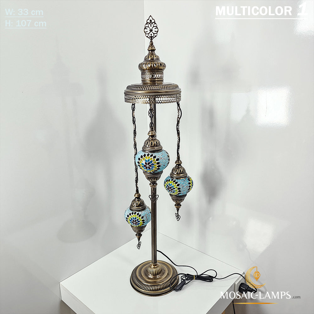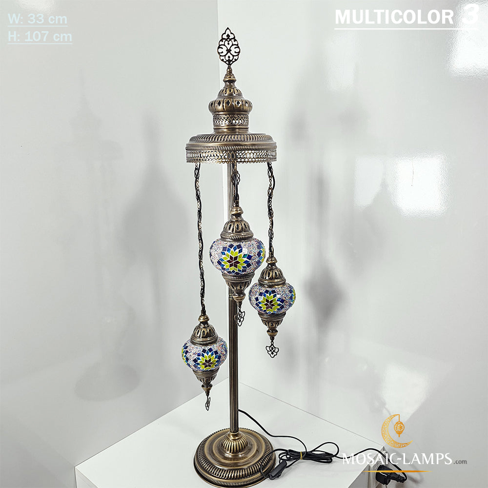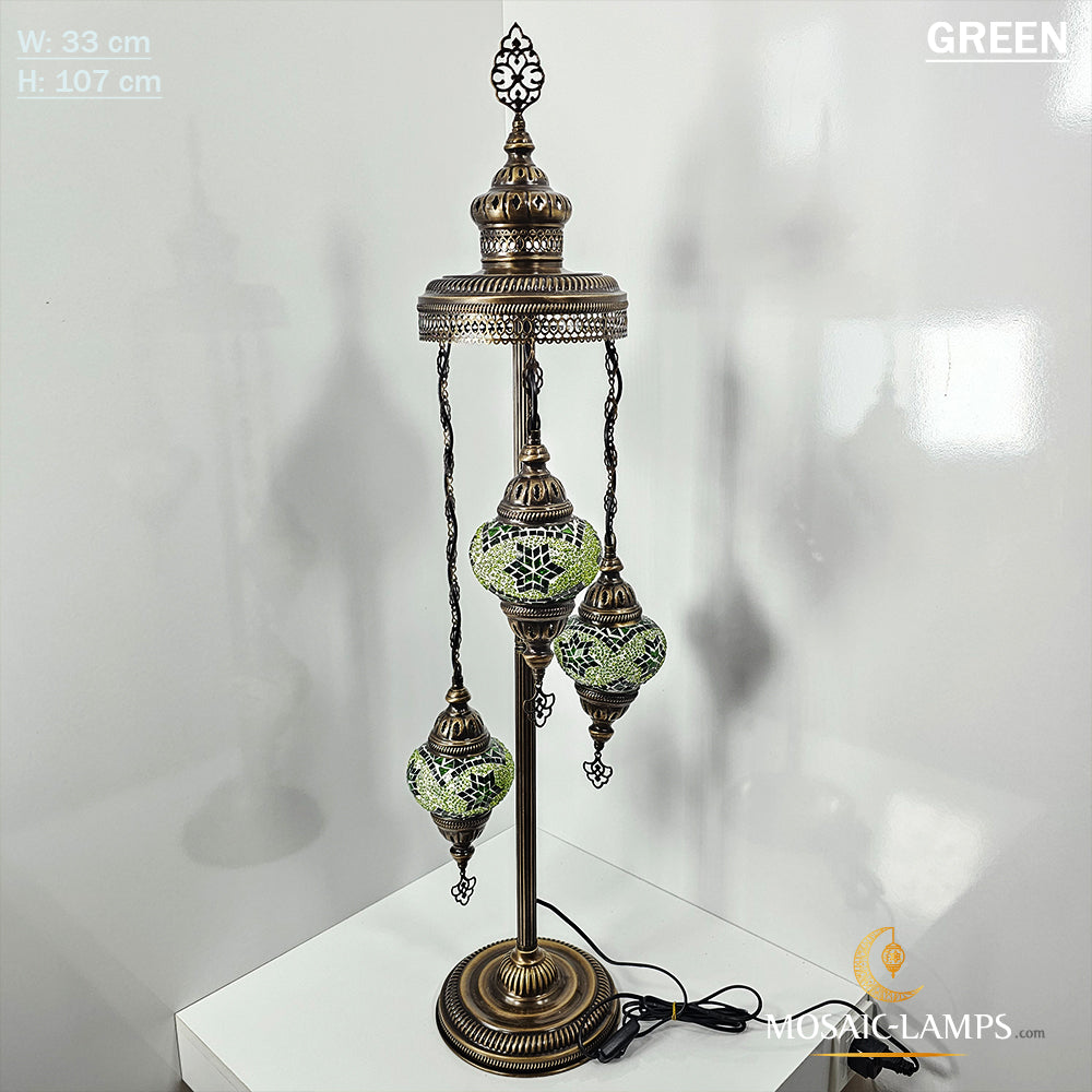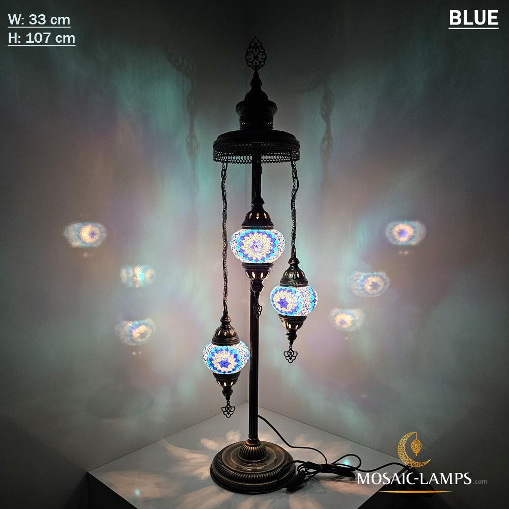 Set Of 3 Globe Floor Lamps Medium Turkish Mosaic Bedside, Moroccan, Ottoman Traditional Home, Office, Restaurant, Bar, Cafe Corner Lights.
