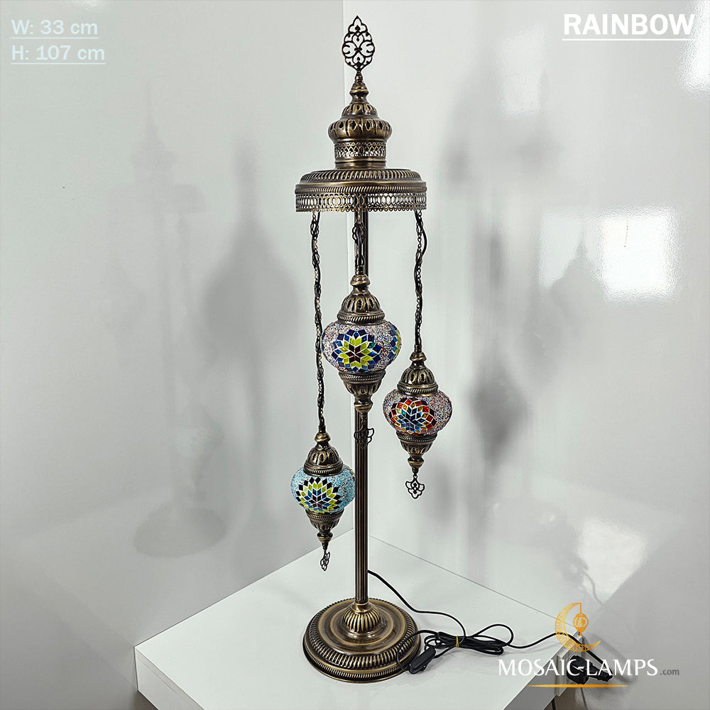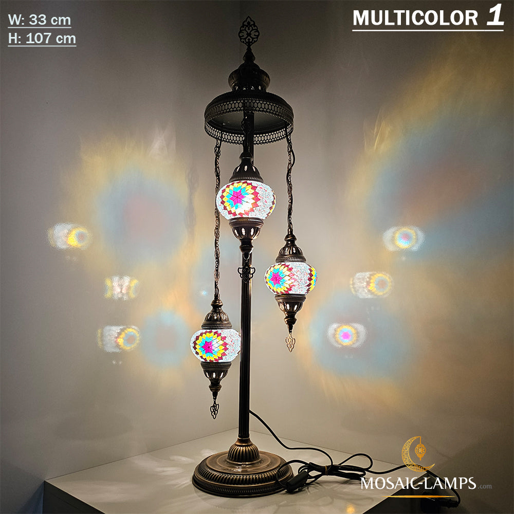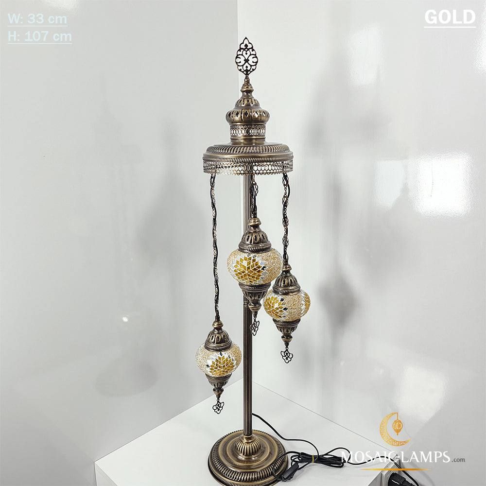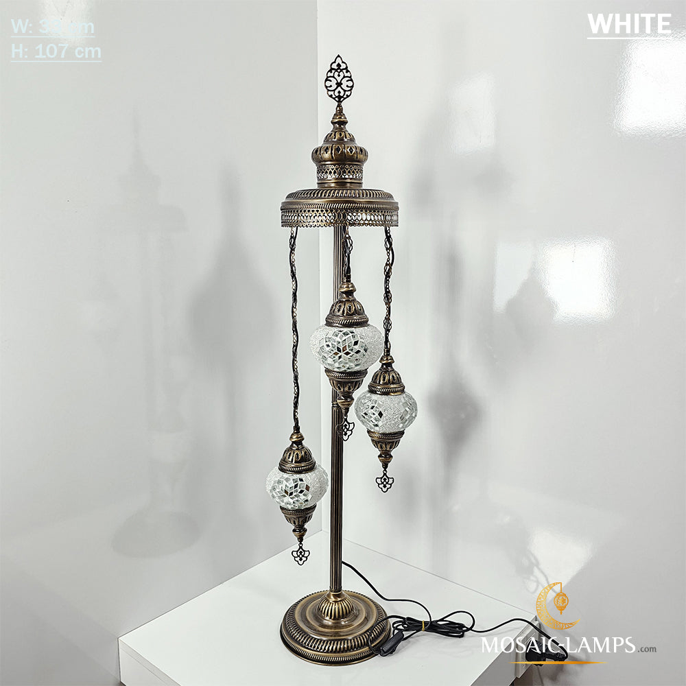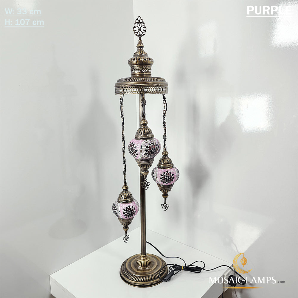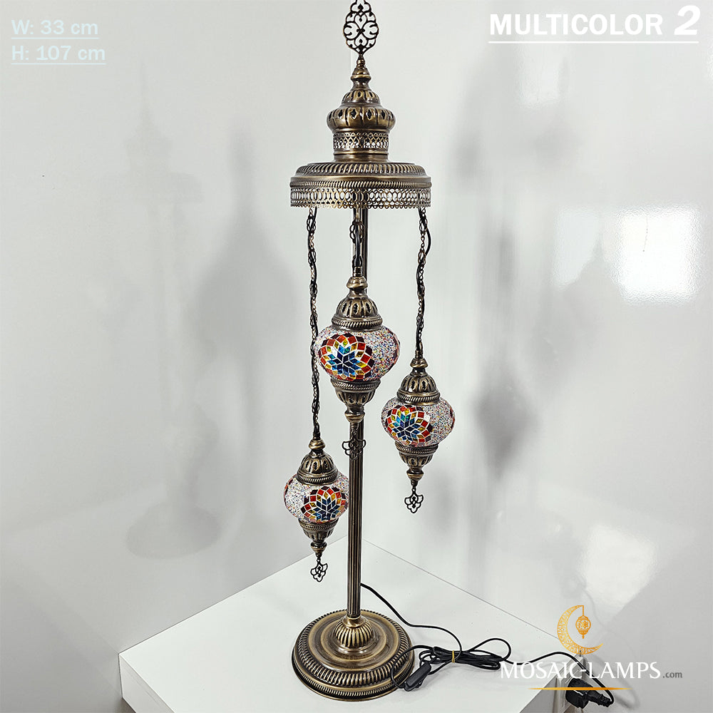 Set Of 3 Globe Floor Lamps Medium Turkish Mosaic Bedside, Moroccan, Ottoman Traditional Home, Office, Restaurant, Bar, Cafe Corner Lights.