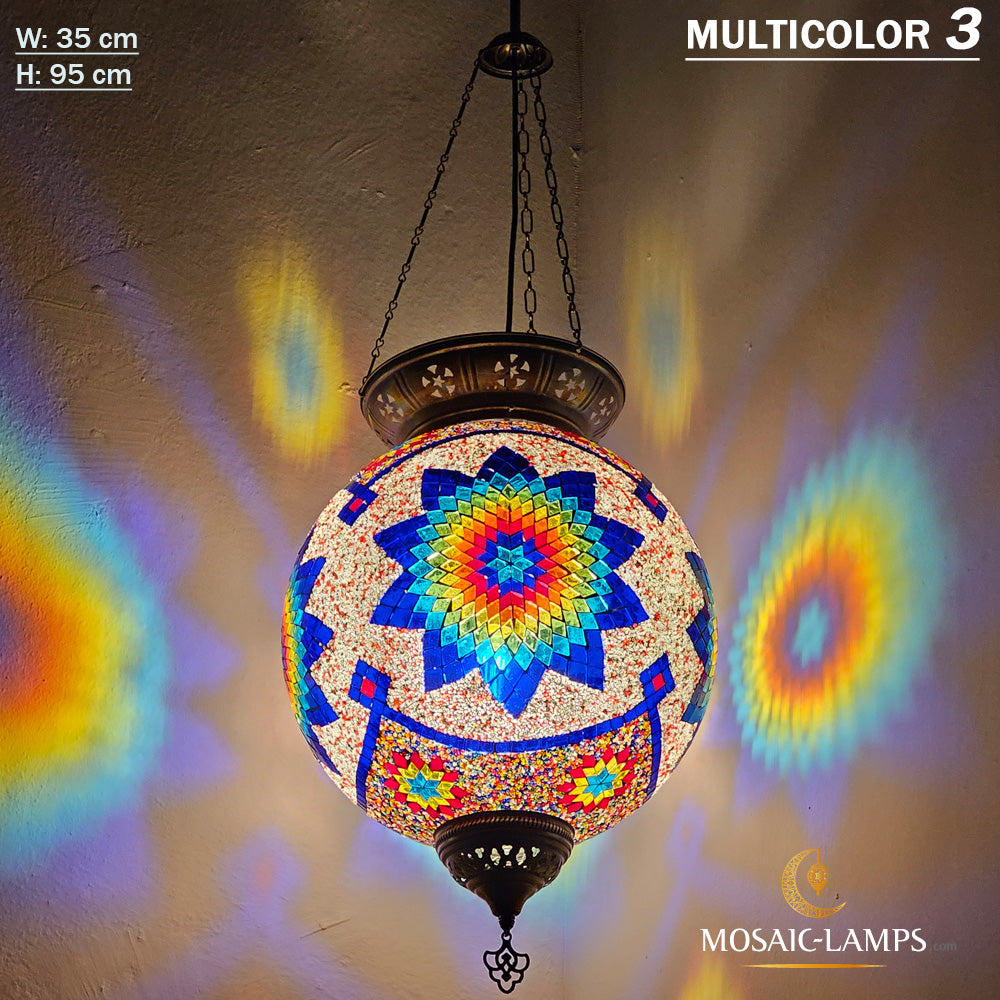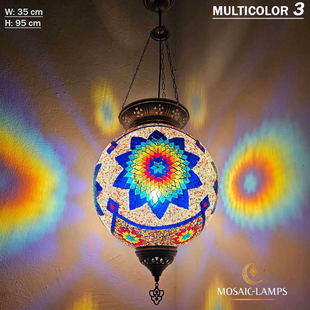 35 cm Three Chains Turkish Mosaic Pendant Lamp, Moroccan Handmade Ceiling Lamps, Colorful Lights Restaurant, Bedroom, Living Room.