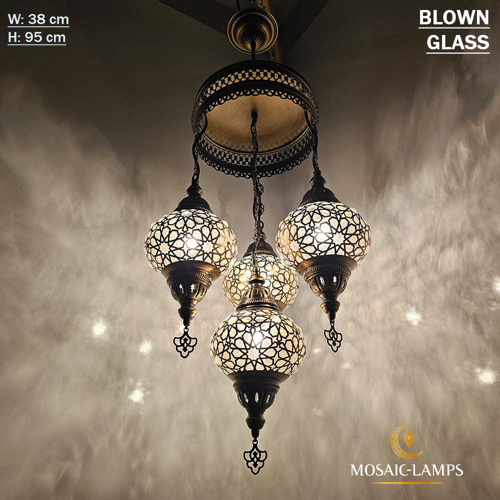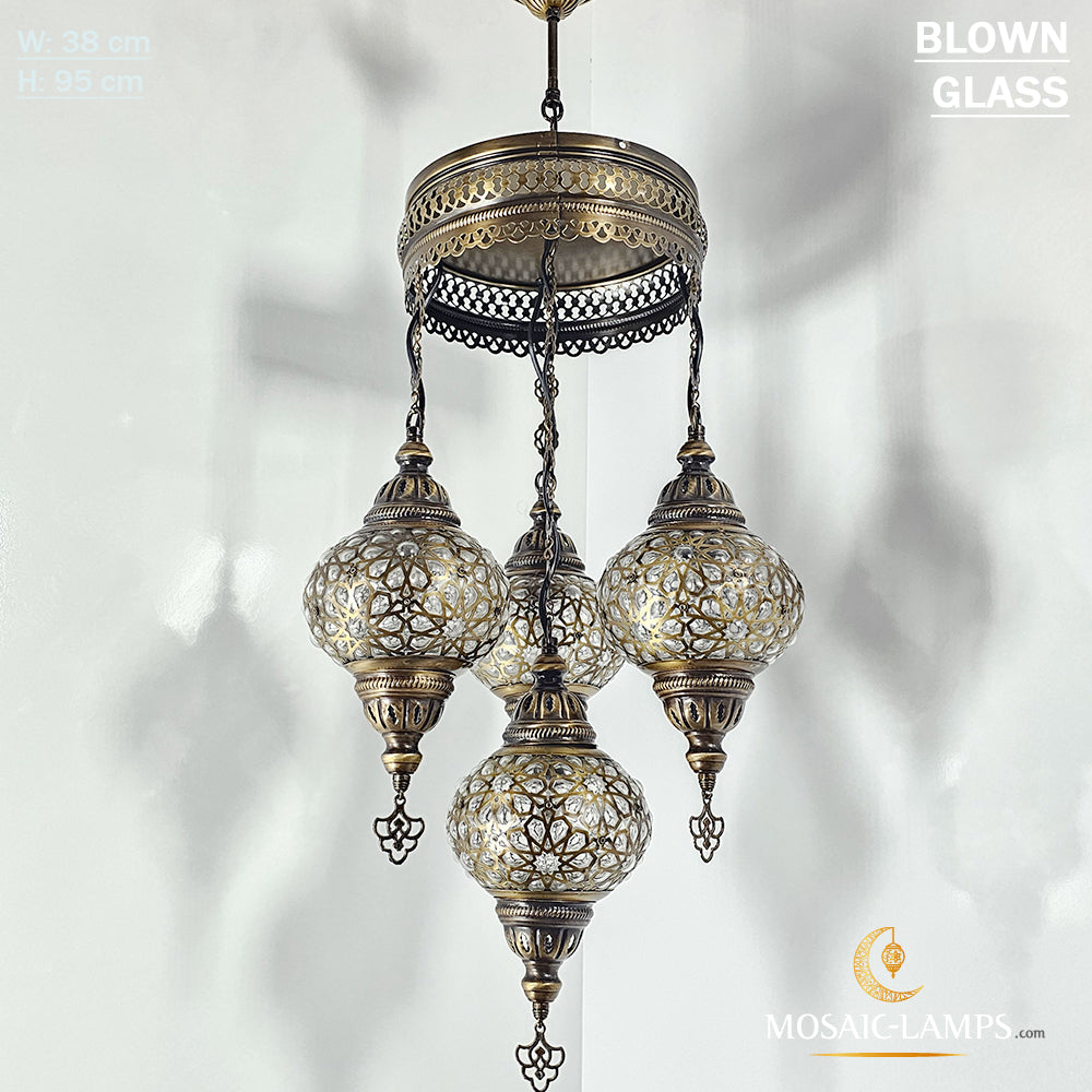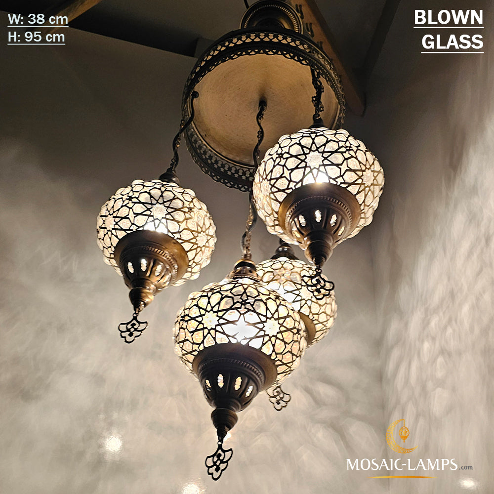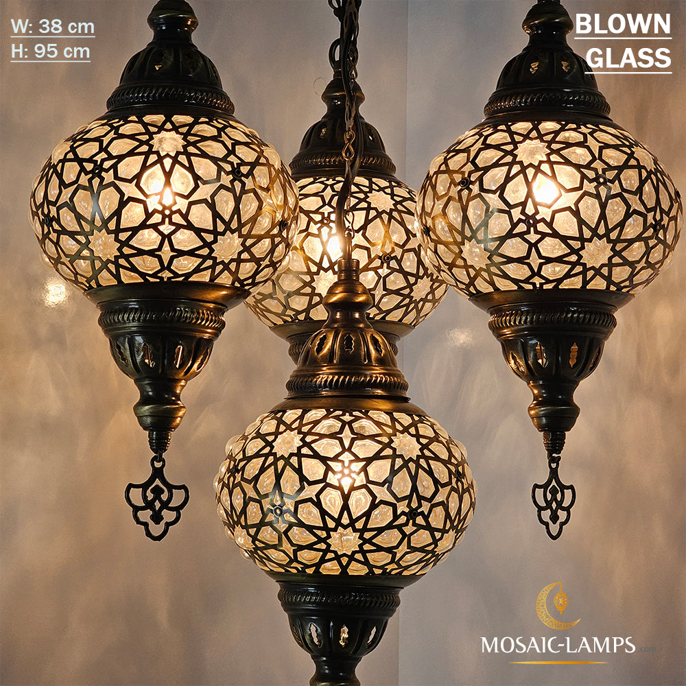 4 Blown Glass Moroccan Chandeliers, Laser Globe Ottoman Lamps, Bronze Globe Lights, Seljuk Motif Clear Lamp, Restaurant, Living Room, Cafe