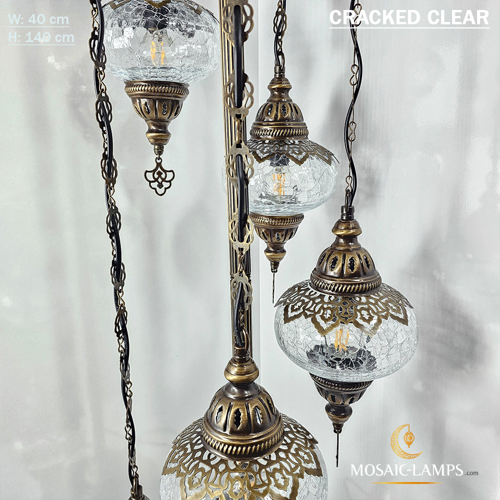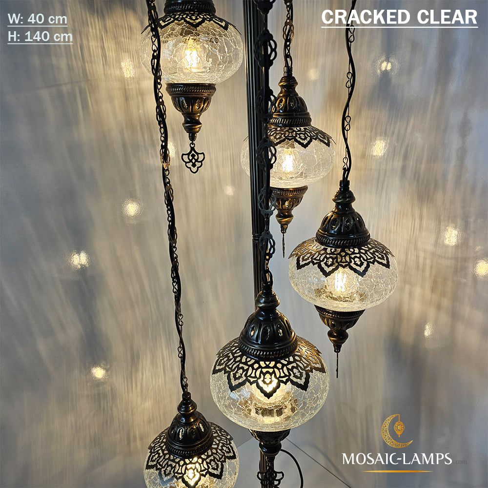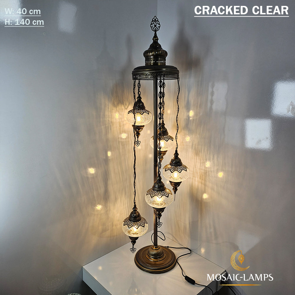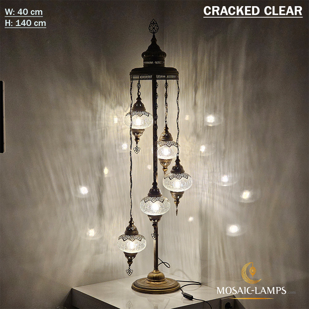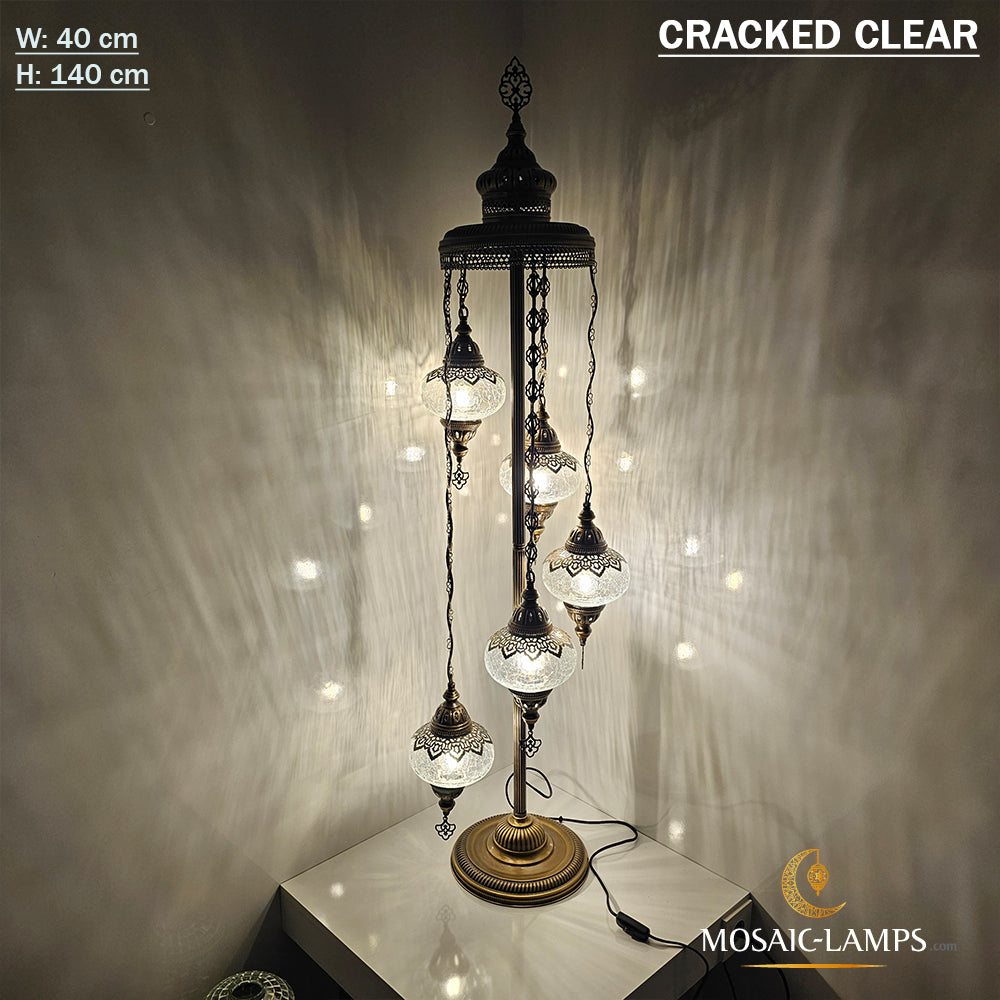 5 Cracked Clear Globe Turkish Floor Lamps, Living Room Bedside Floor Lights, Bedroom Floor Lighting, Handmade Mosaic Ball Floor Lamp.