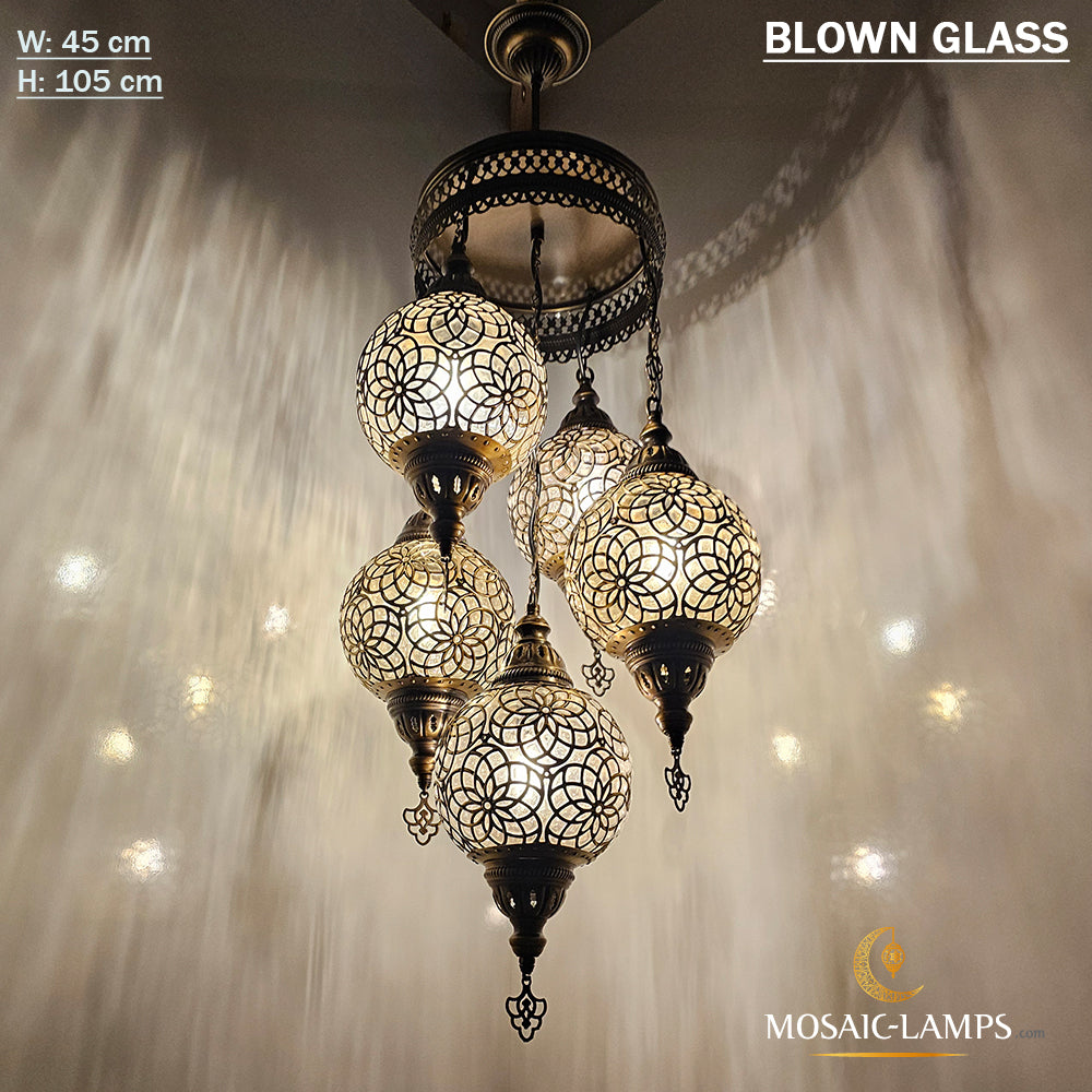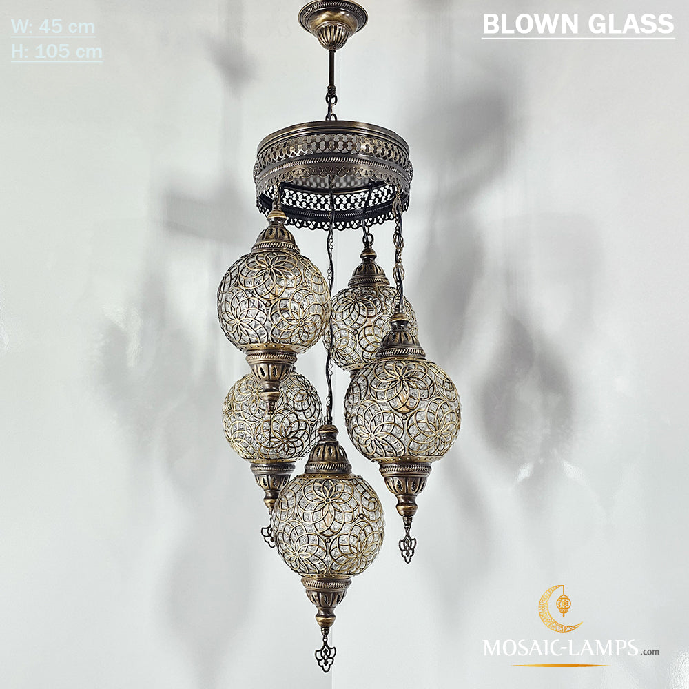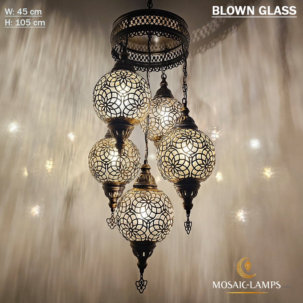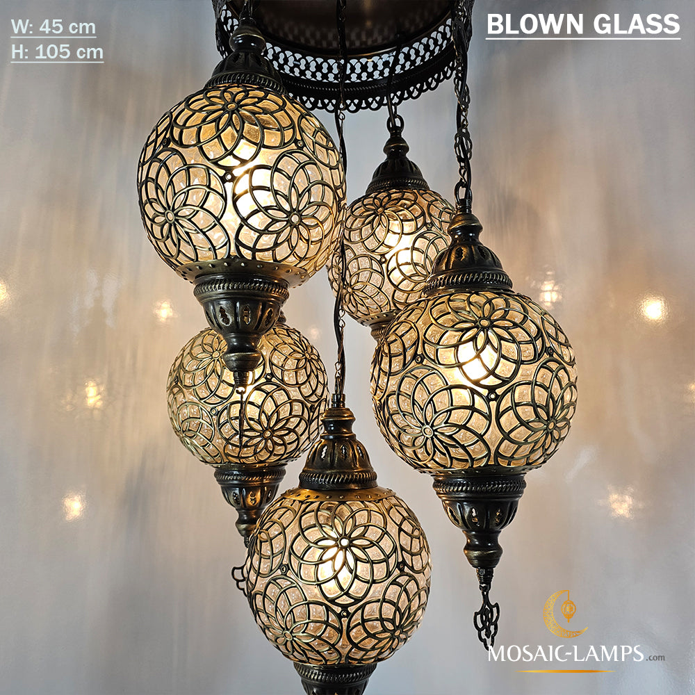 5 Globe Large Blown Glass Chandelier, Ottoman Lamps, Moroccan Style Living Room Lamps, Blown Glass Lights, Restaurant Mixed Chandeliers.