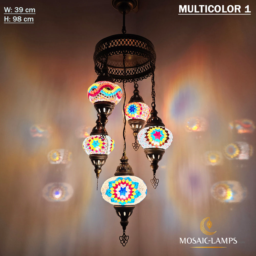 5 Mixed Globe Chandelier, Medium Ball Turkish Mosaic Chandelier Sets, Five Globe Moroccan Hanging Mosaic Light, Restaturant Light, Cafe Lamp