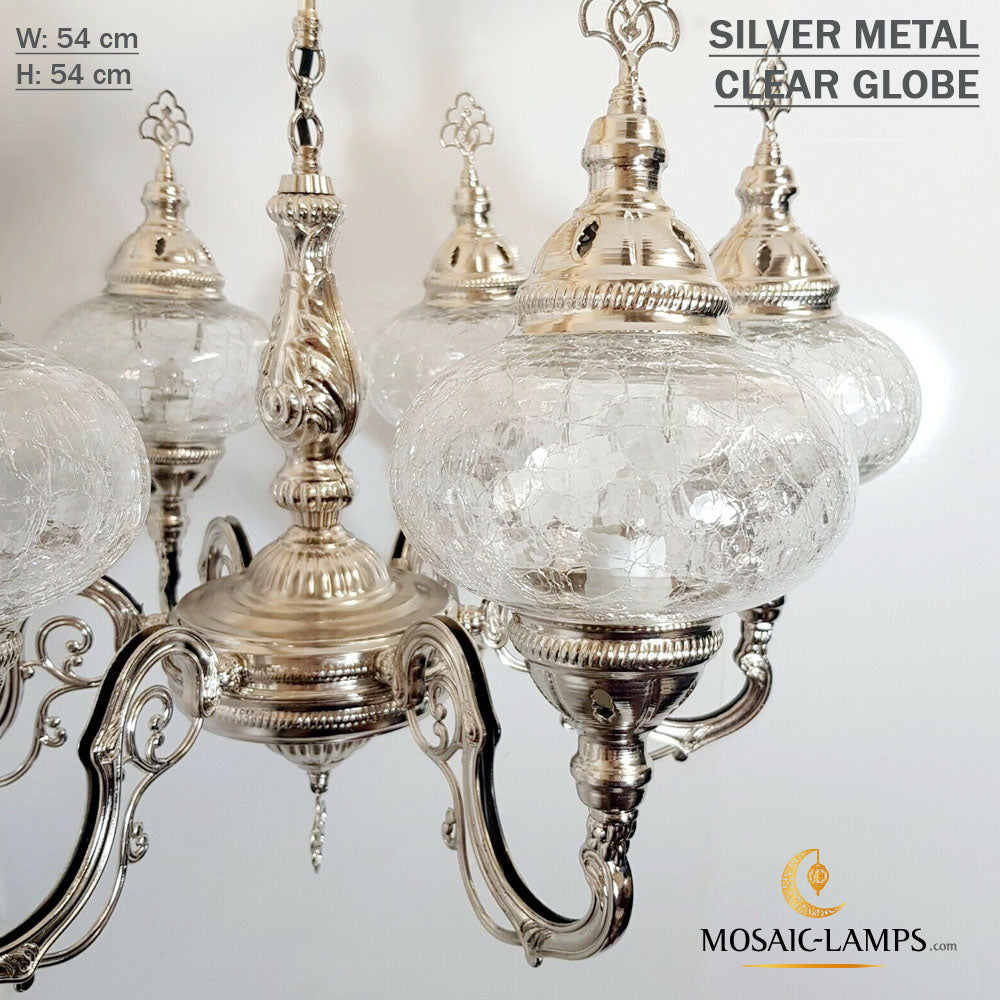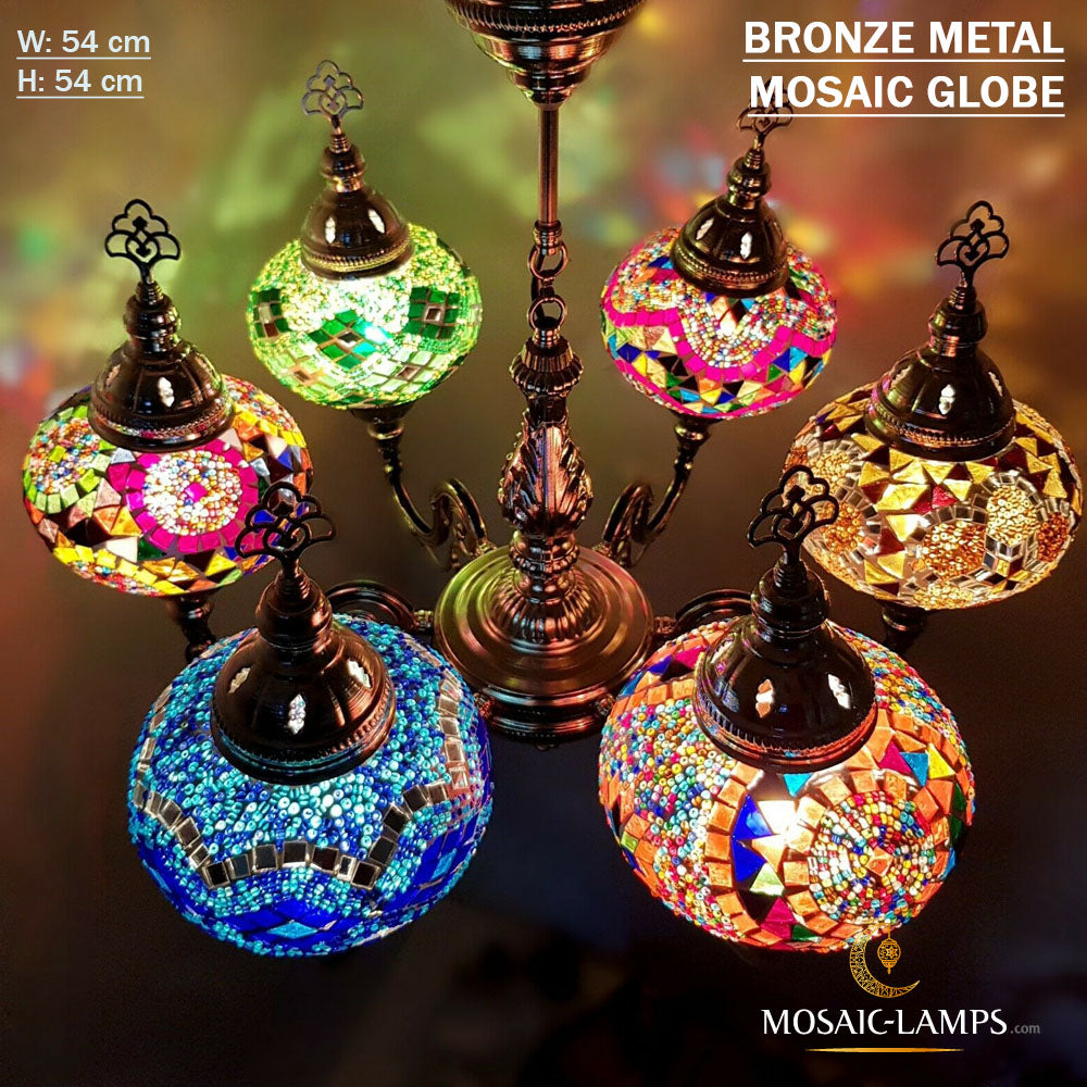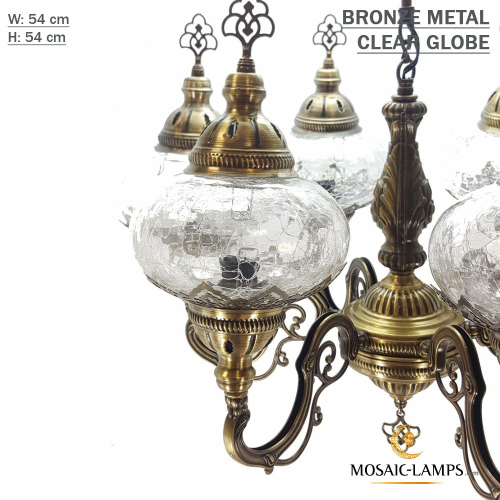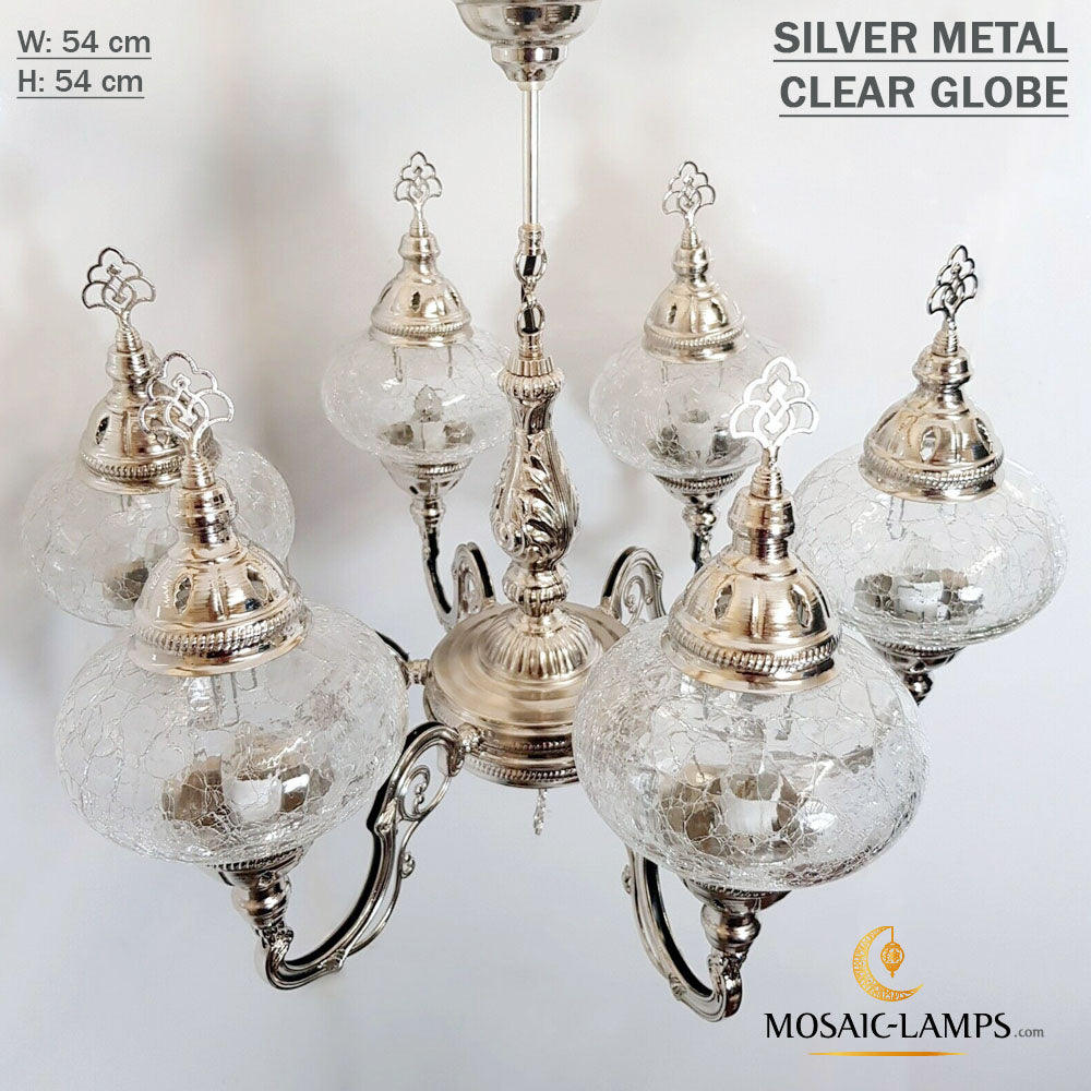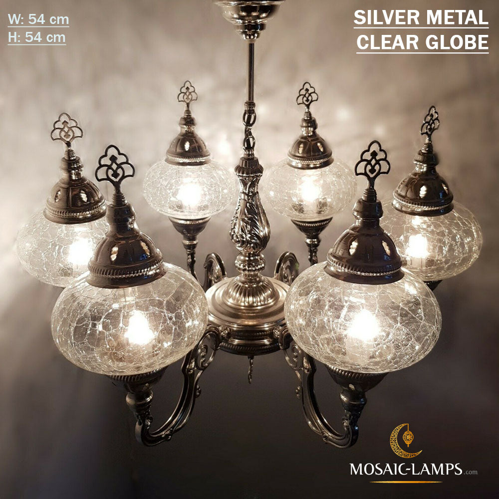 6 Arms Turkish Ceiling Lamp, Six Globe Ottoman Chandelier, Bronze& Silver Metal, Living Room, Restaurant, Cafe, Hotel, Villa, Bedroom Lights.