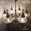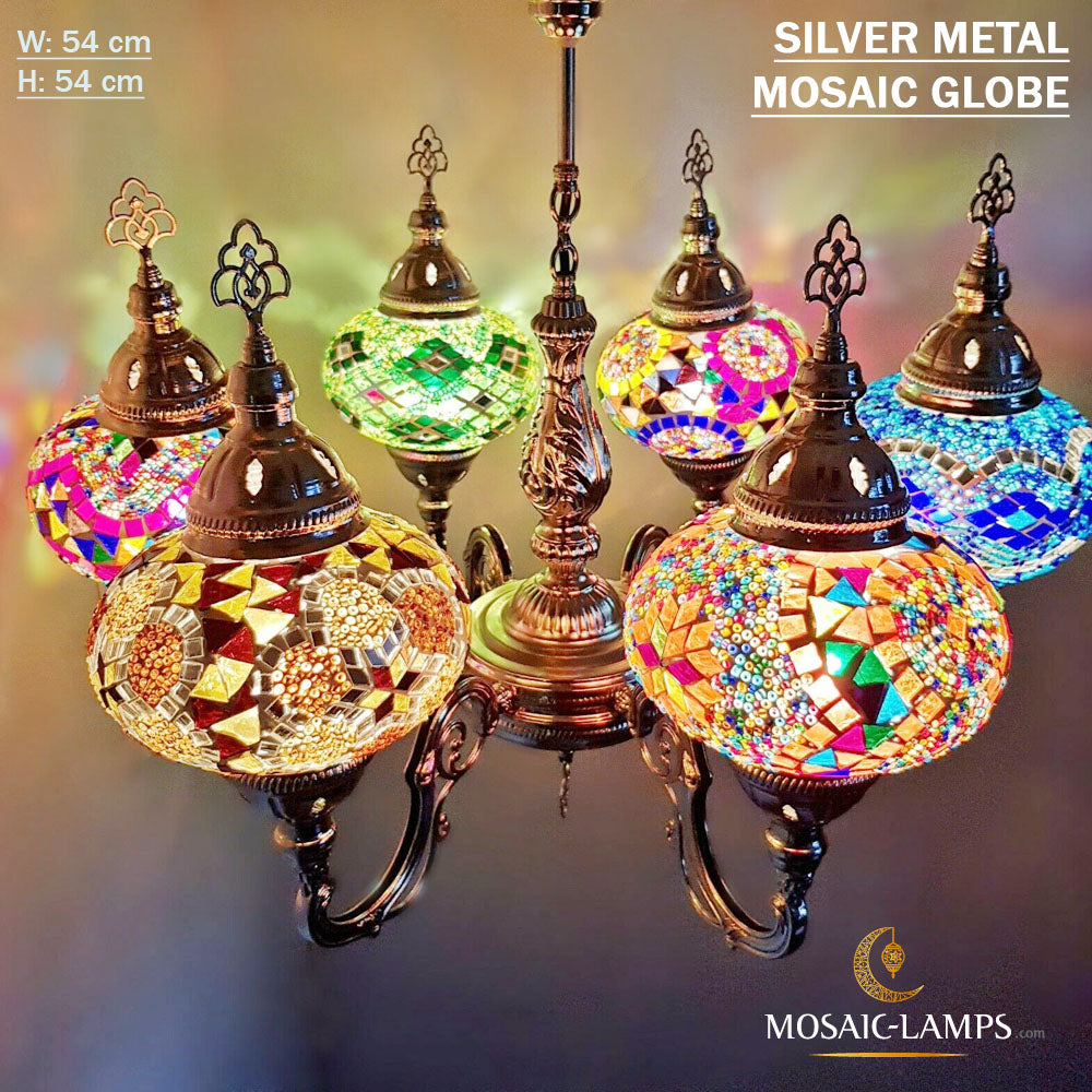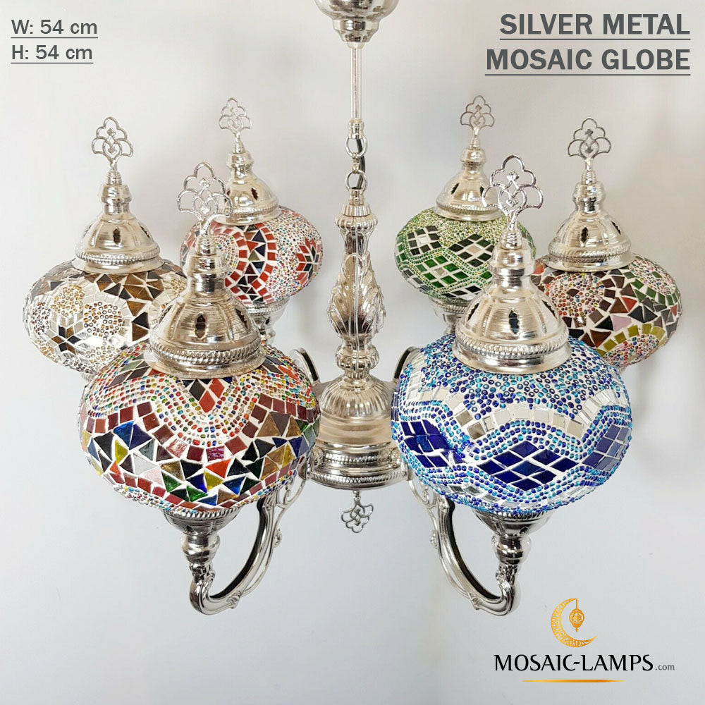 6 Arms Turkish Ceiling Lamp, Six Globe Ottoman Chandelier, Bronze& Silver Metal, Living Room, Restaurant, Cafe, Hotel, Villa, Bedroom Lights