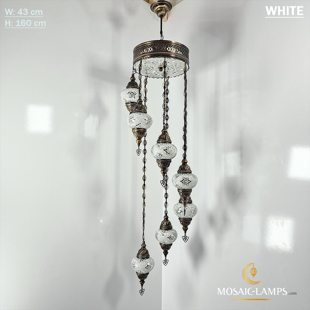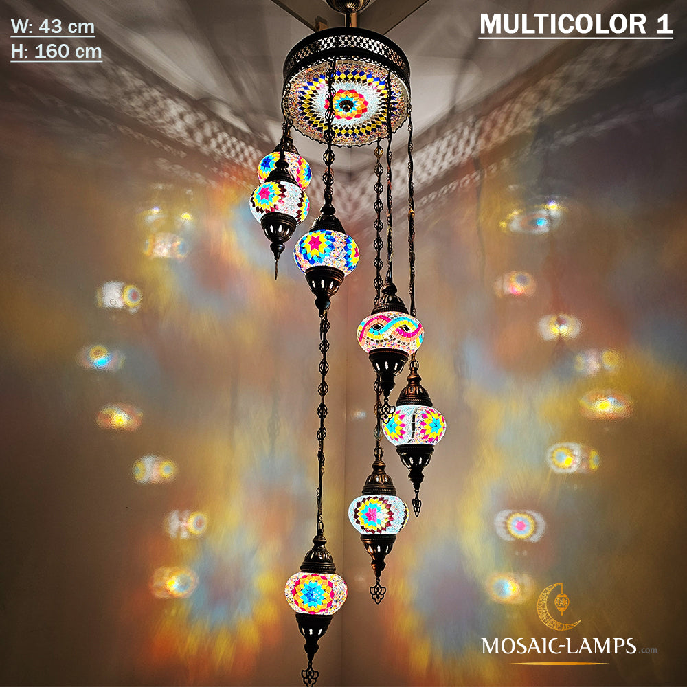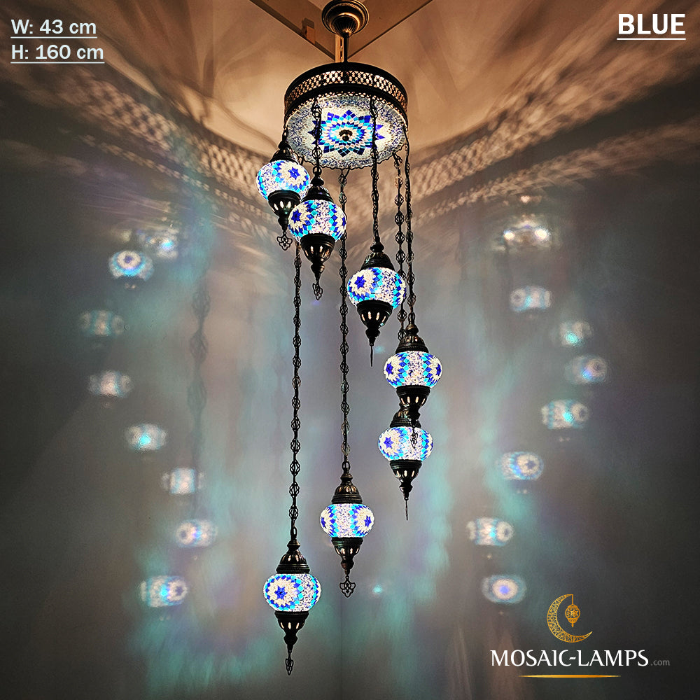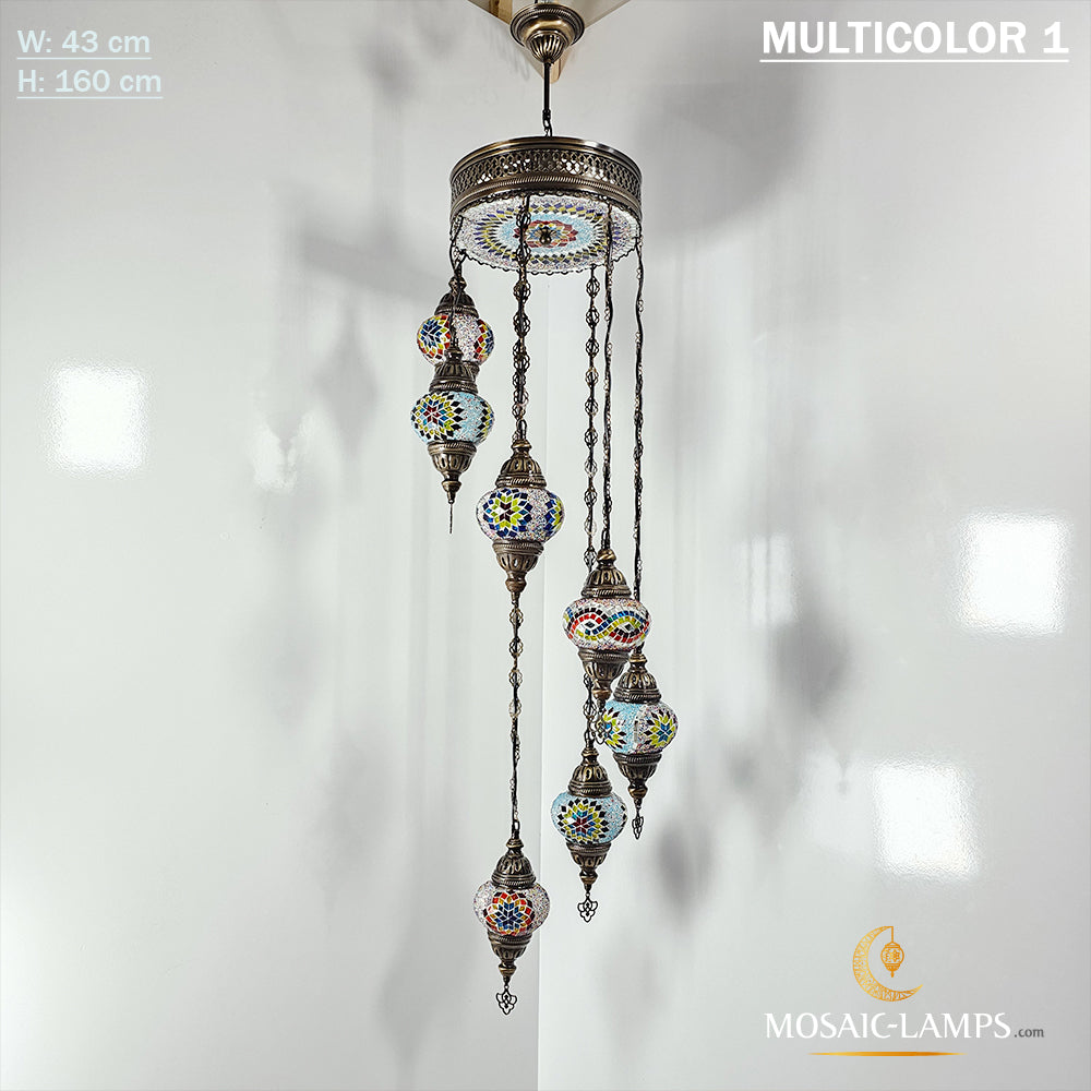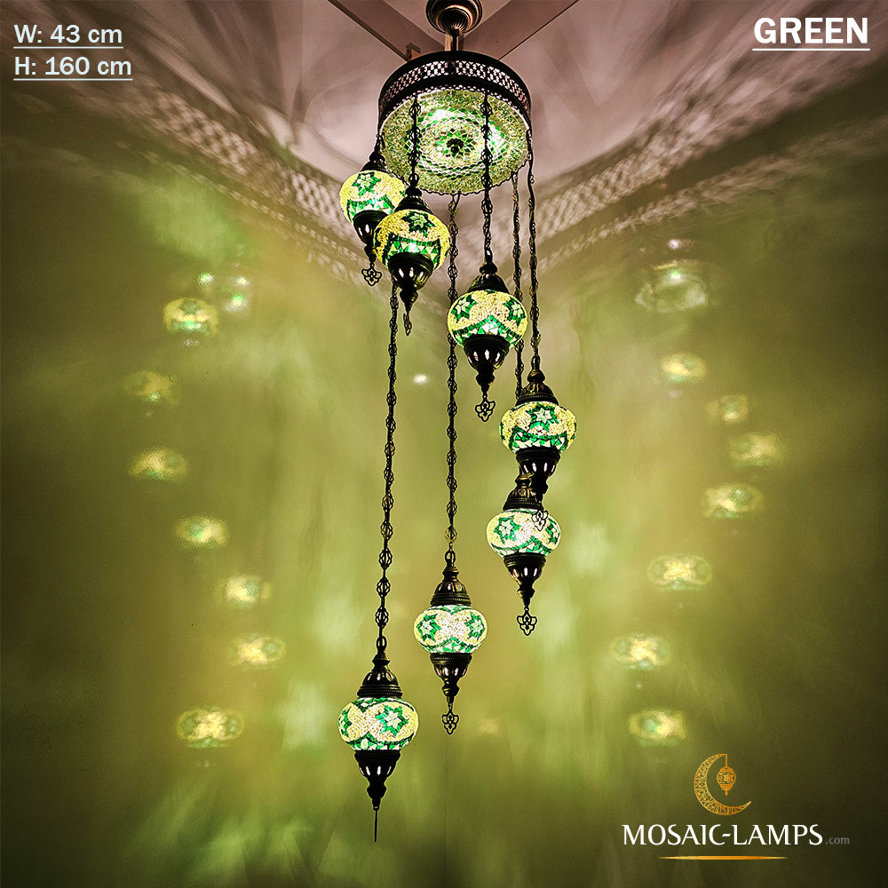 7+1 globe circle spiral chandelier sets, handmade Turkish mosaic lights, living room moroccan mosaic lamps, wagon wheel hanging lamps.