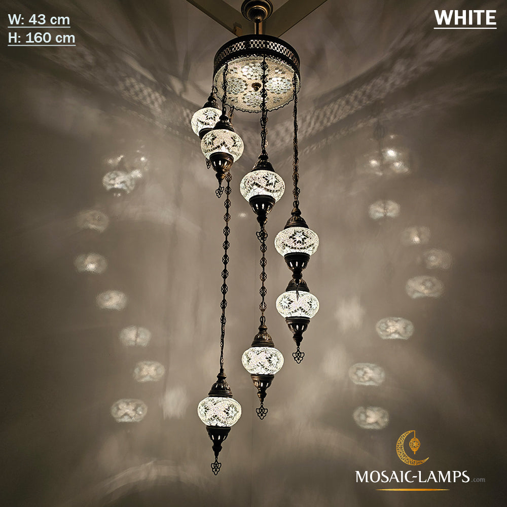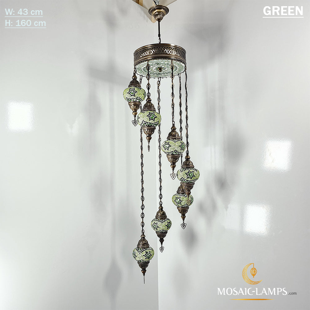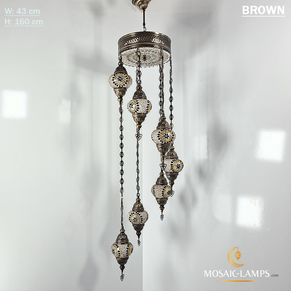 7+1 Globe Circle Spiral Chandelier Sets, Handmade Turkish Mosaic Lights, Living Room Moroccan Mosaic Lamps, Wagon Wheel Hanging Lamps