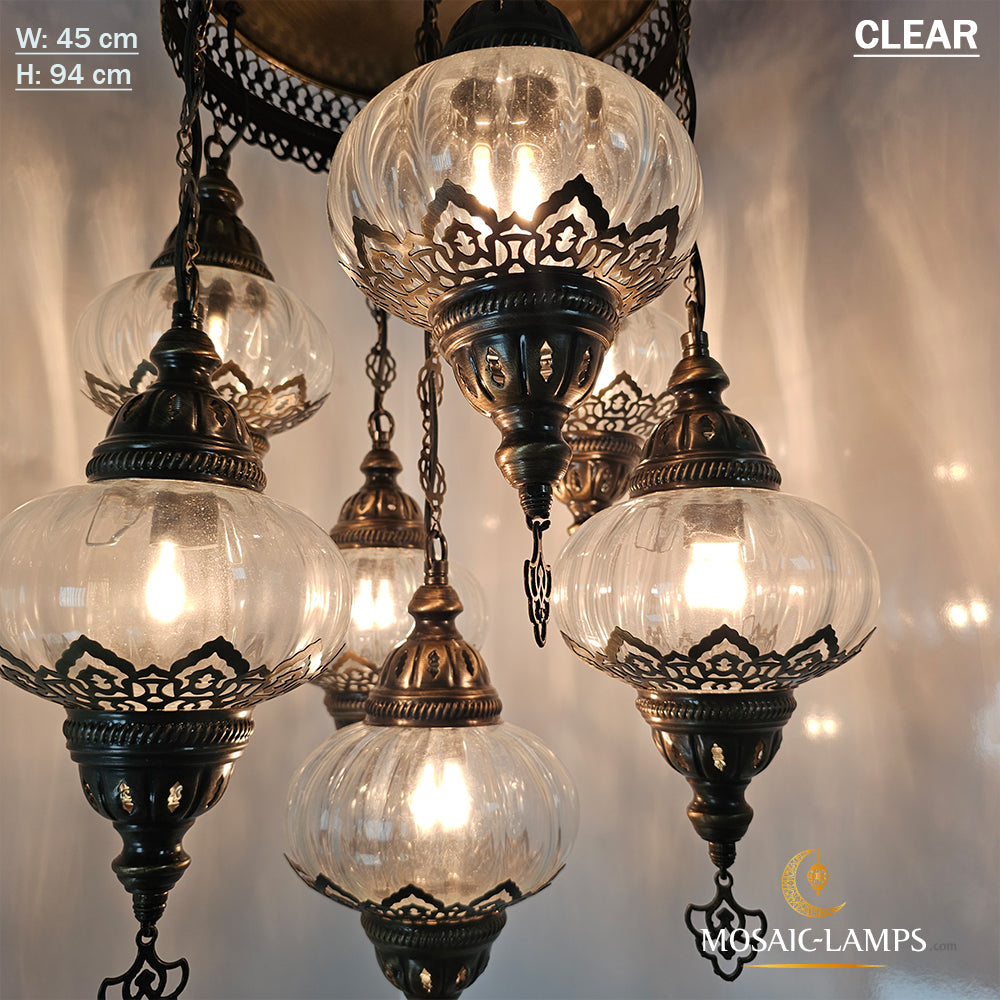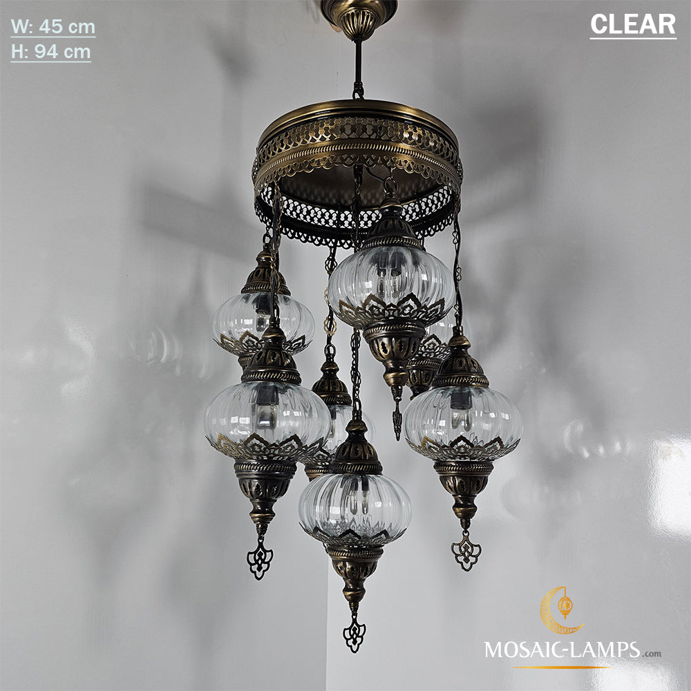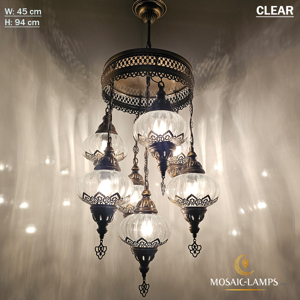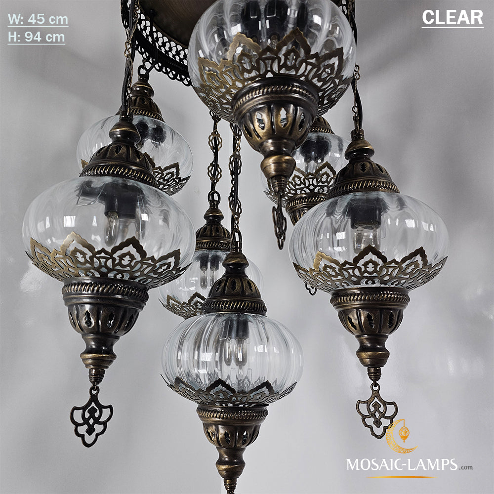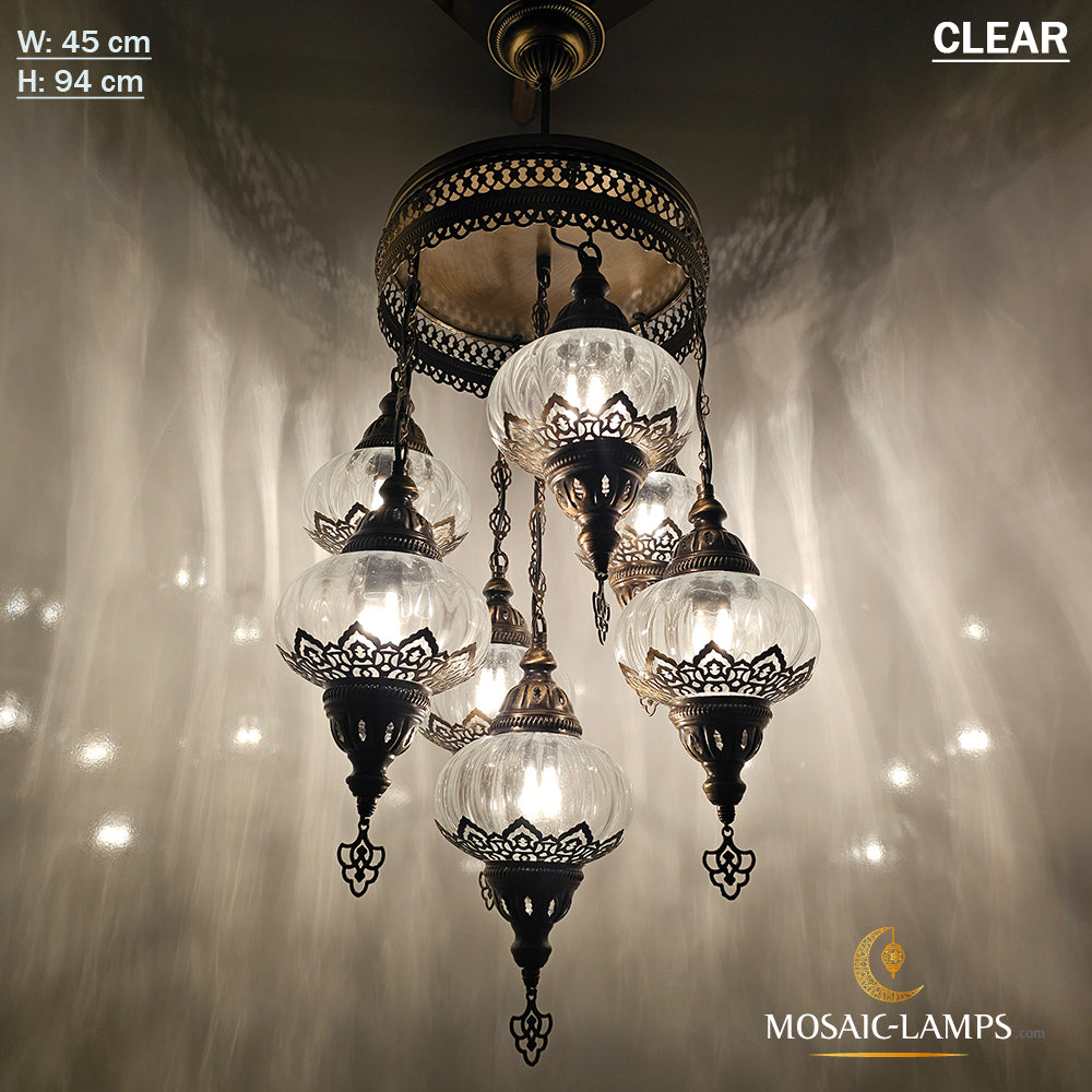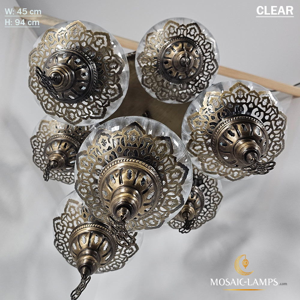 7 Clear Optical Ball Chandelier, Mixed Ottoman Globe Lamps, Handmade Moroccan Clear Lights, Bedroom, Cafe, Restaurant, Bar, Living Room.