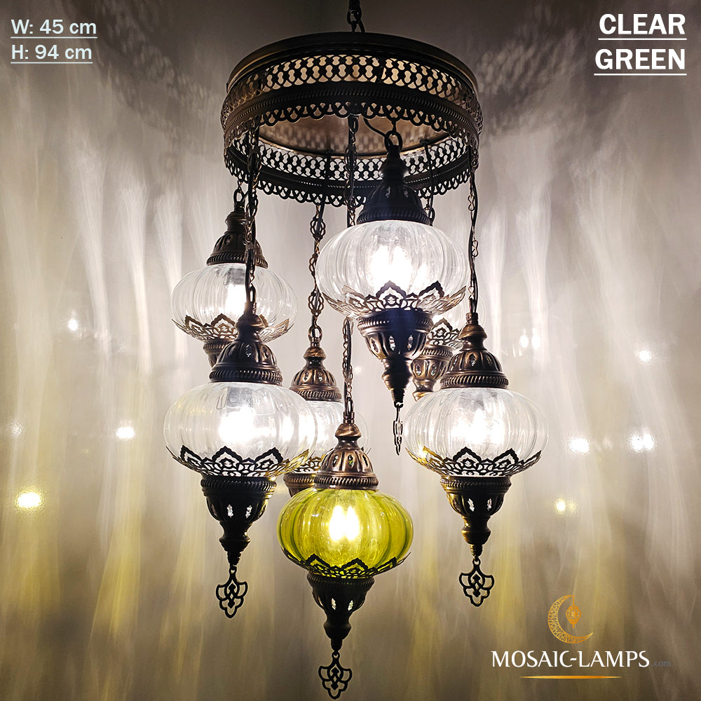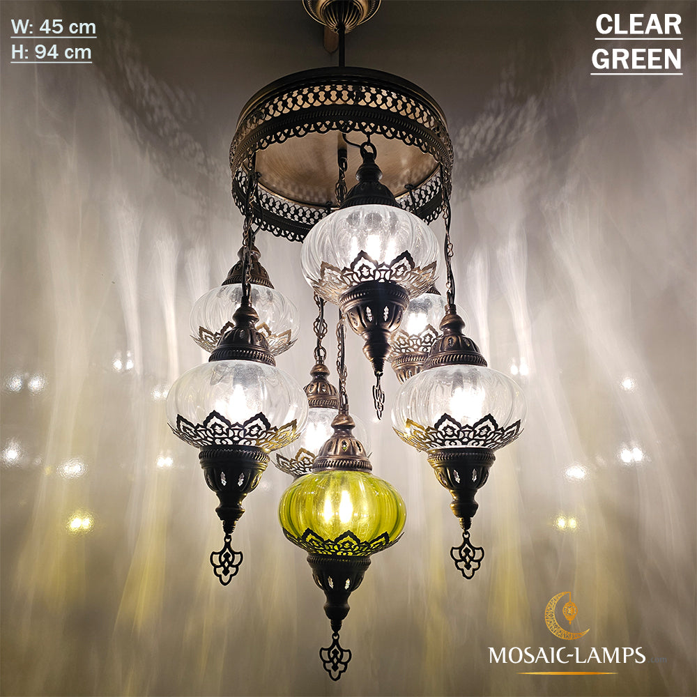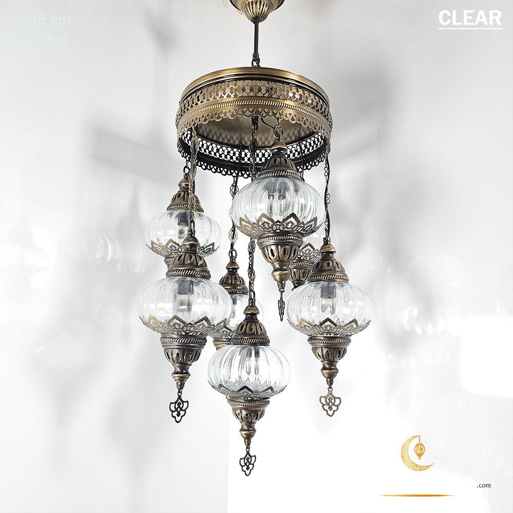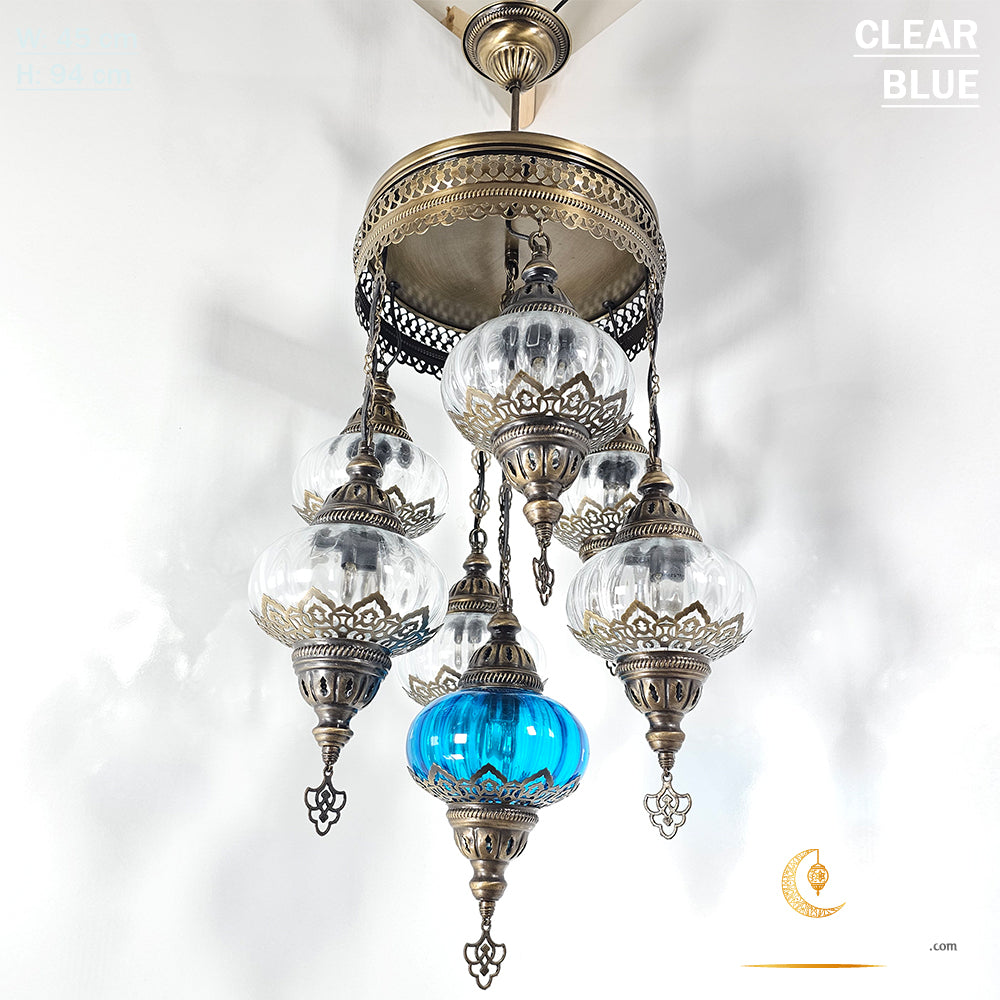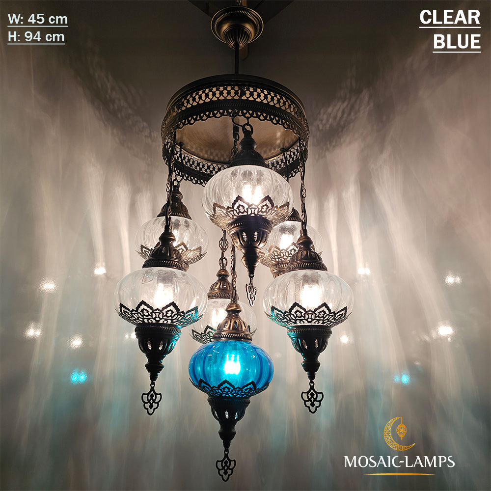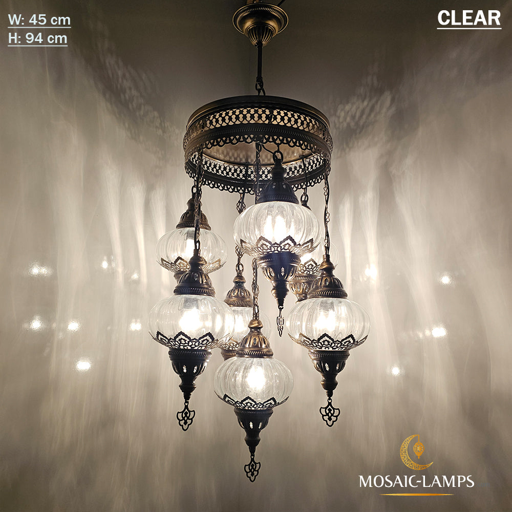 7 Clear Optical Ball Chandelier, Mixed Ottoman Globe Lamps, Handmade Moroccan Clear Lights, Bedroom, Cafe, Restaurant, Bar, Living Room.
