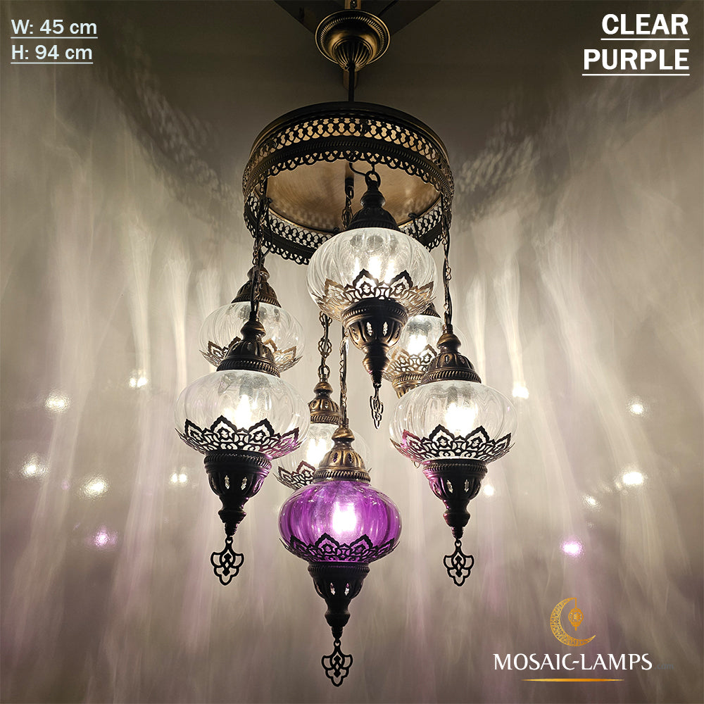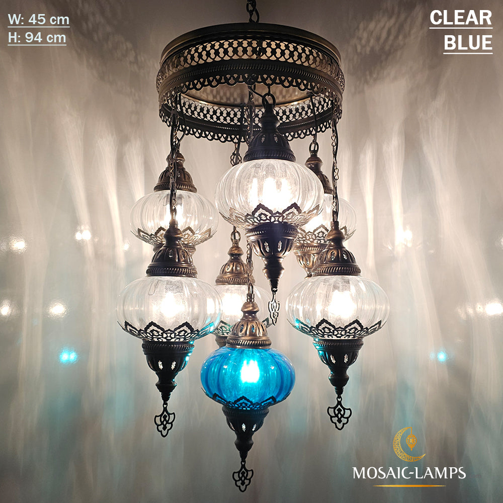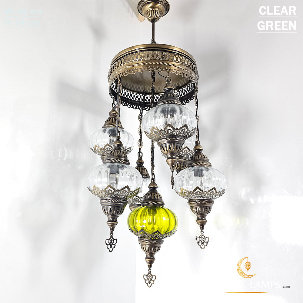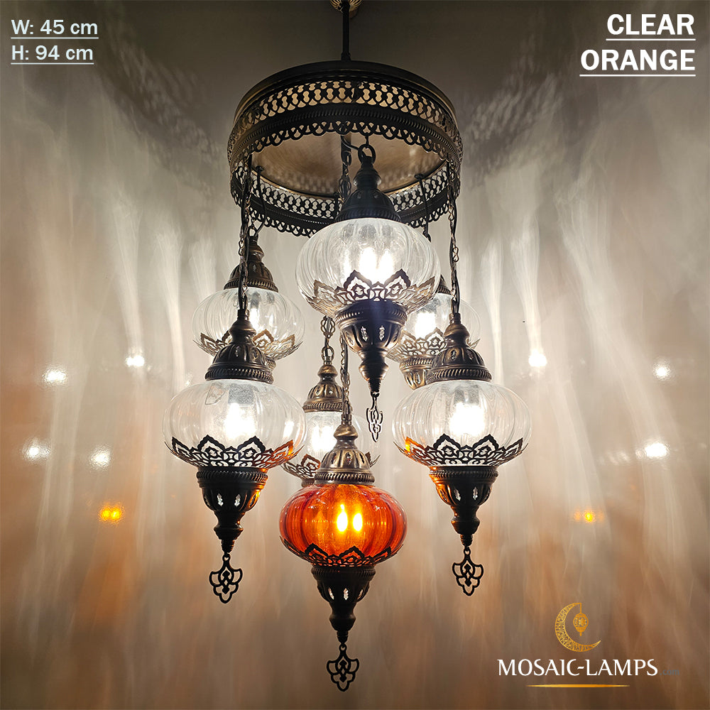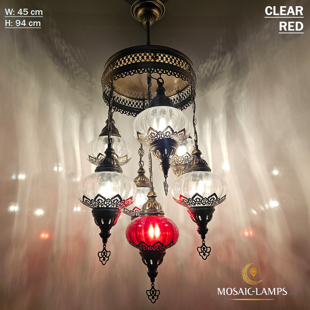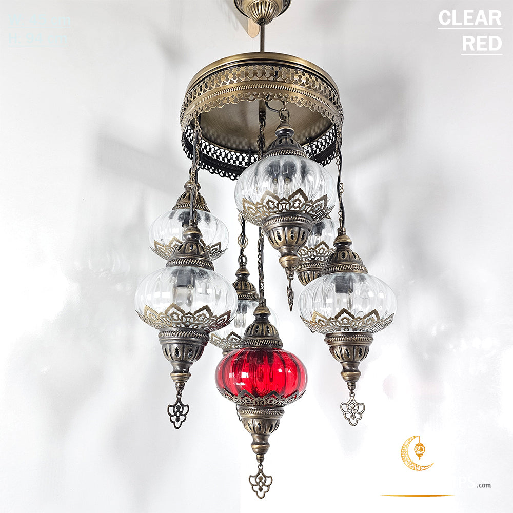 7 Clear Optical Ball Chandelier, Mixed Ottoman Globe Lamps, Handmade Moroccan Clear Lights, Bedroom, Cafe, Restaurant, Bar, Living Room.