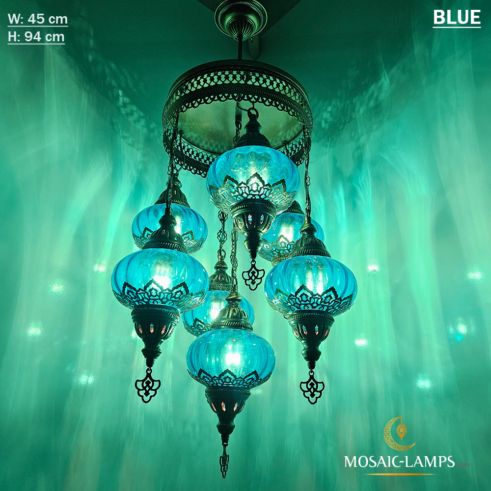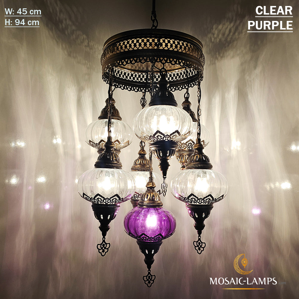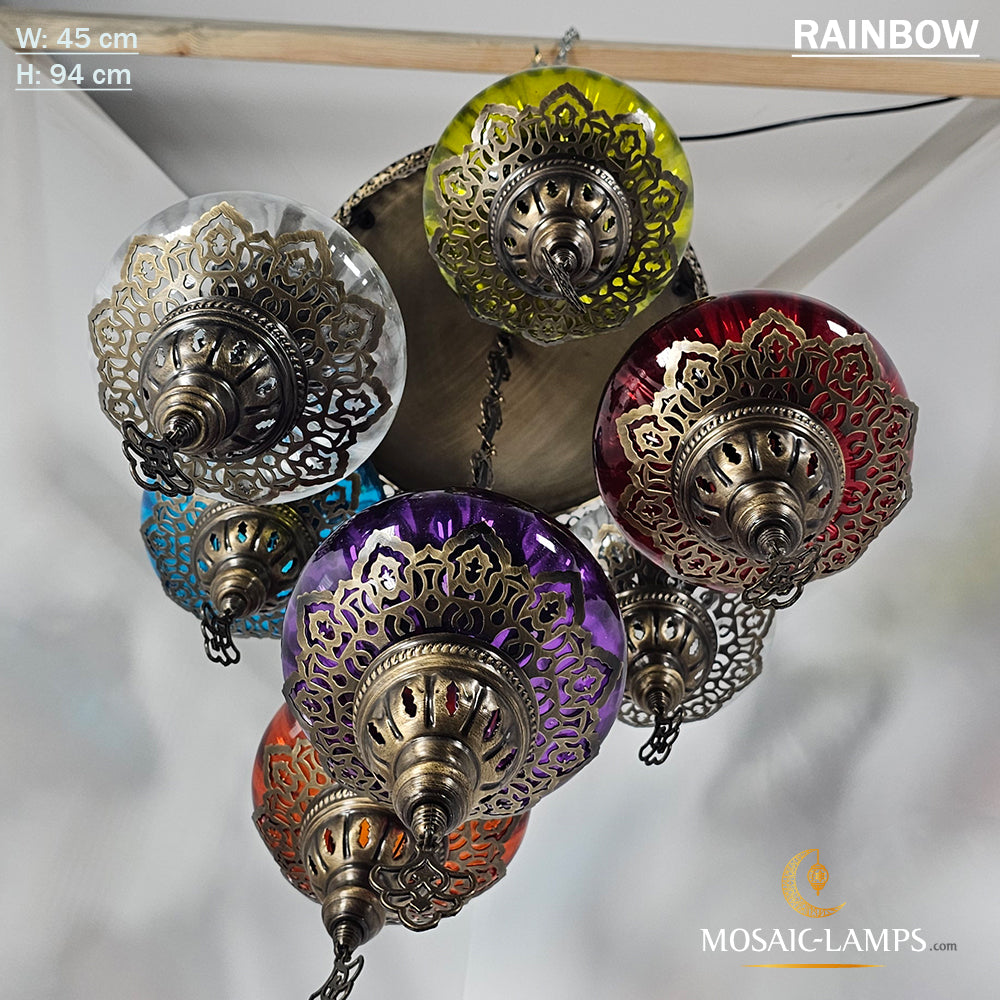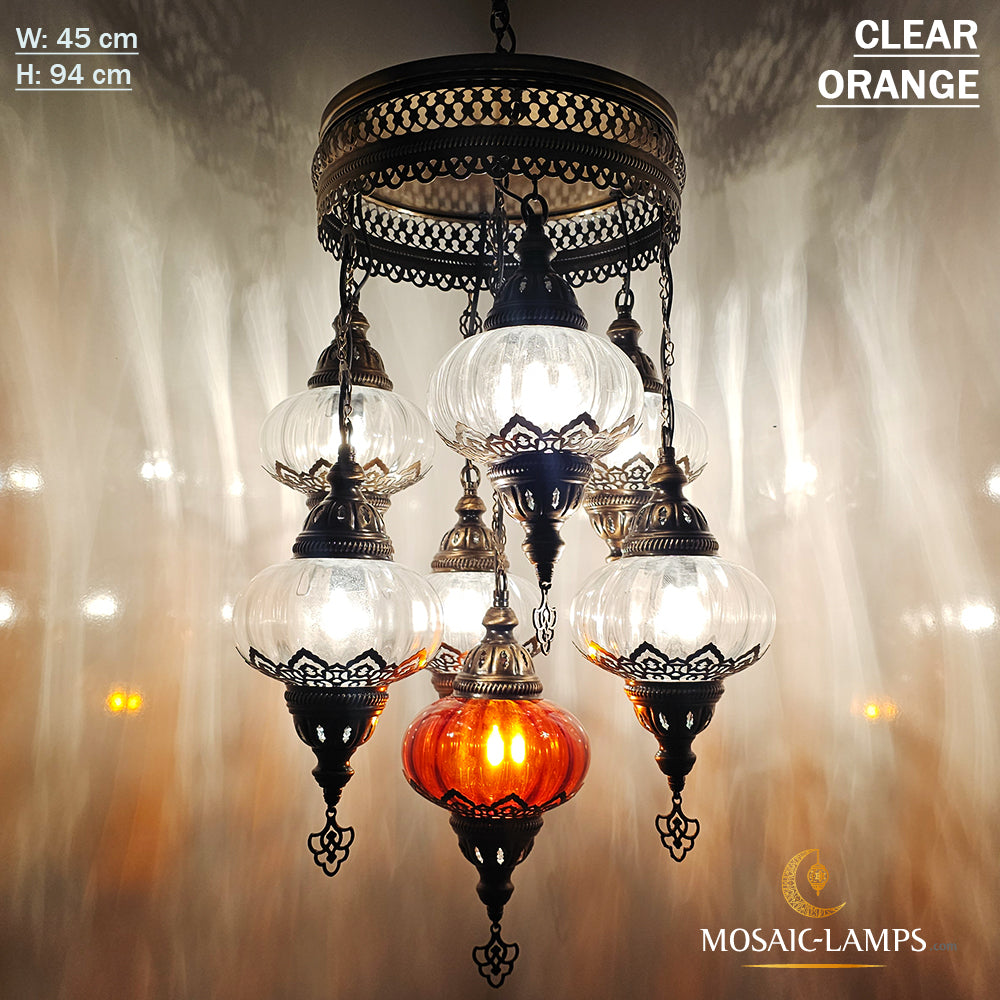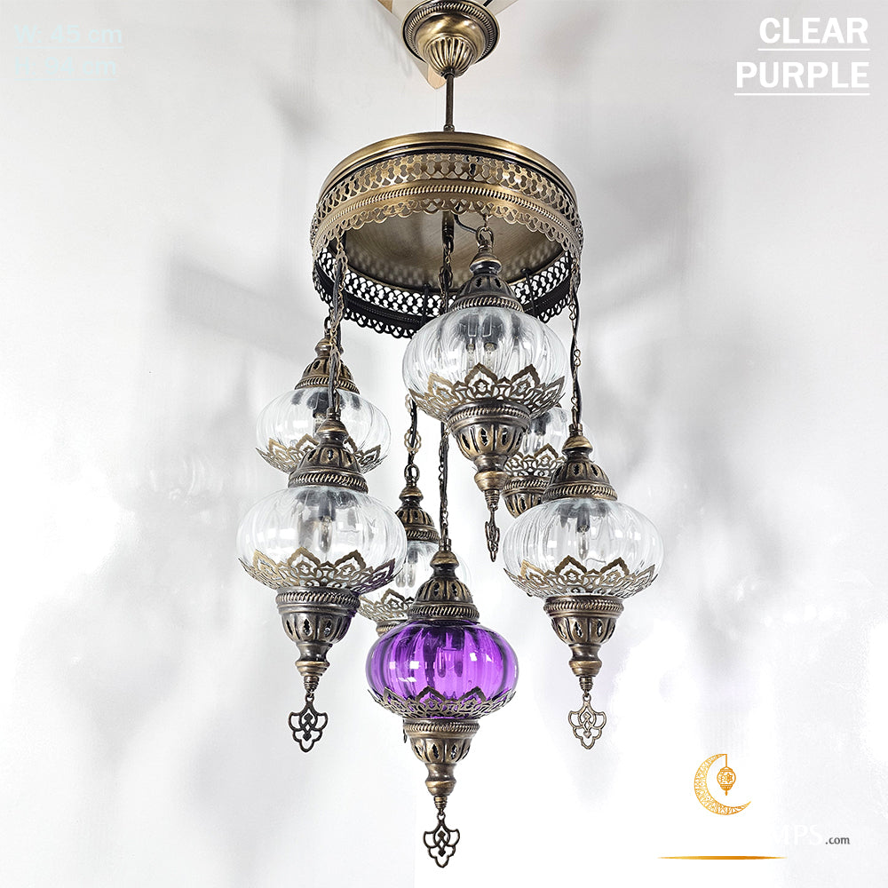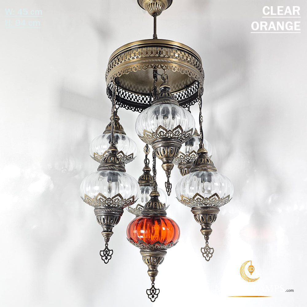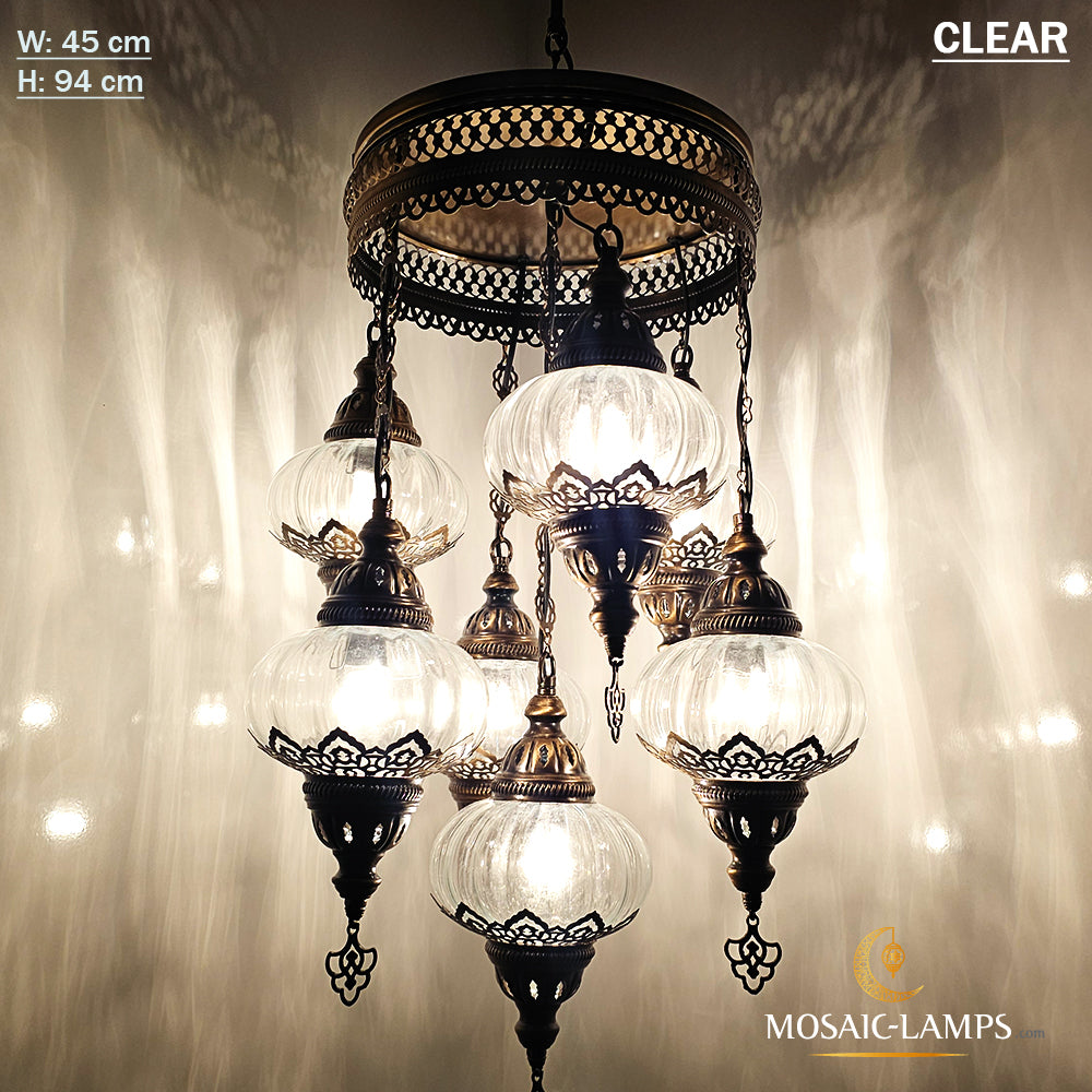 7 Clear Optical Ball Chandelier, Mixed Ottoman Globe Lamps, Handmade Moroccan Clear Lights, Bedroom, Cafe, Restaurant, Bar, Living Room.