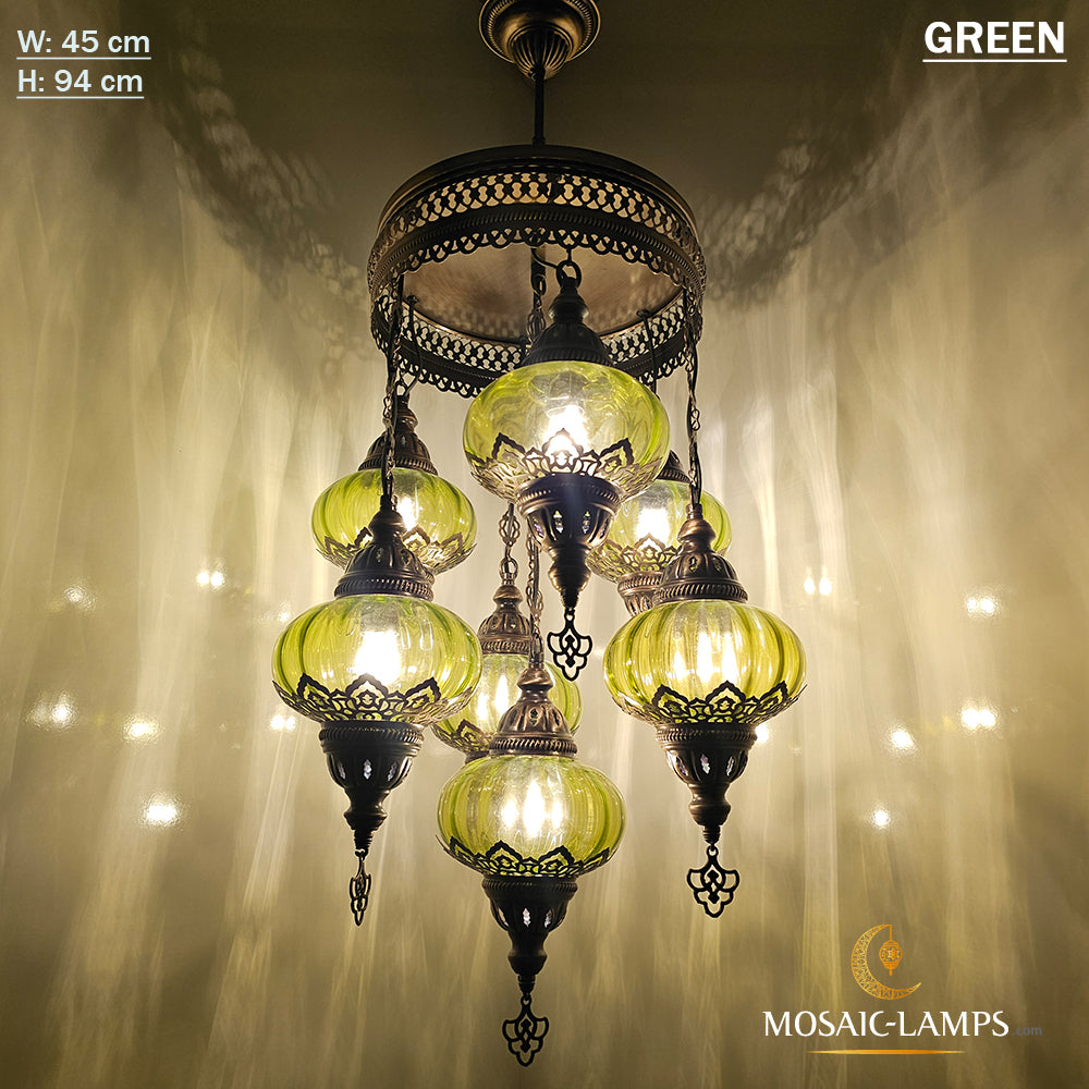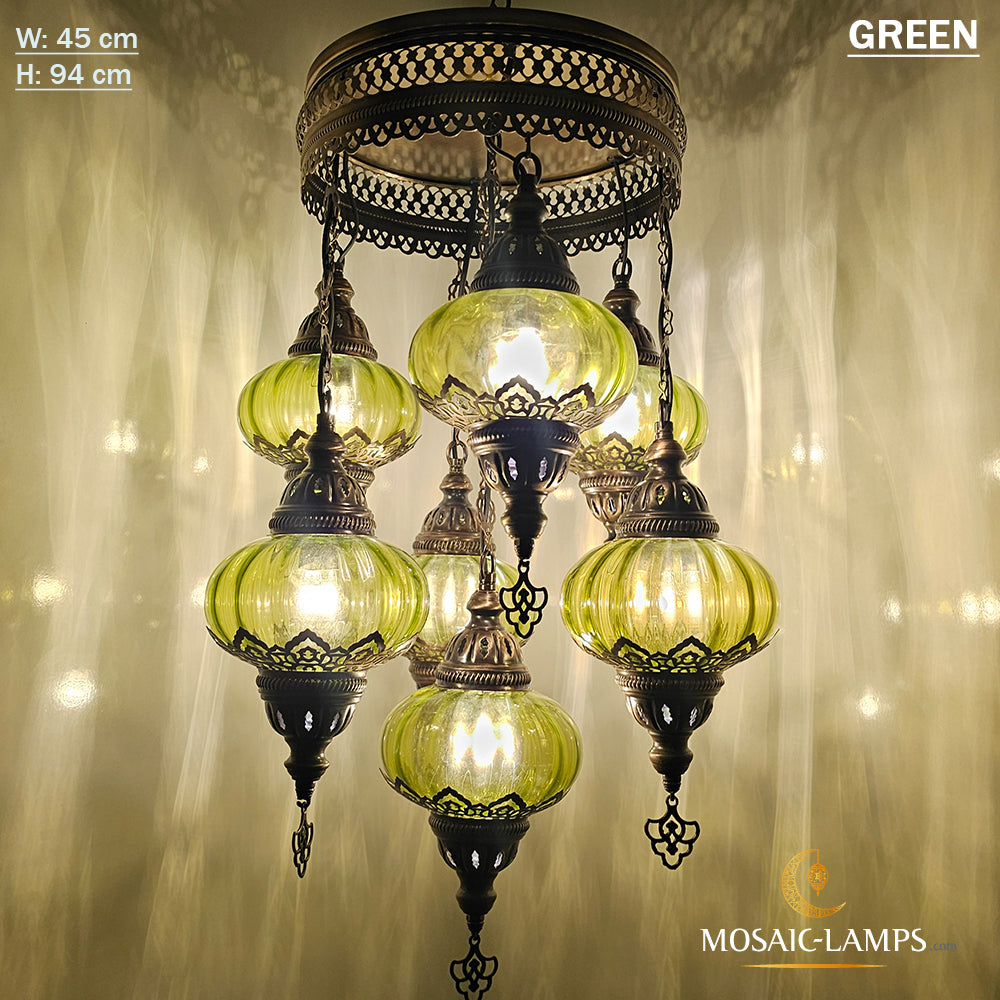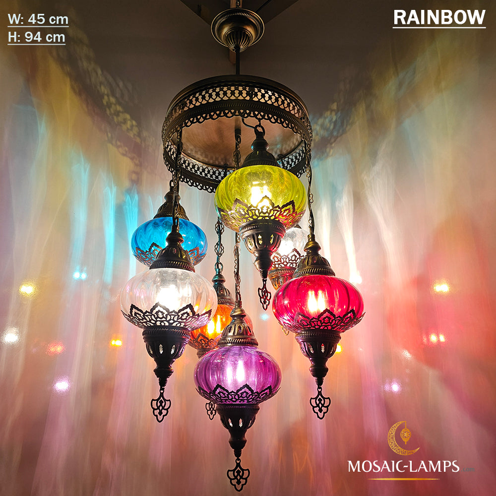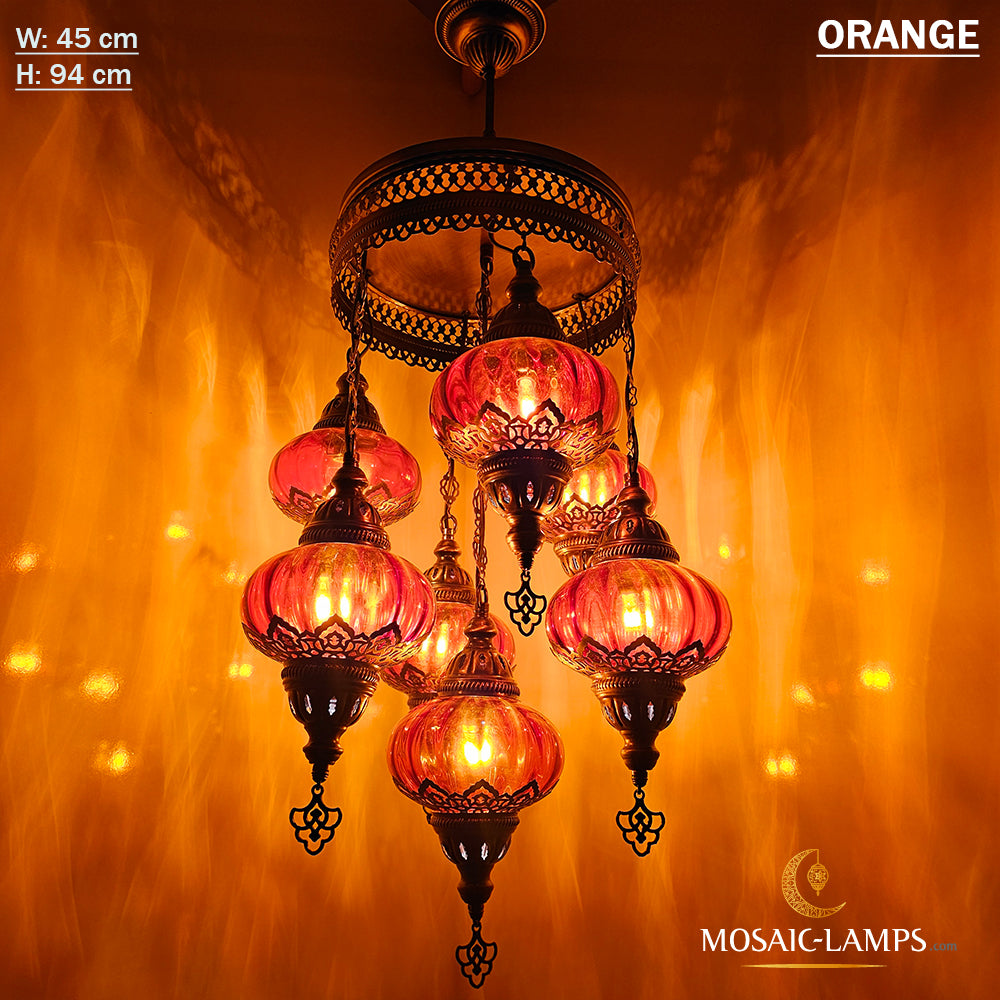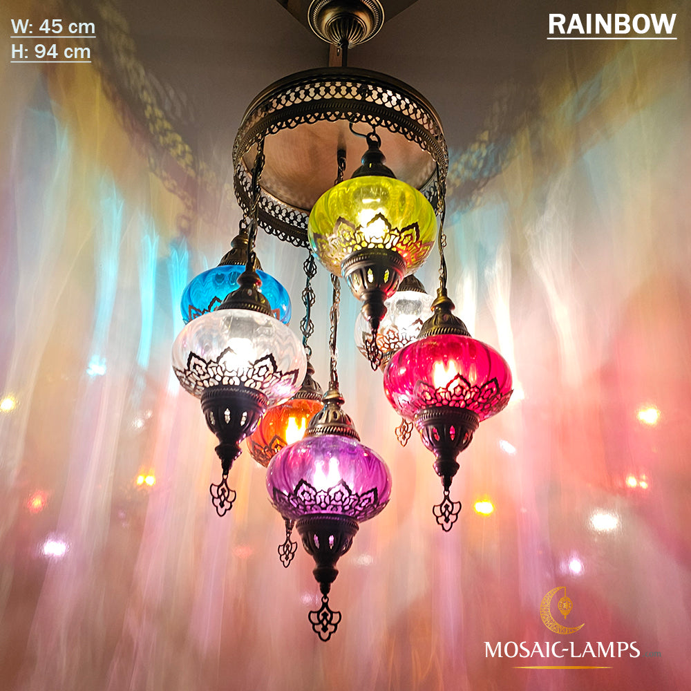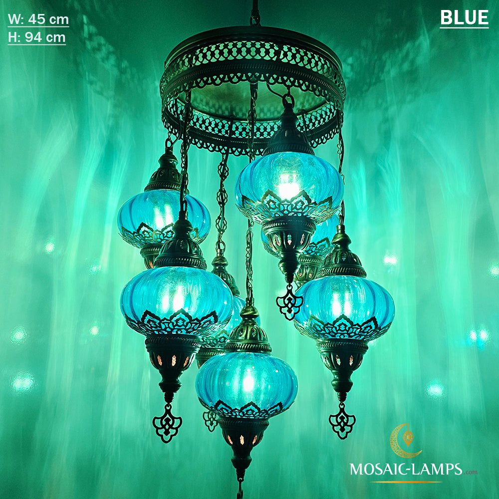 7 Clear Optical Ball Chandelier, Mixed Ottoman Globe Lamps, Handmade Moroccan Clear Lights, Bedroom, Cafe, Restaurant, Bar, Living Room.