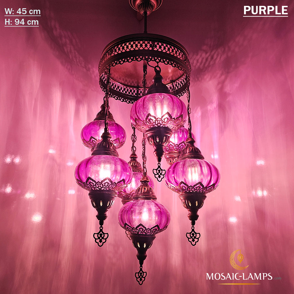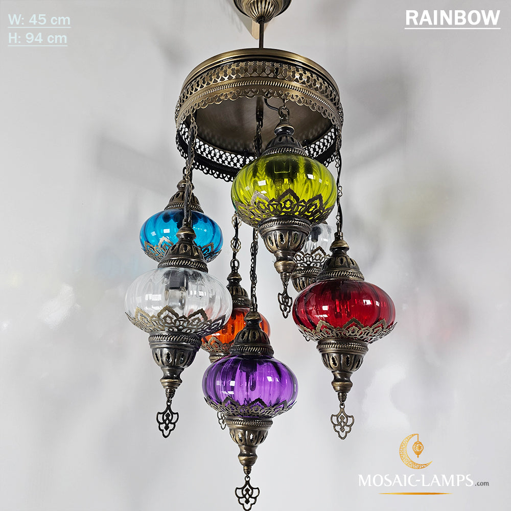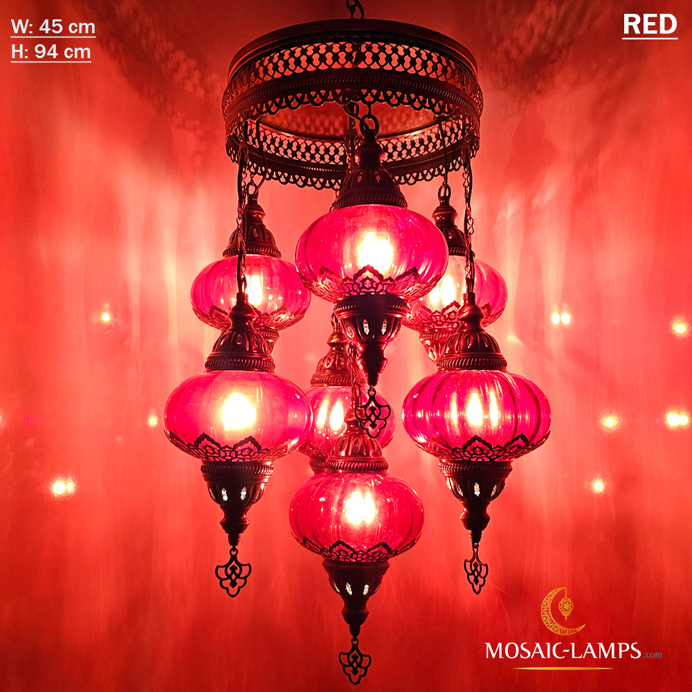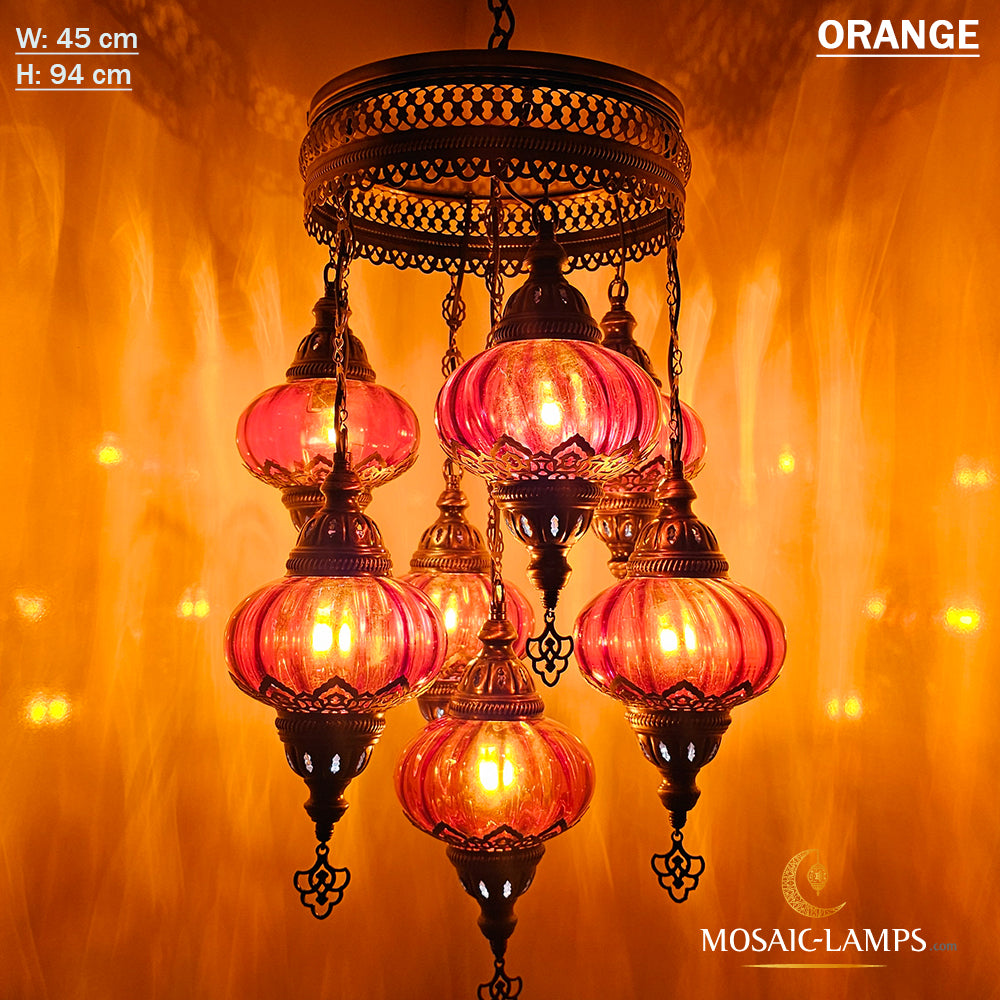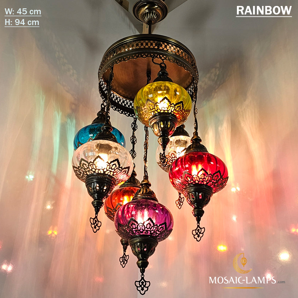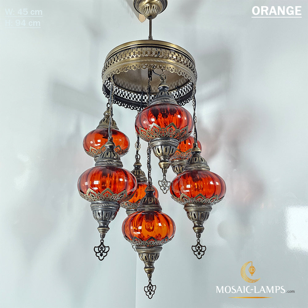 7 Clear Optical Ball Chandelier, Mixed Ottoman Globe Lamps, Handmade Moroccan Clear Lights, Bedroom, Cafe, Restaurant, Bar, Living Room.