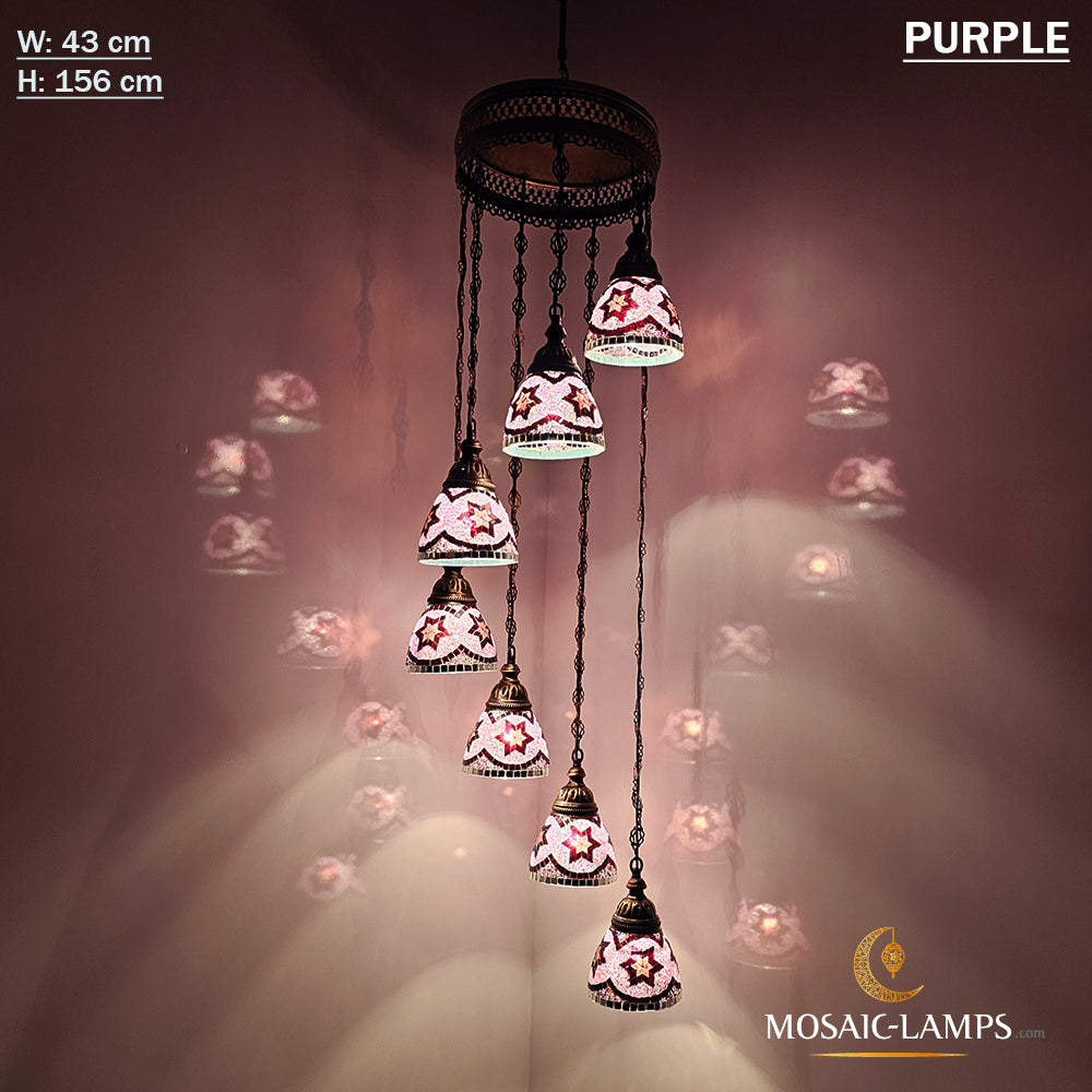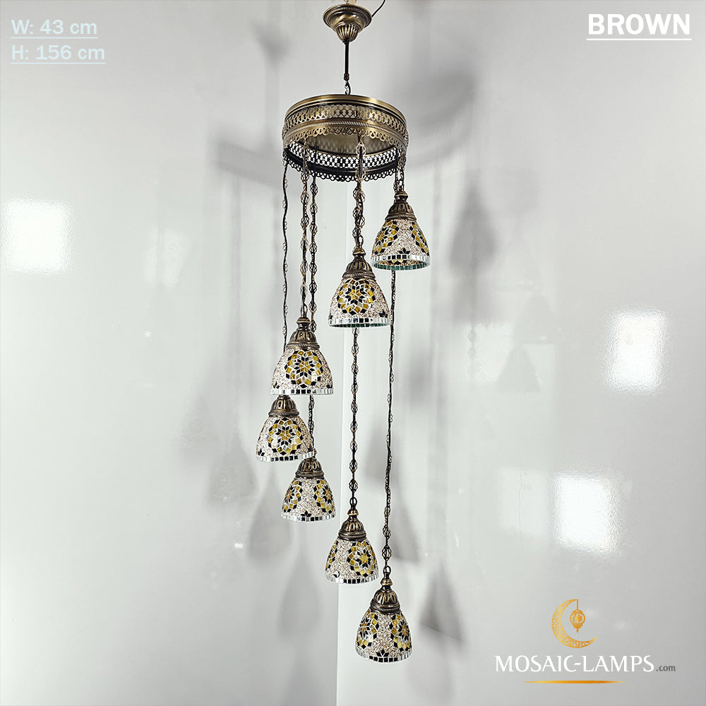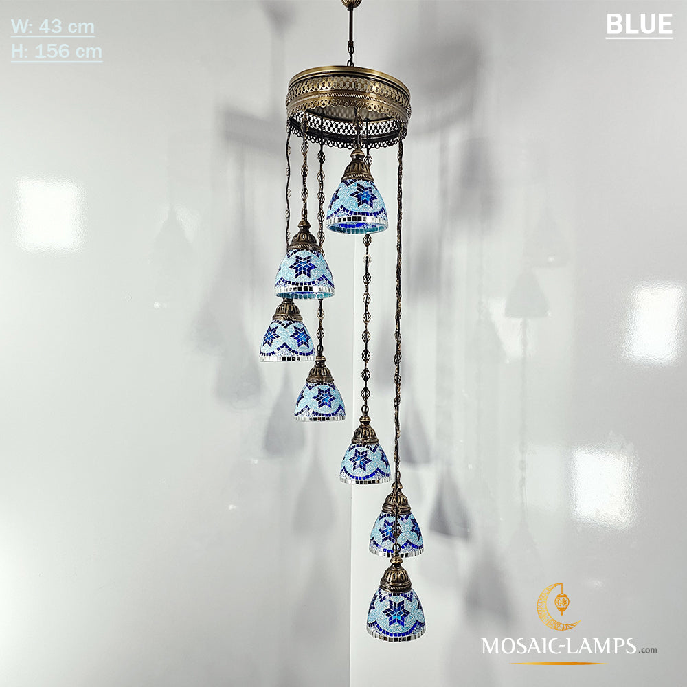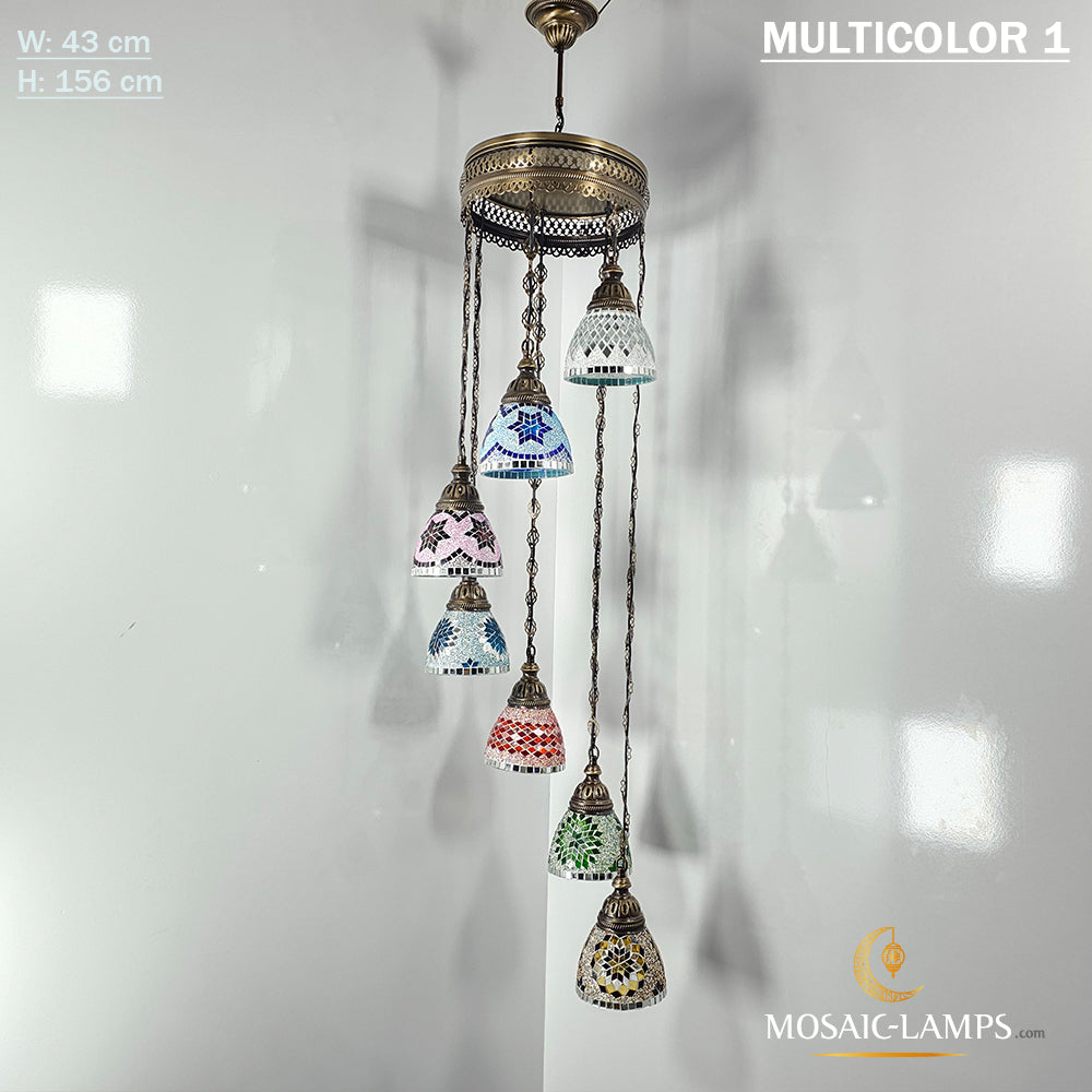 7 Funnel Glass Spiral Turkish Mosaic Chandelier, Moroccan Hanging Ceiling Lantern Lamp Pendant Light Fixture Lighting Chandelier, Restaurant.