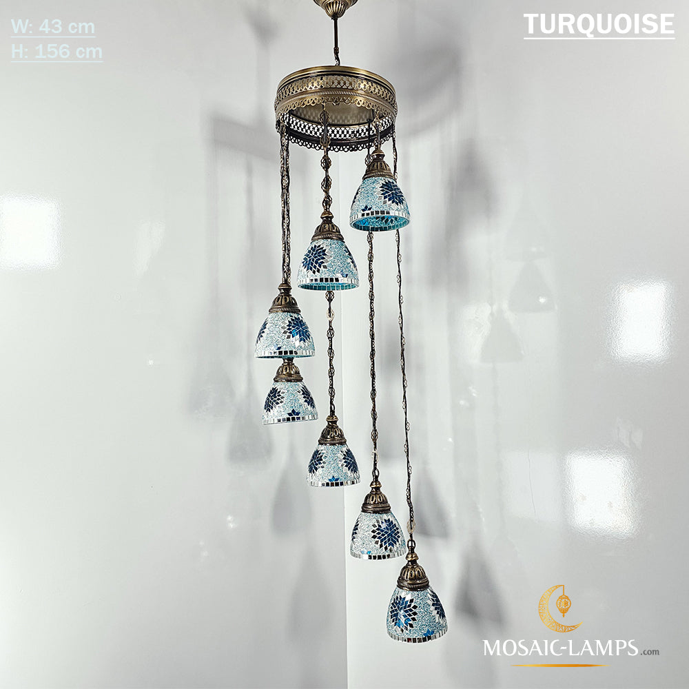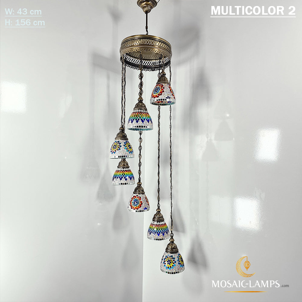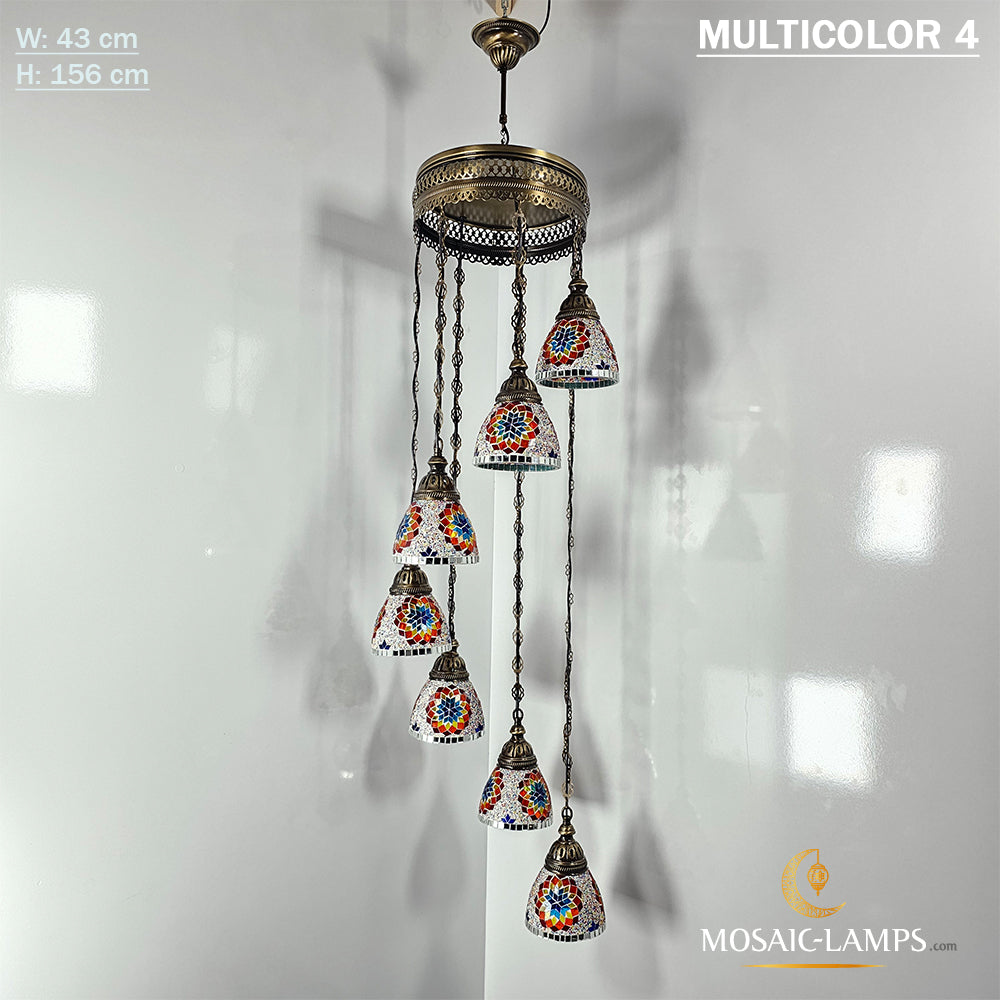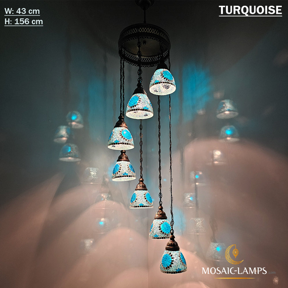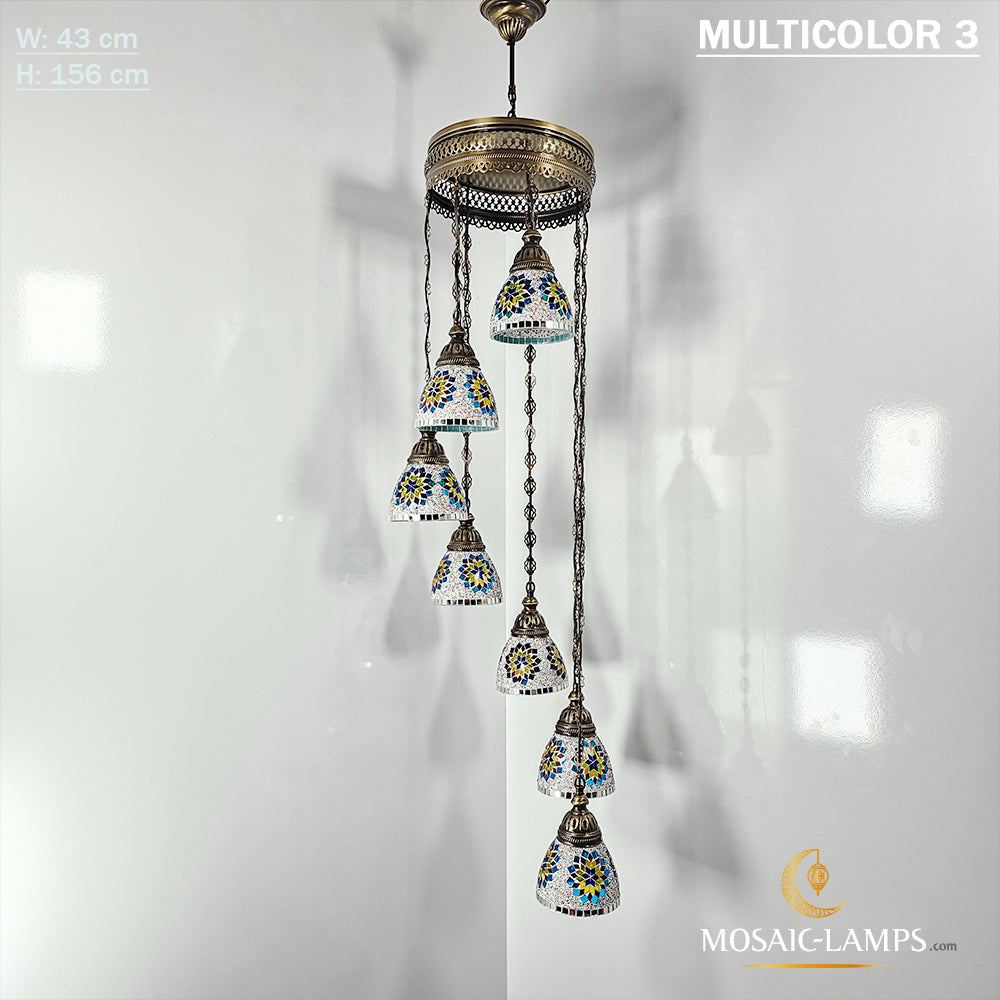 7 Funnel Glass Spiral Turkish Mosaic Chandelier, Moroccan Hanging Ceiling Lantern Lamp Pendant Light Fixture Lighting Chandelier, Restaurant
