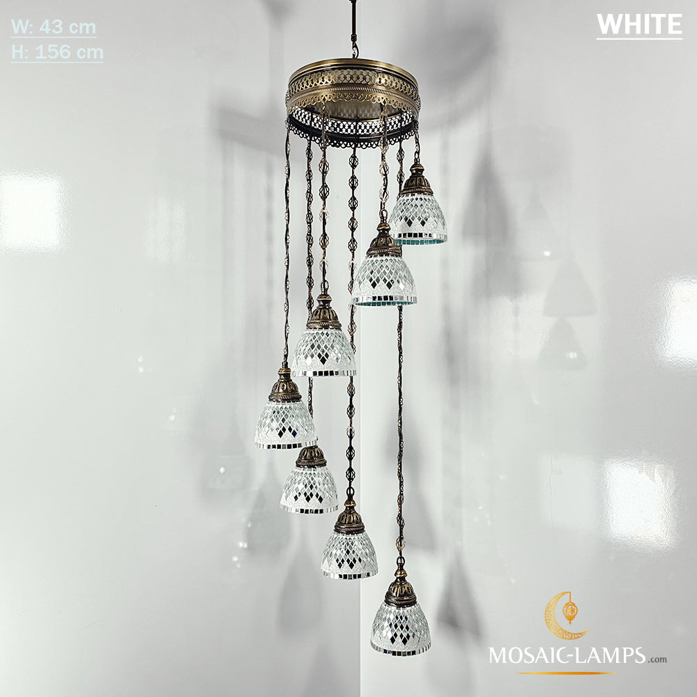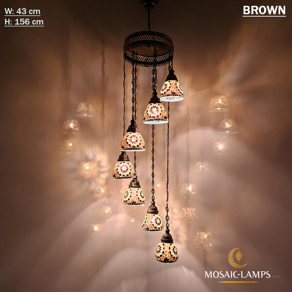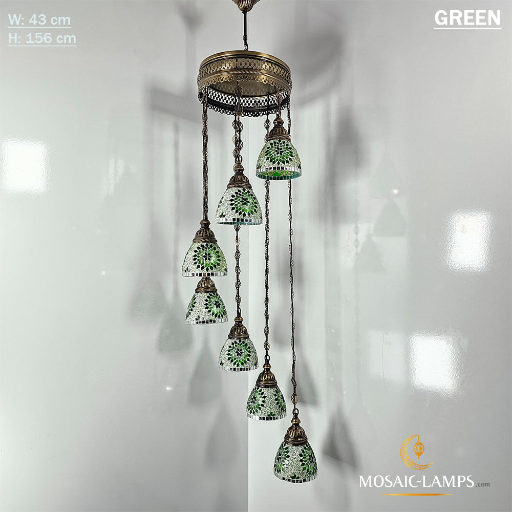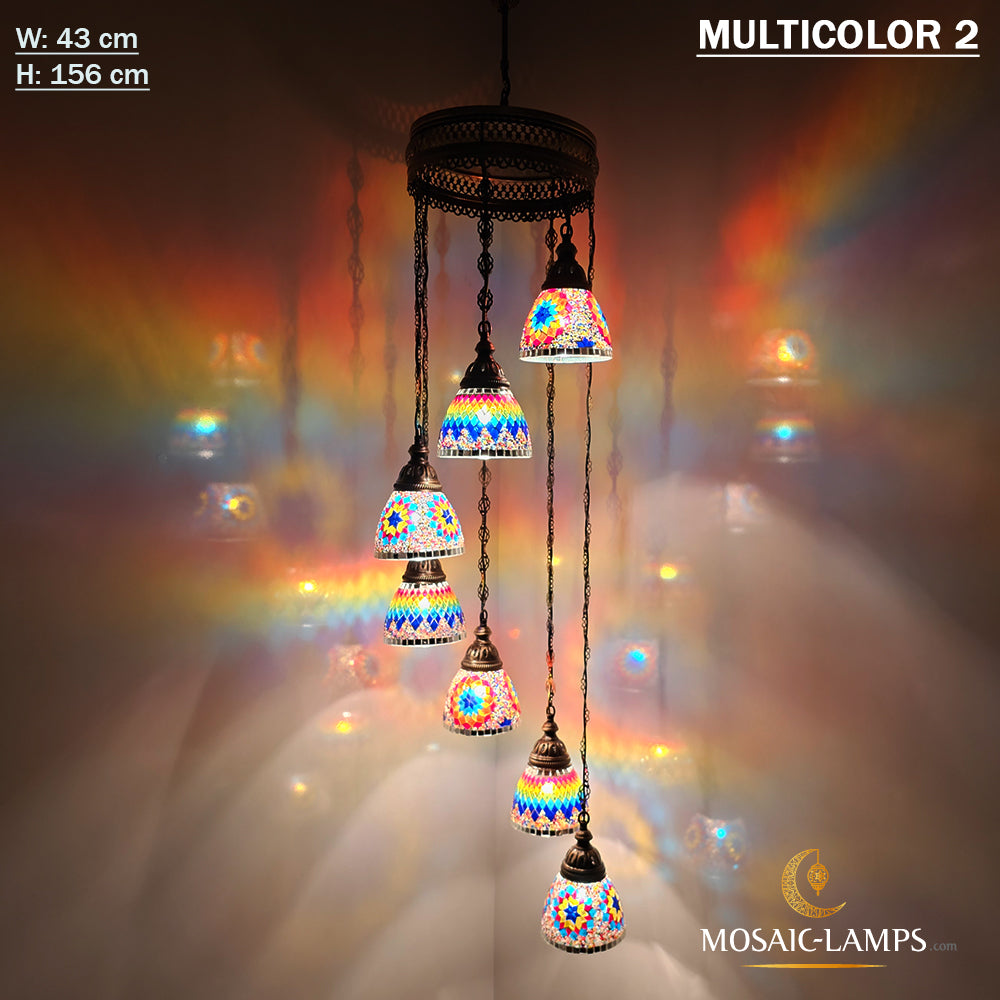 7 Funnel Glass Spiral Turkish Mosaic Chandelier, Moroccan Hanging Ceiling Lantern Lamp Pendant Light Fixture Lighting Chandelier, Restaurant