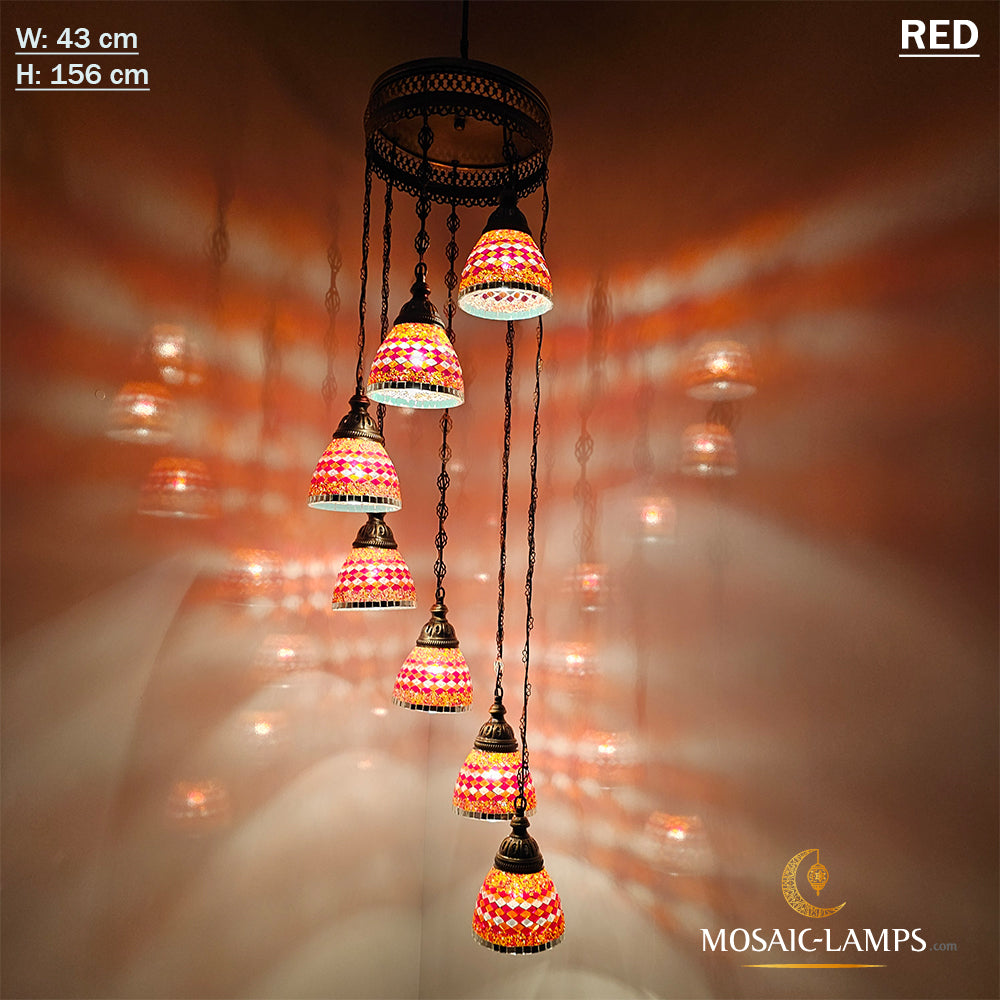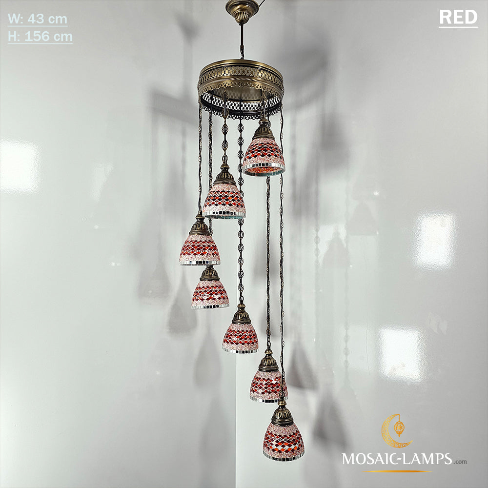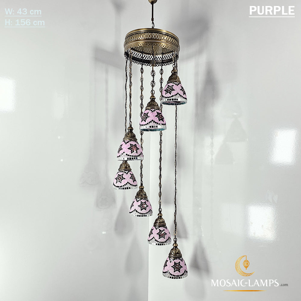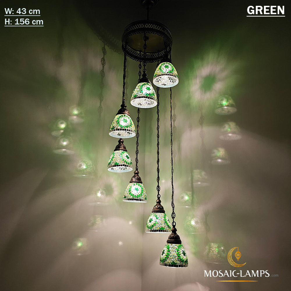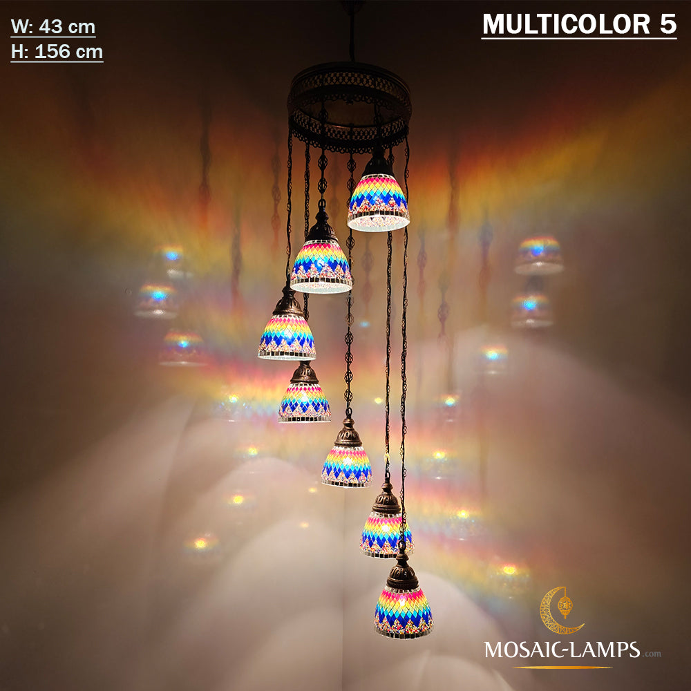 7 Funnel Glass Spiral Turkish Mosaic Chandelier, Moroccan Hanging Ceiling Lantern Lamp Pendant Light Fixture Lighting Chandelier, Restaurant
