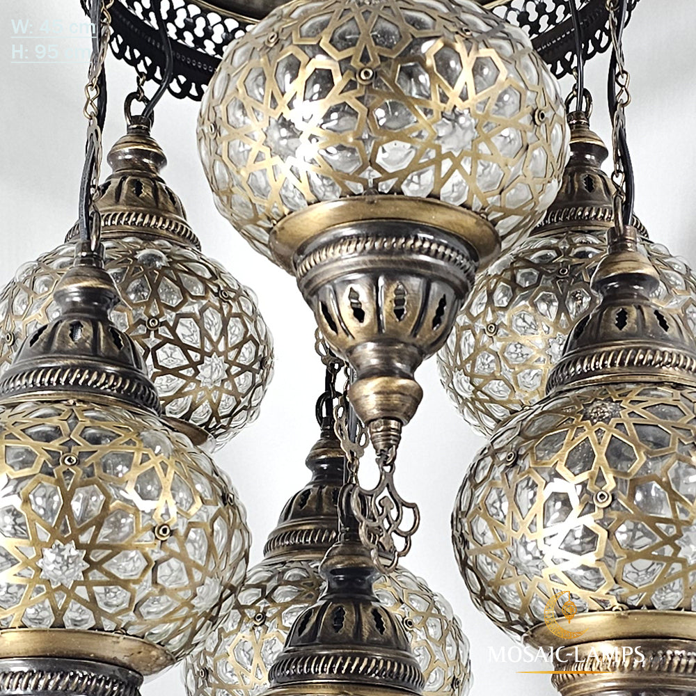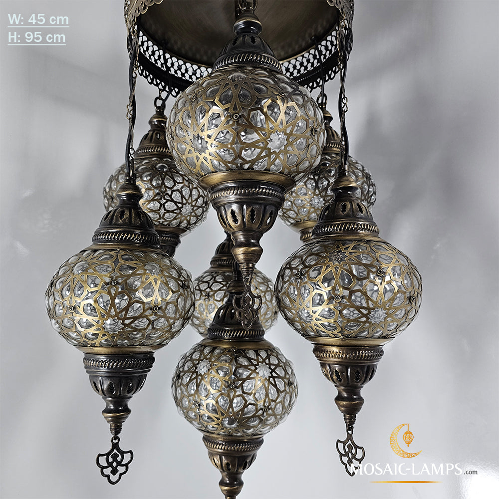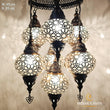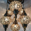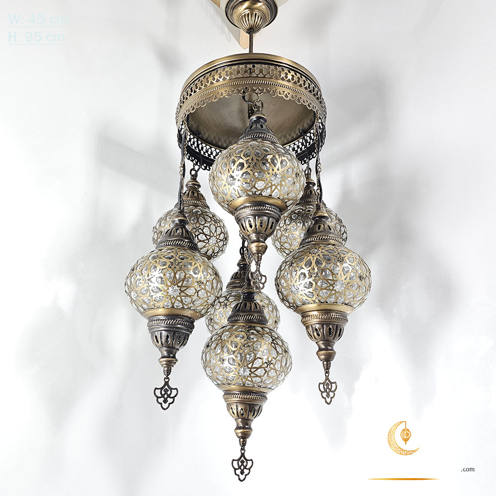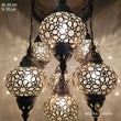 7 Globe Ottoman Mixed Chandeliers, Laser Metal Blown Globe Lamp, Moroccan Hanging Lamps, Turkish Chandelier, Restaurant, Living Room Lights
