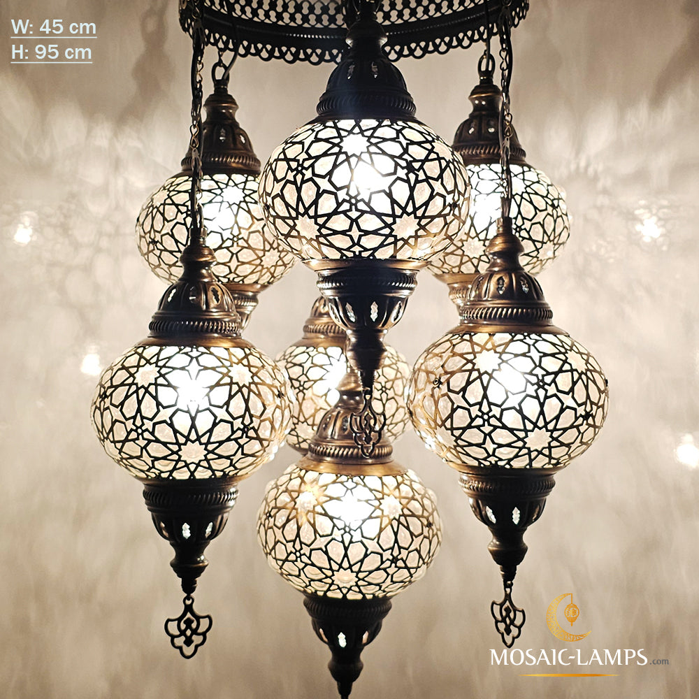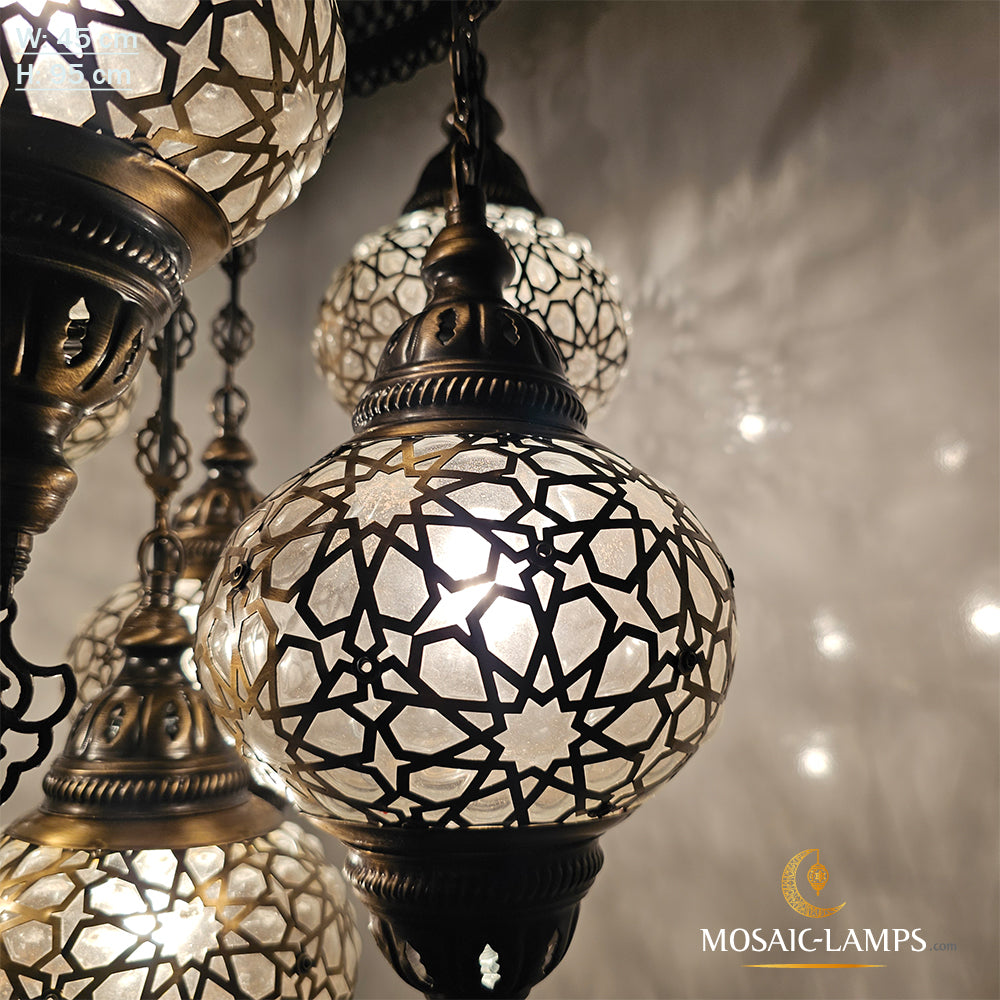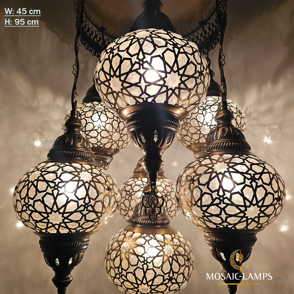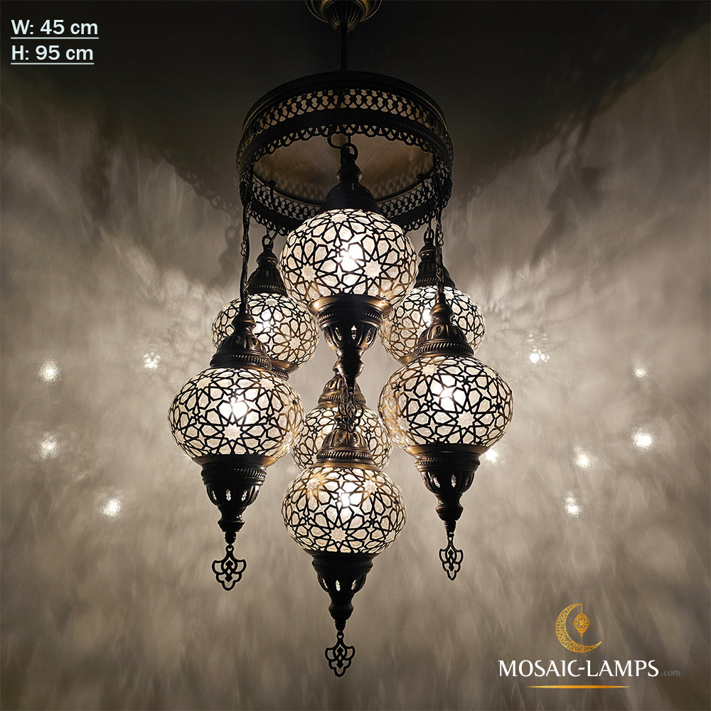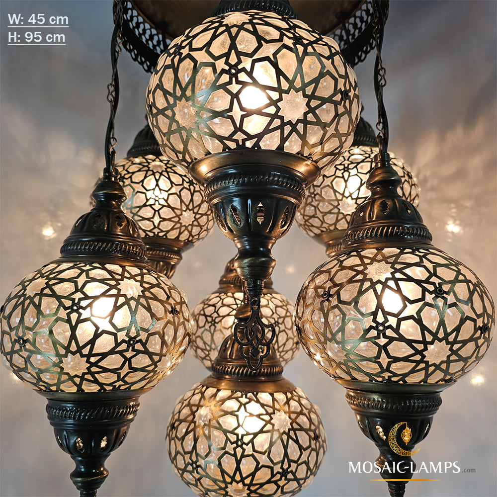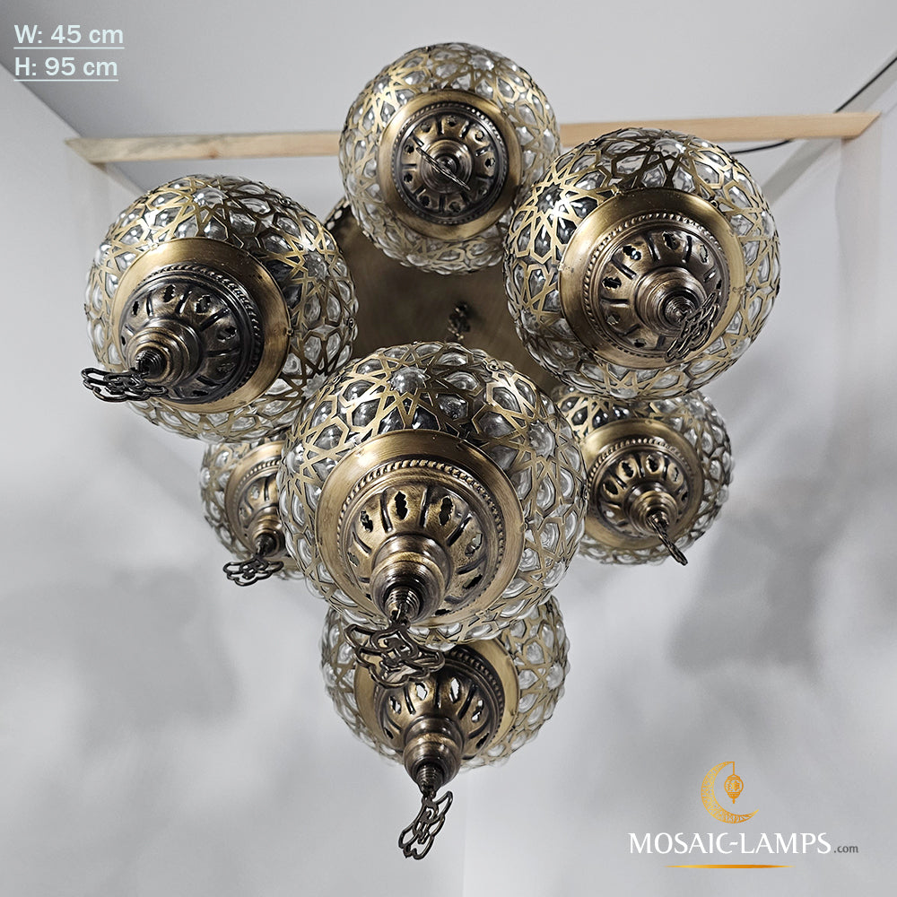 Set Of 7 Ball Ottoman Chandeliers, Laser Blown Globe Lamp, Moroccan Chandelier, Turkish Chandelier, Restaurant, Living Room Lighting